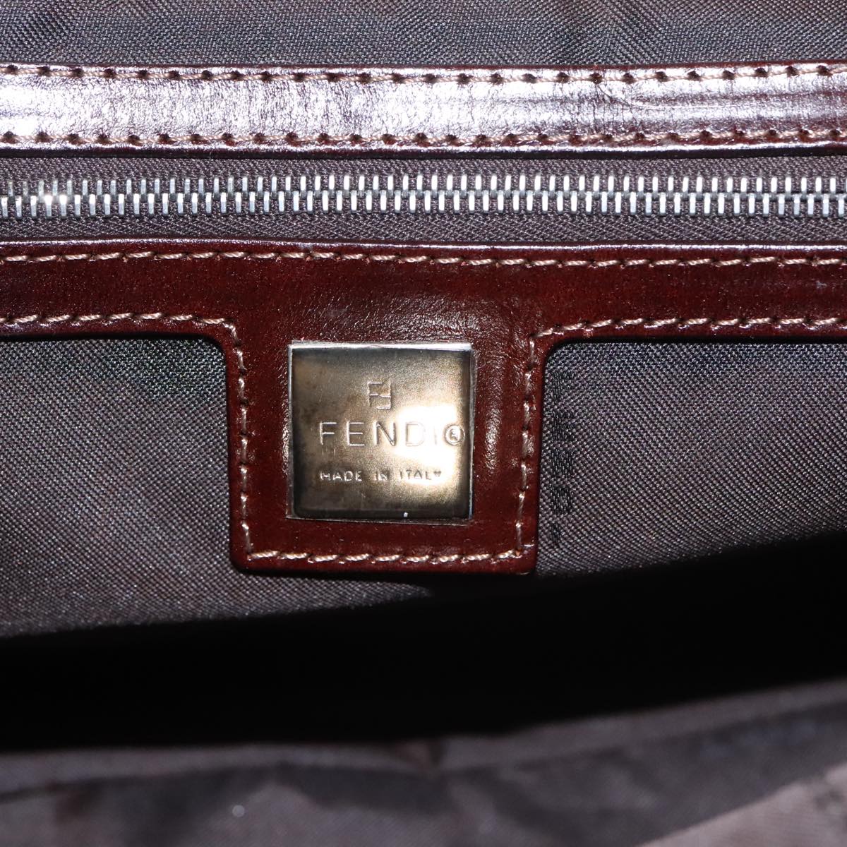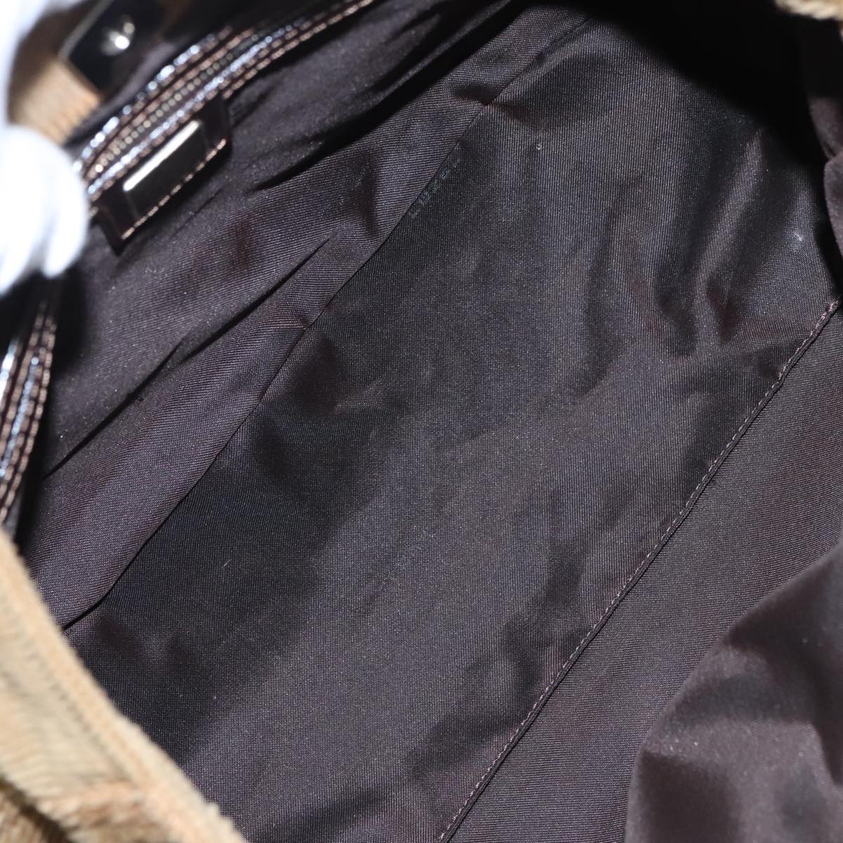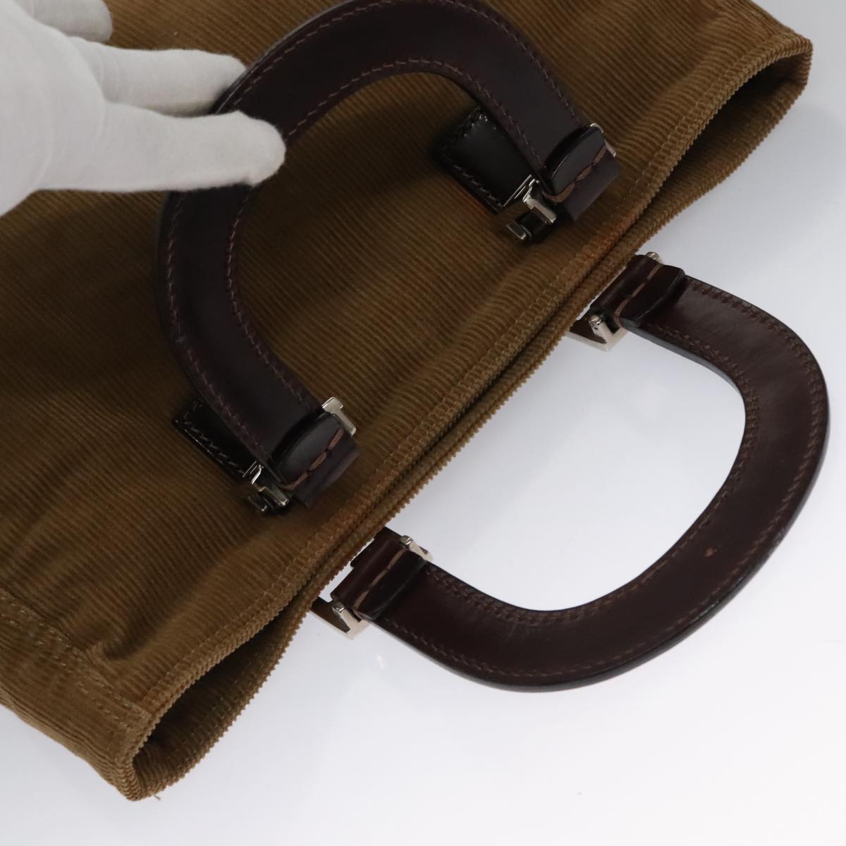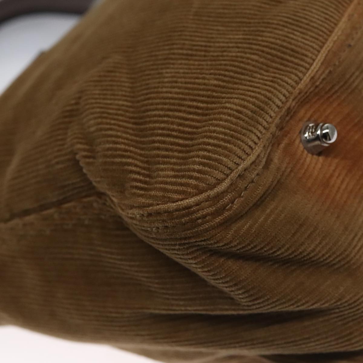 FENDI Hand Bag Corduroy Brown Silver Auth 102866