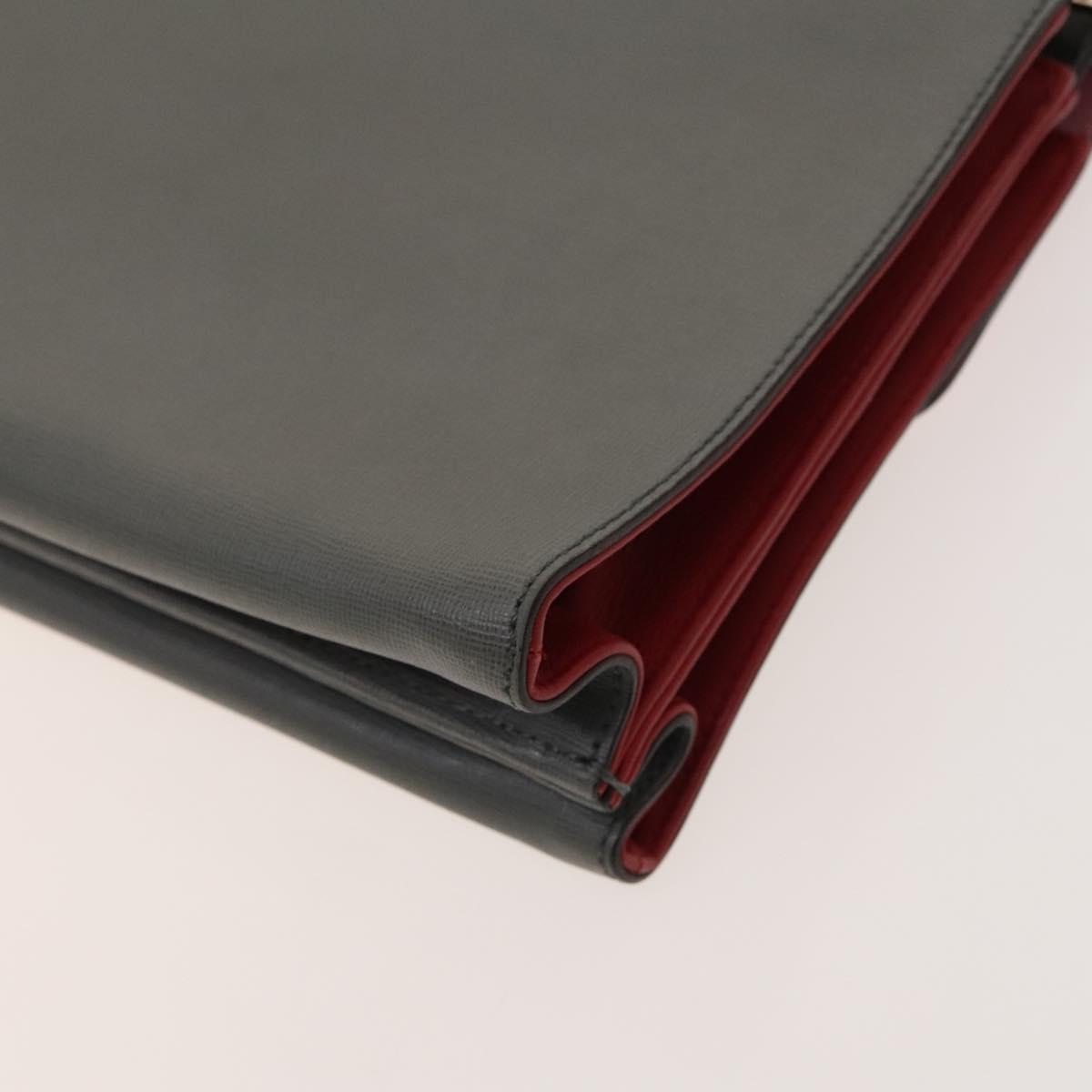 FENDI Hand Bag Leather 2way Gray Silver Auth bs24671