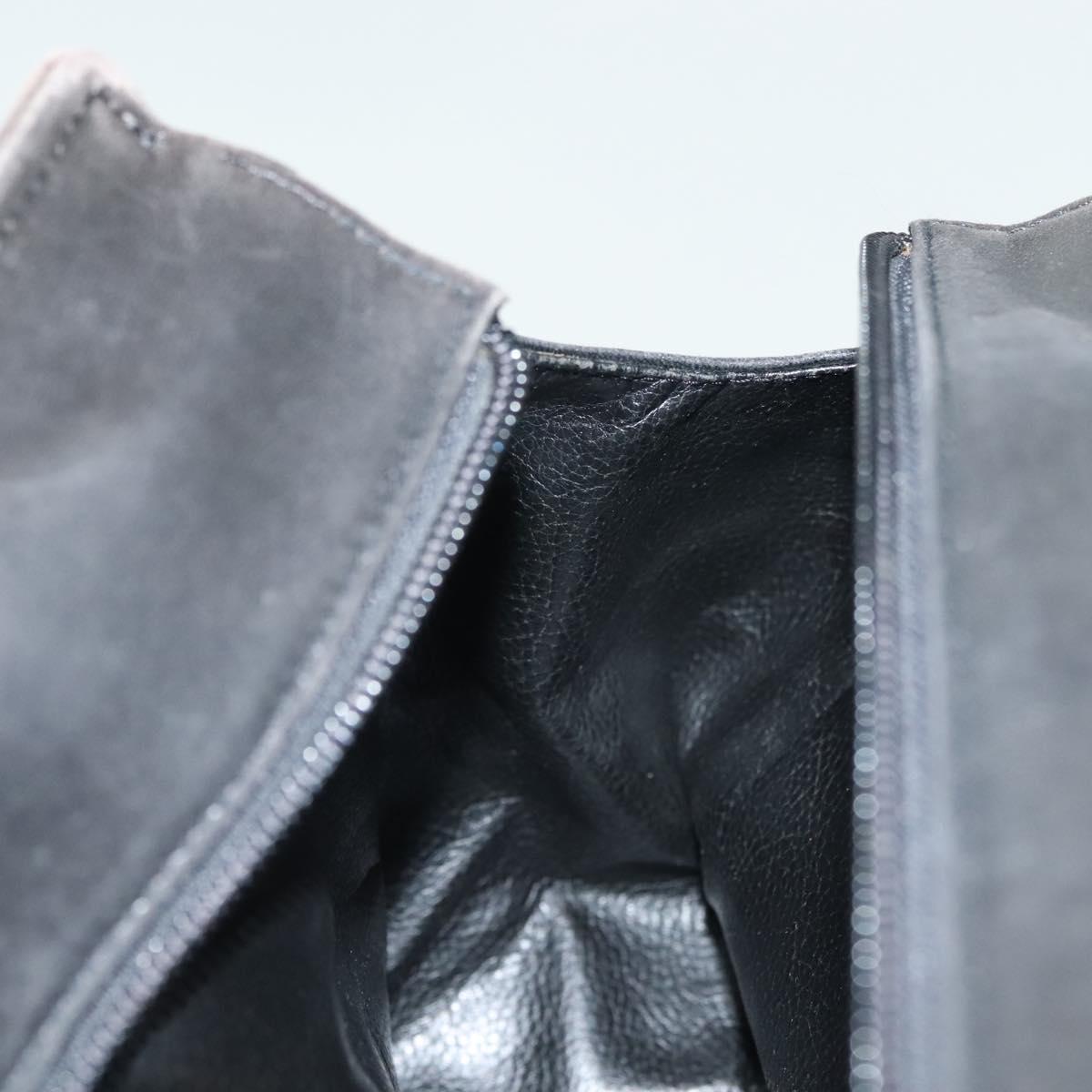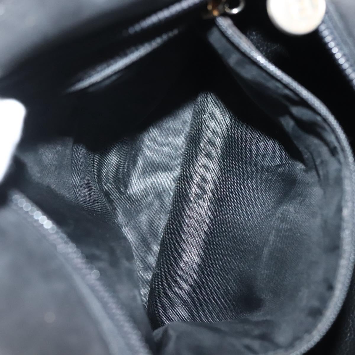 FENDI Hand Bag Leather Black Gold Auth 137552