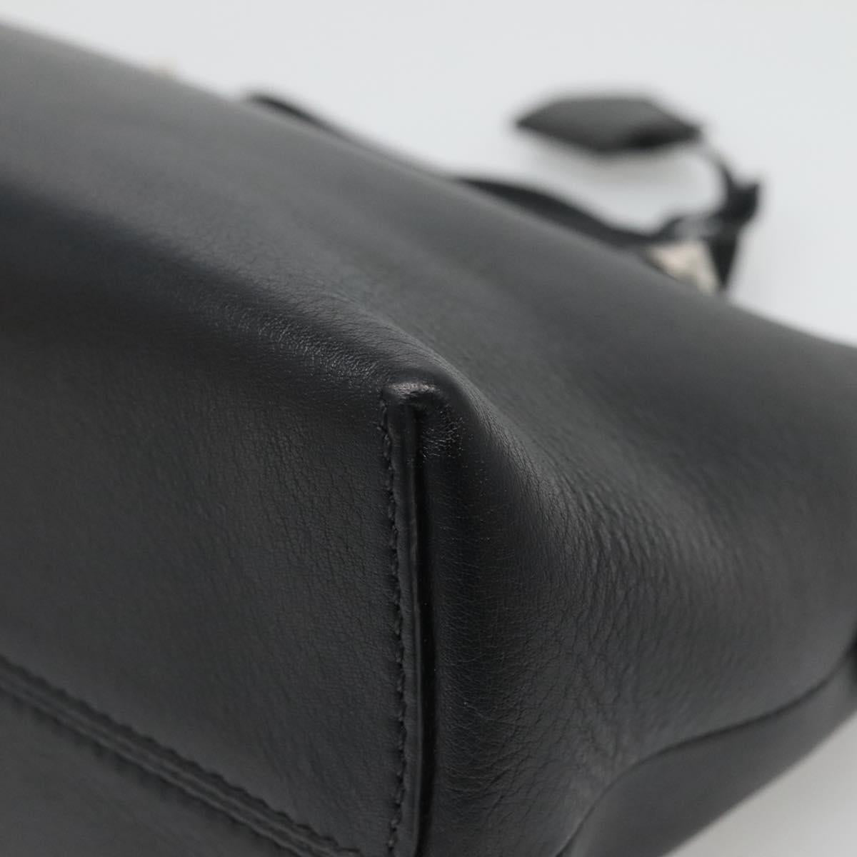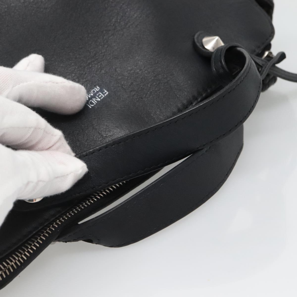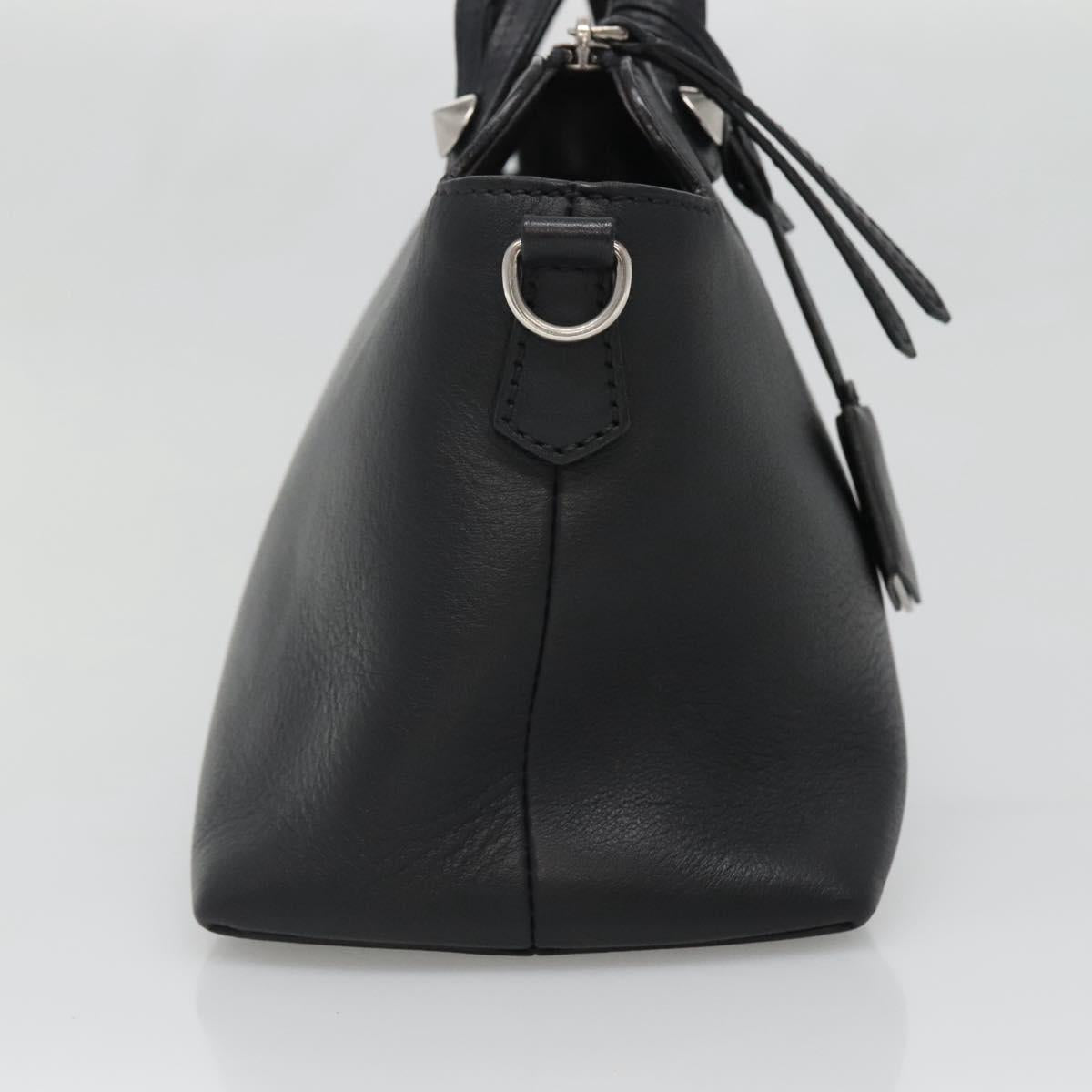 FENDI Hand Bag Leather Black Silver Auth bs28905