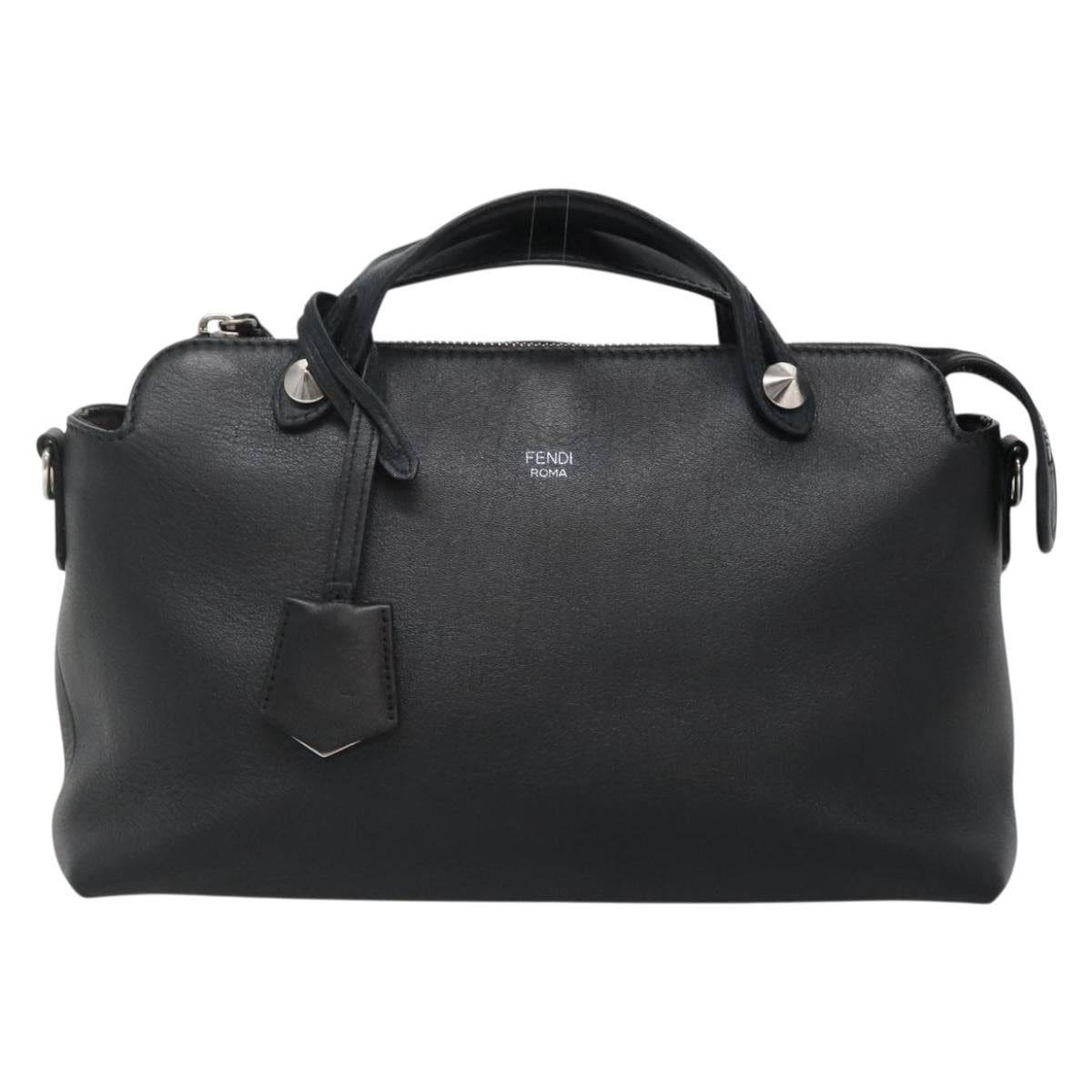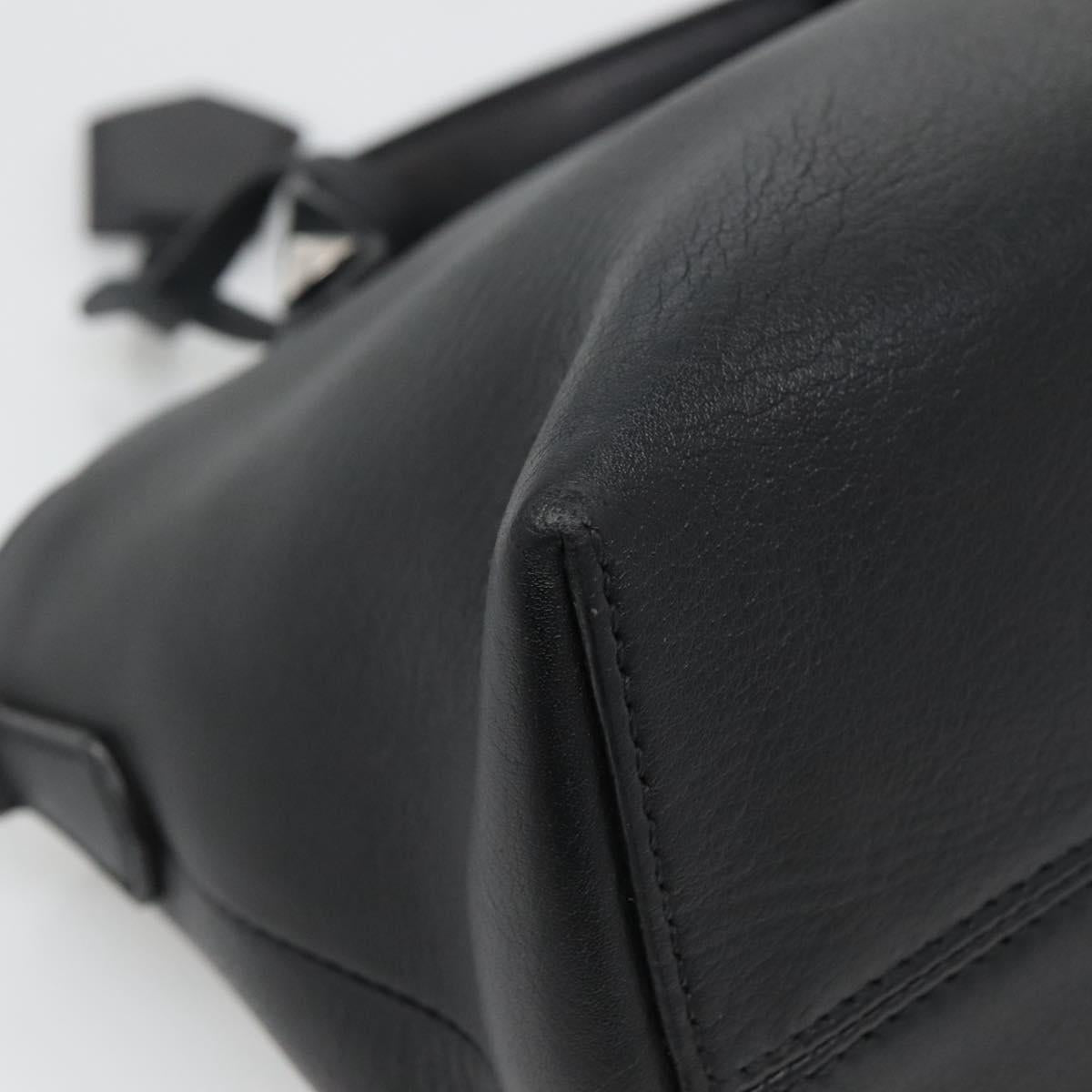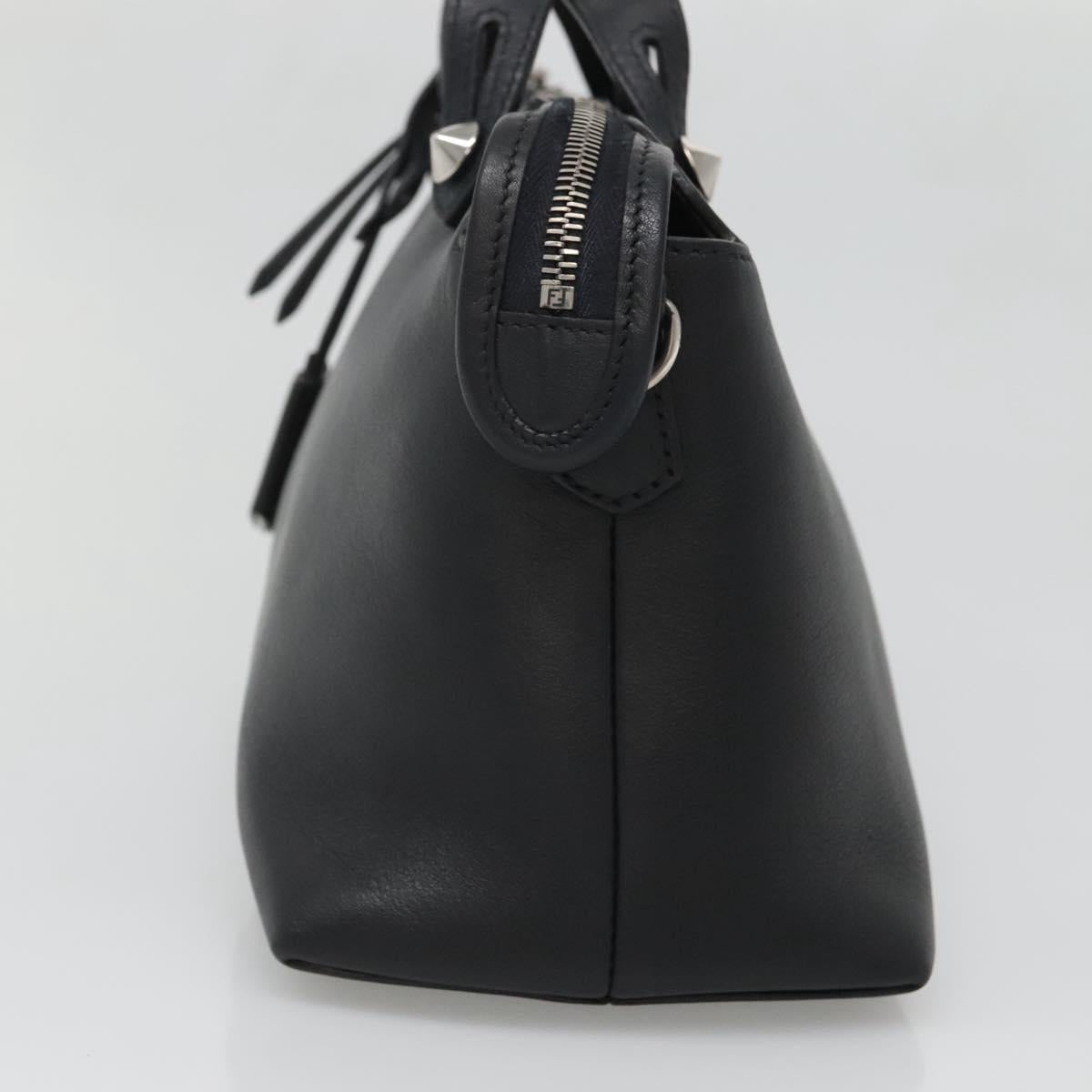 FENDI Hand Bag Leather Black Silver Auth bs28905