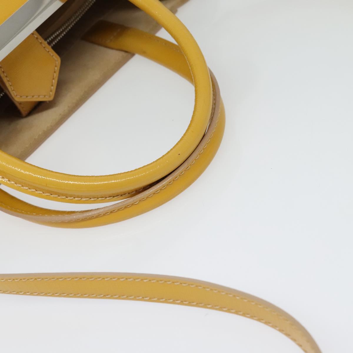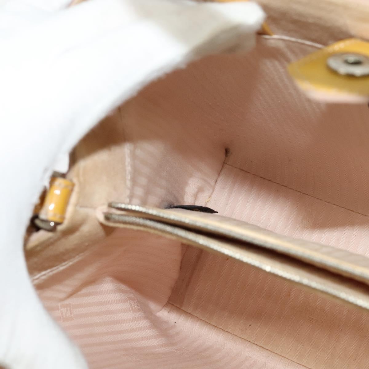 FENDI Hand Bag Patent leather 2way Silver Yellow Auth PP894