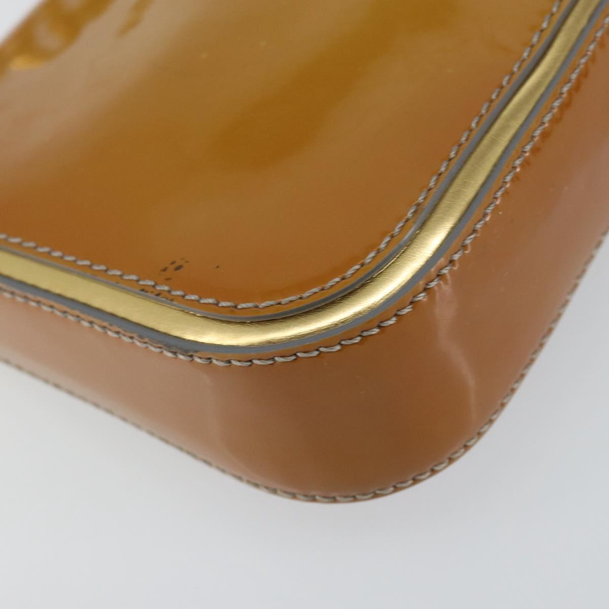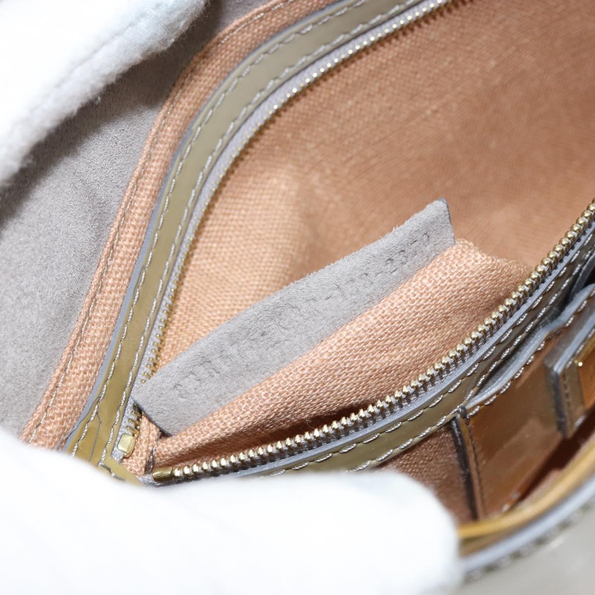 FENDI Mamma Baguette Chain Shoulder Bag Patent leather Gray Gold Auth 144385