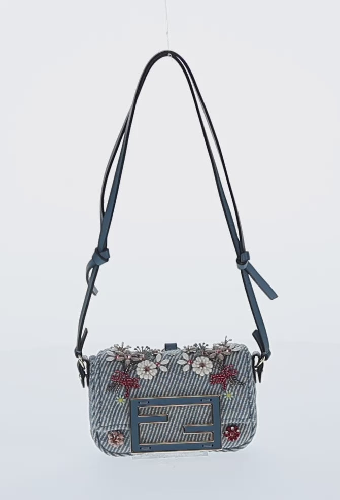 FENDI Mamma Baguette Hand Bag Denim Blue Gold Auth 137152M