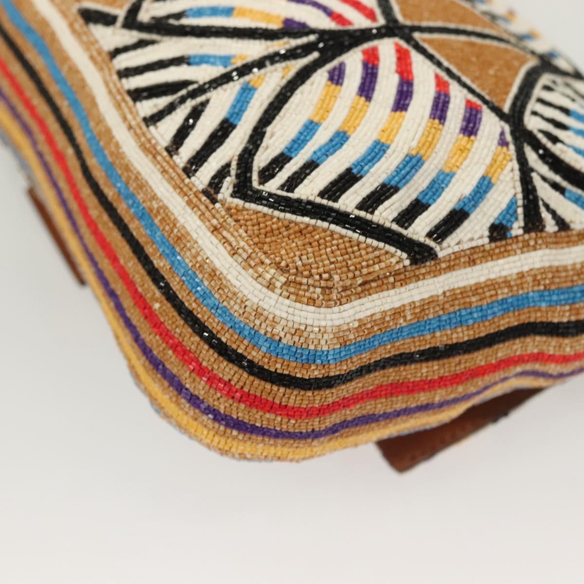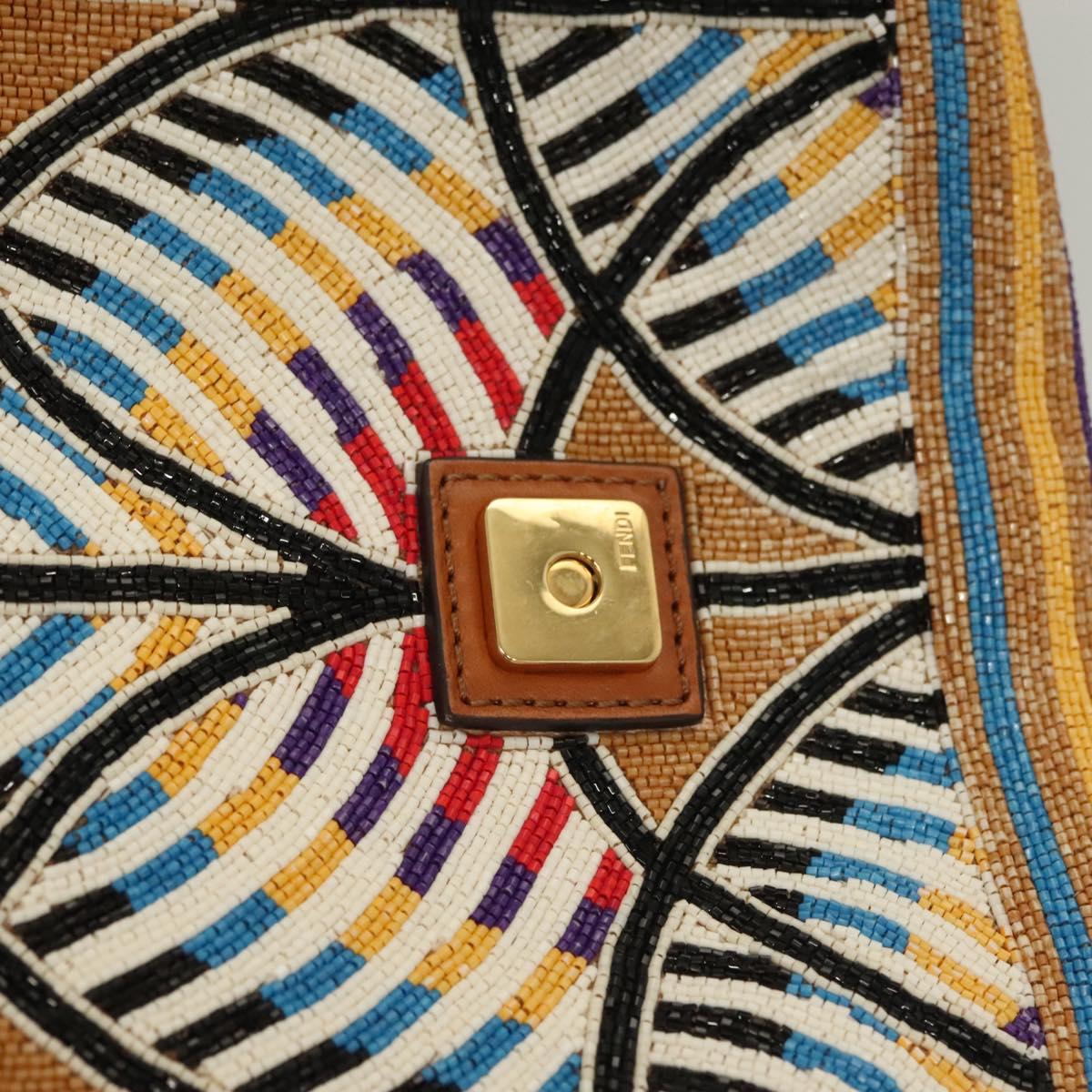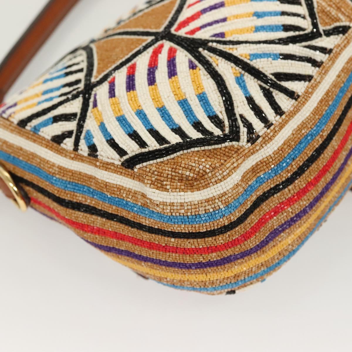 FENDI Mamma Baguette Shoulder Bag beads Beige Gold Auth 119241SV