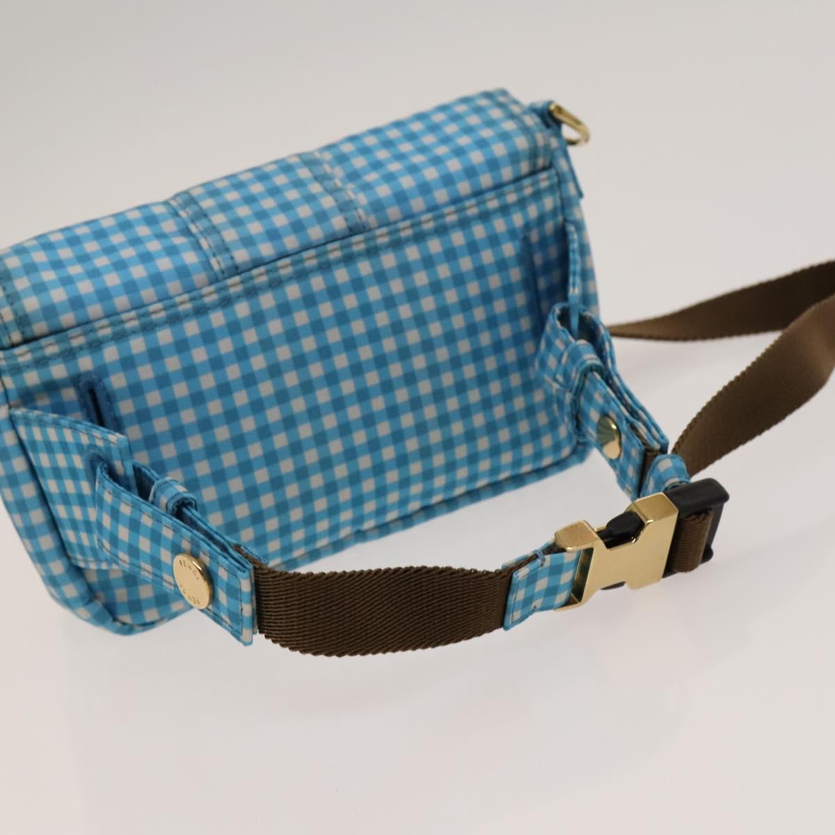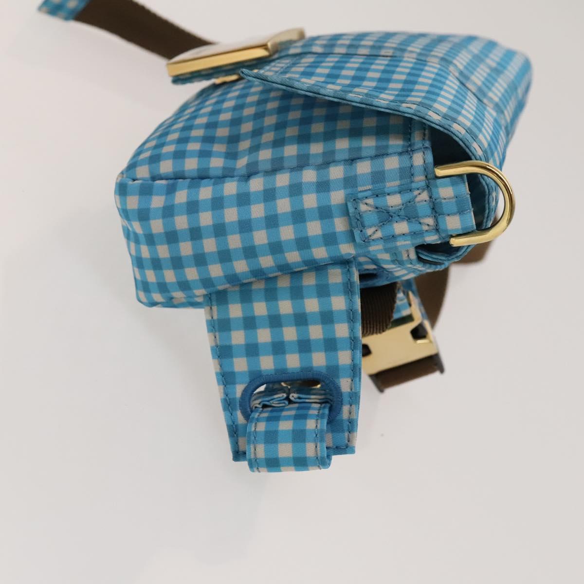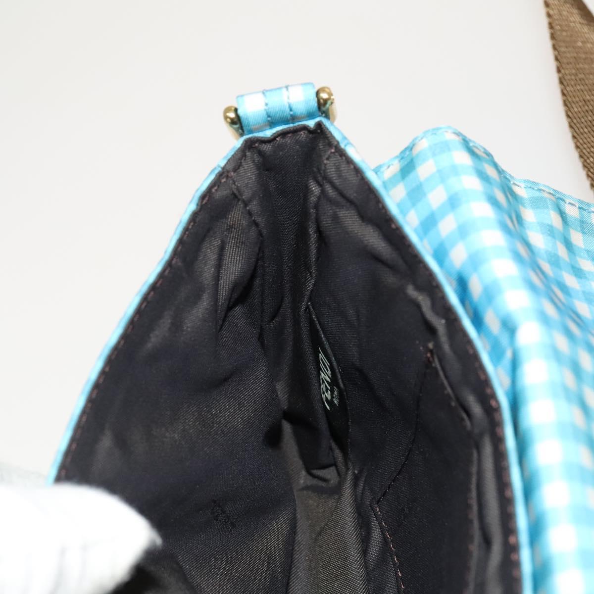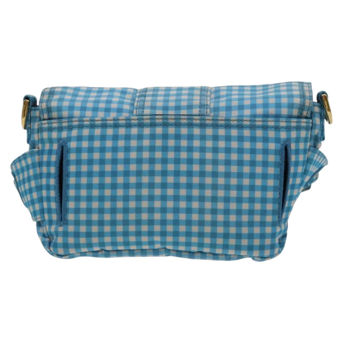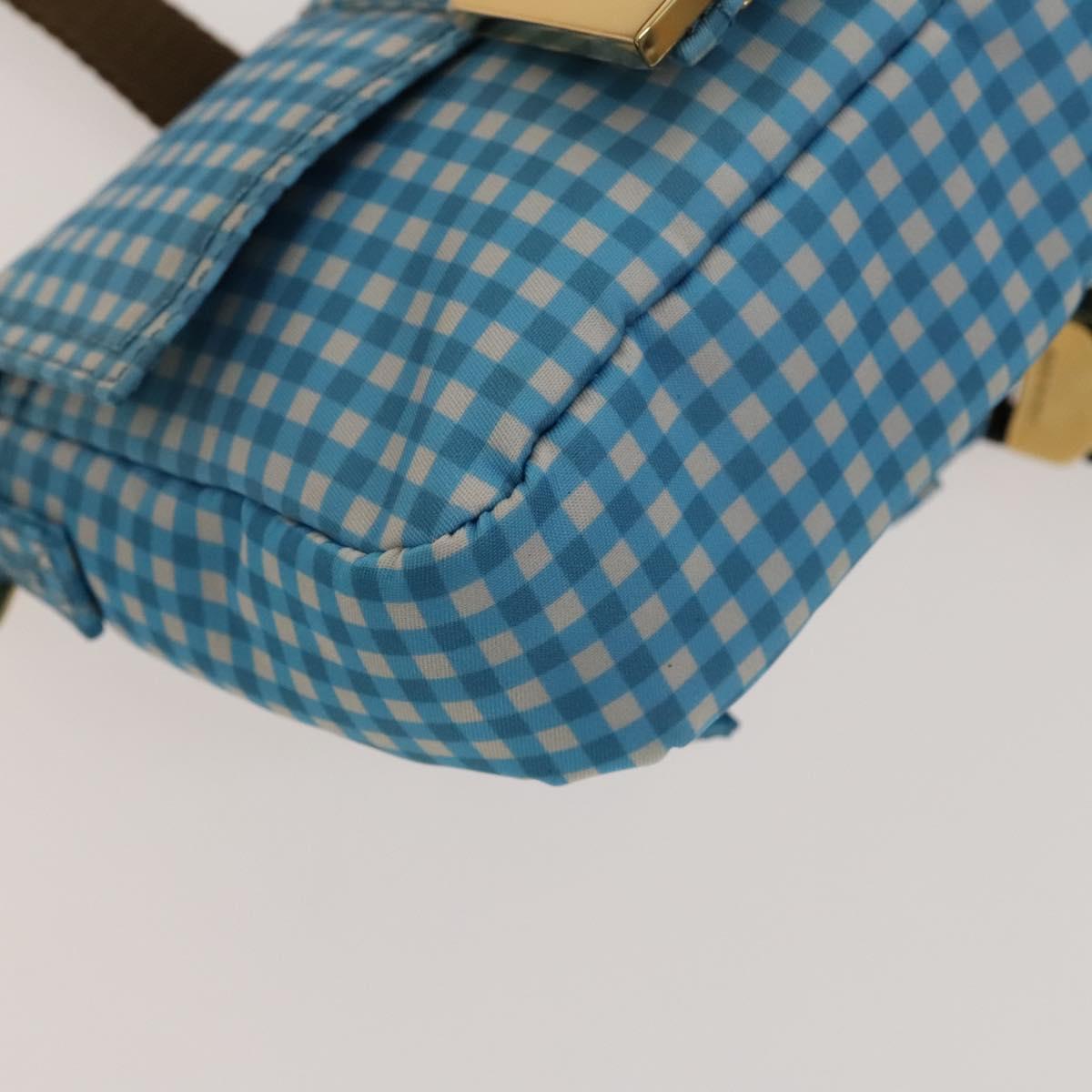 FENDI Mamma Baguette Shoulder Bag Nylon 2way Light Blue Gold Auth 120903