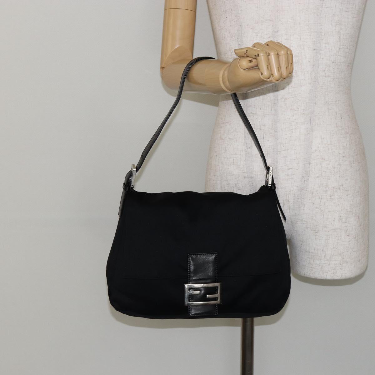 FENDI Mamma Baguette Shoulder Bag Nylon Black Silver Auth ep10970