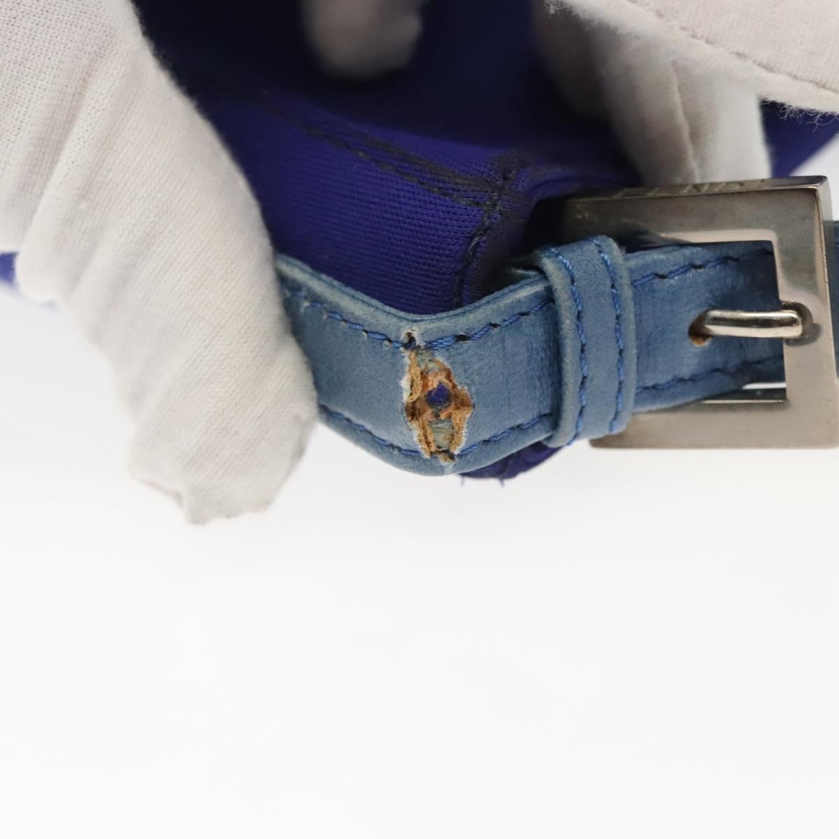 FENDI Mamma Baguette Shoulder Bag Nylon Blue Silver Auth 137452