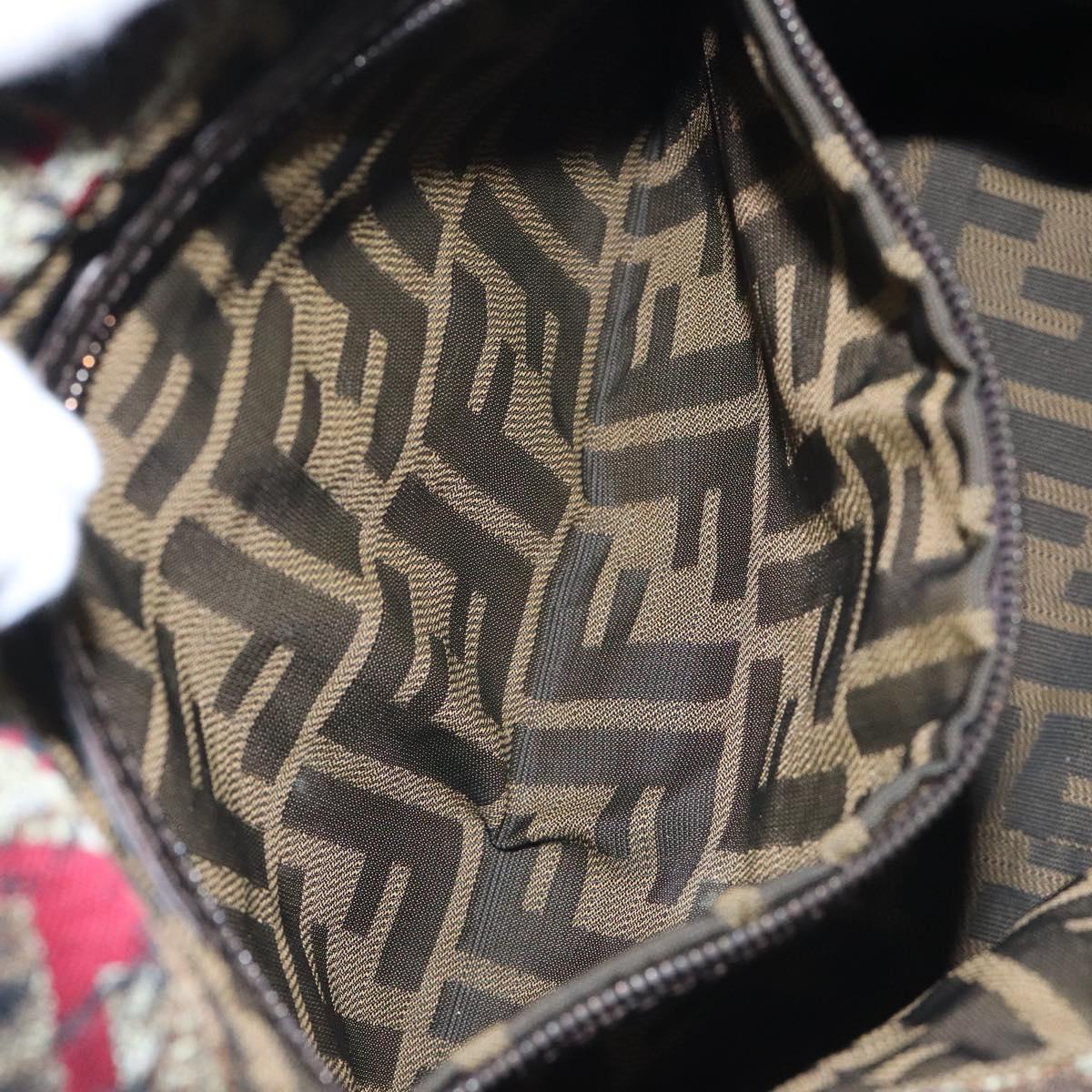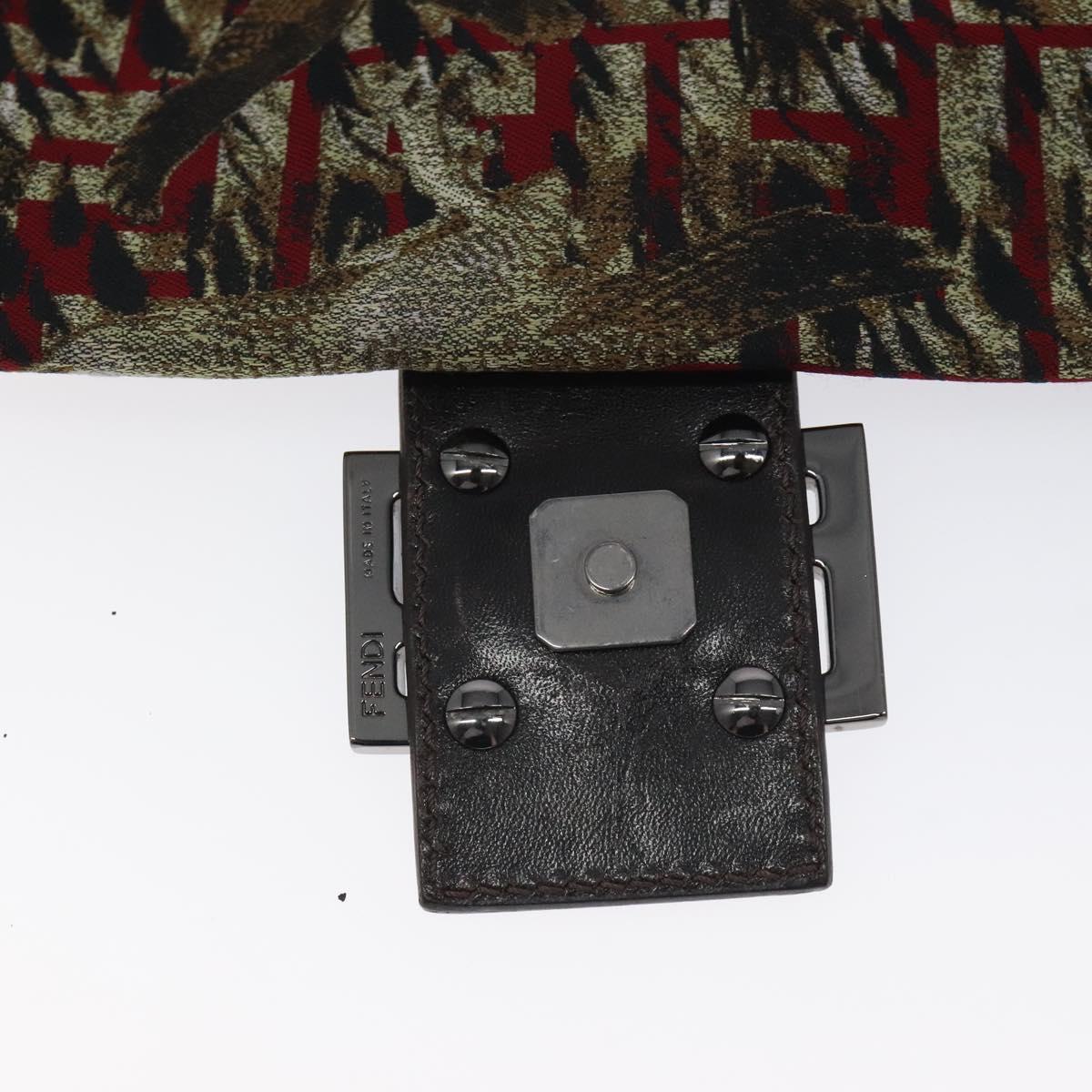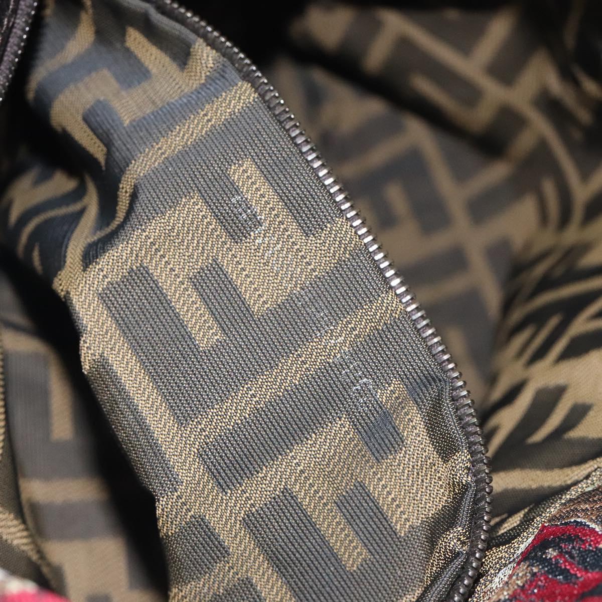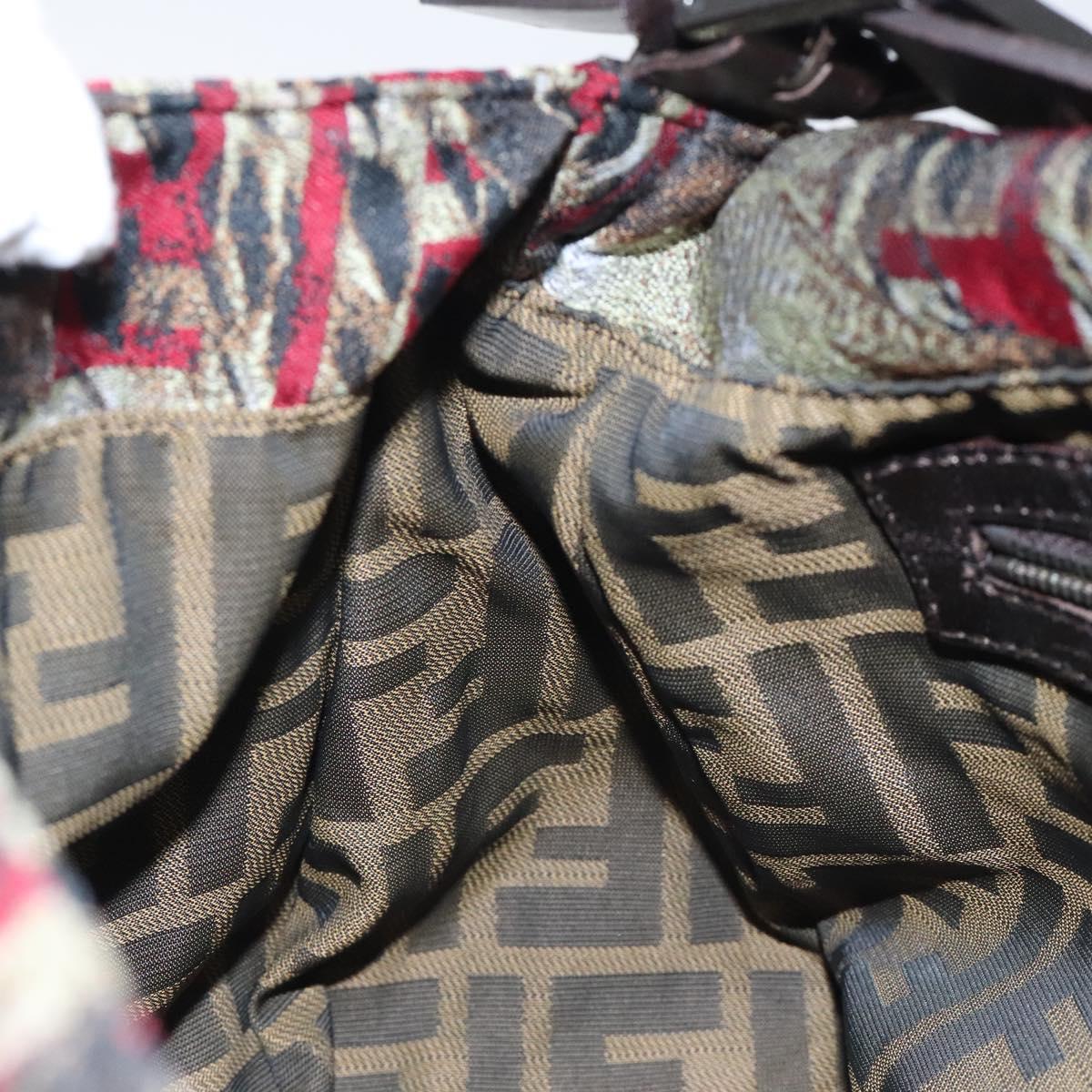 FENDI Mamma Baguette Shoulder Bag Nylon Brown Silver Auth 119242V