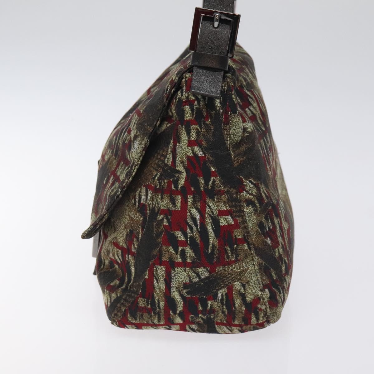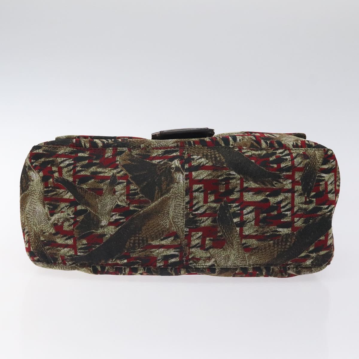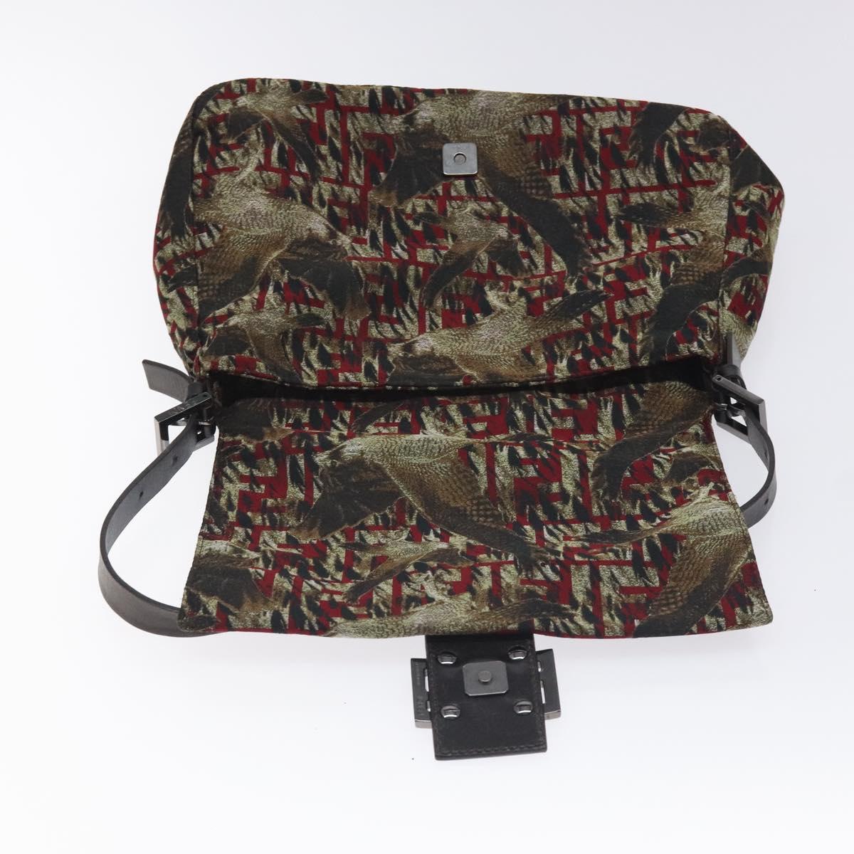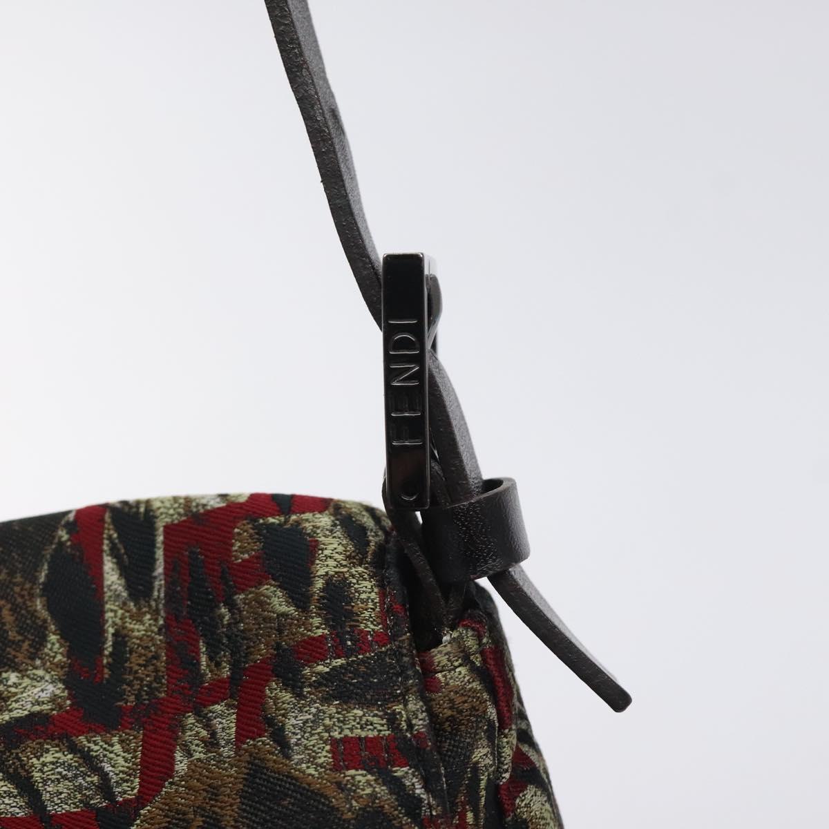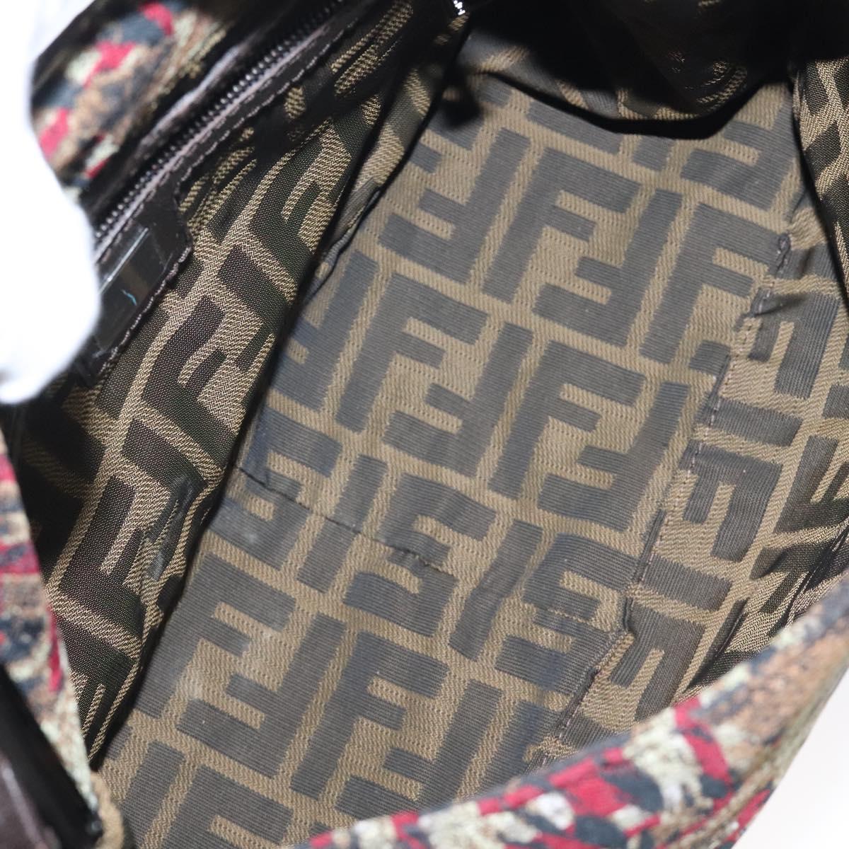 FENDI Mamma Baguette Shoulder Bag Nylon Brown Silver Auth 119242V