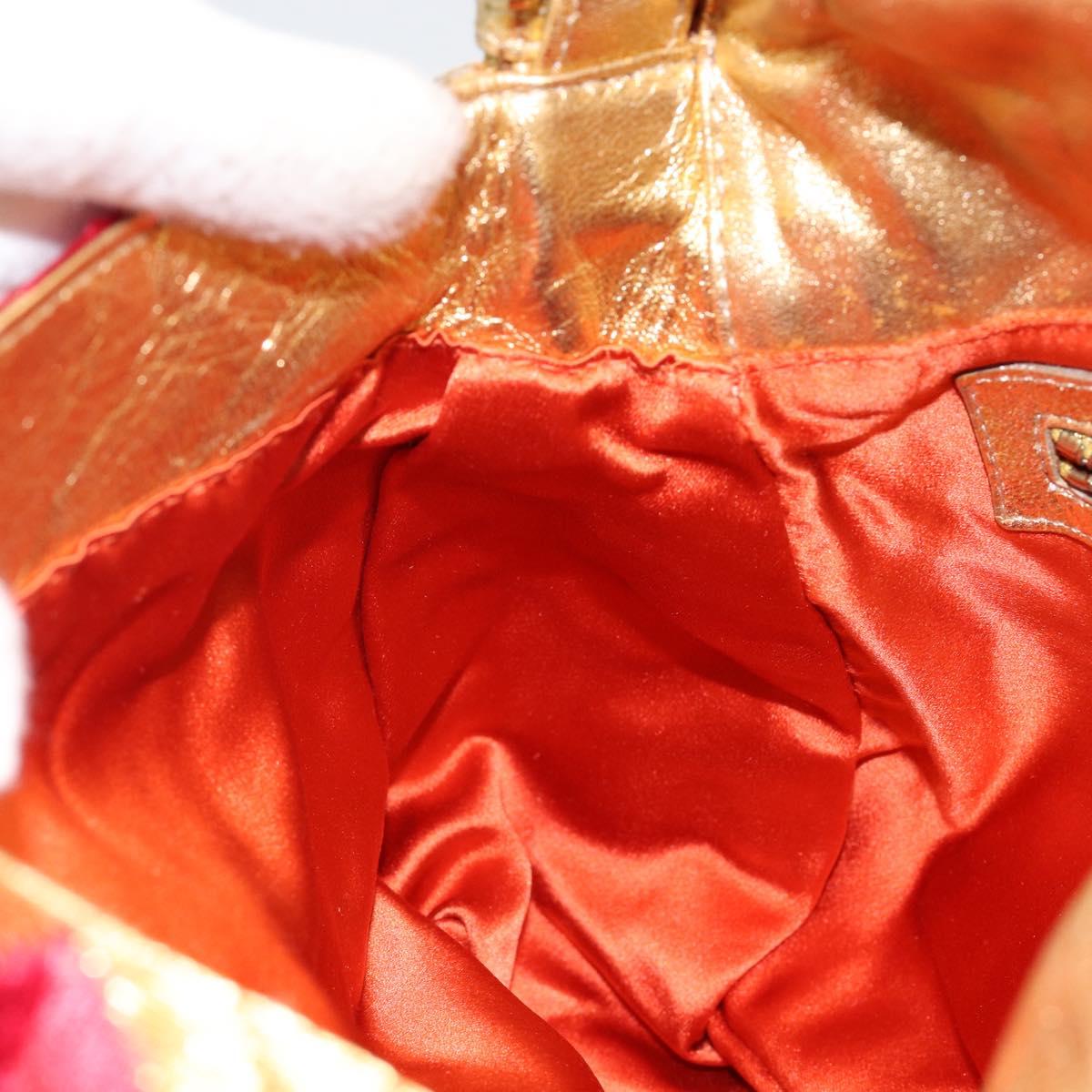 FENDI Mamma Baguette Shoulder Bag Satin Red Gold Auth 144979