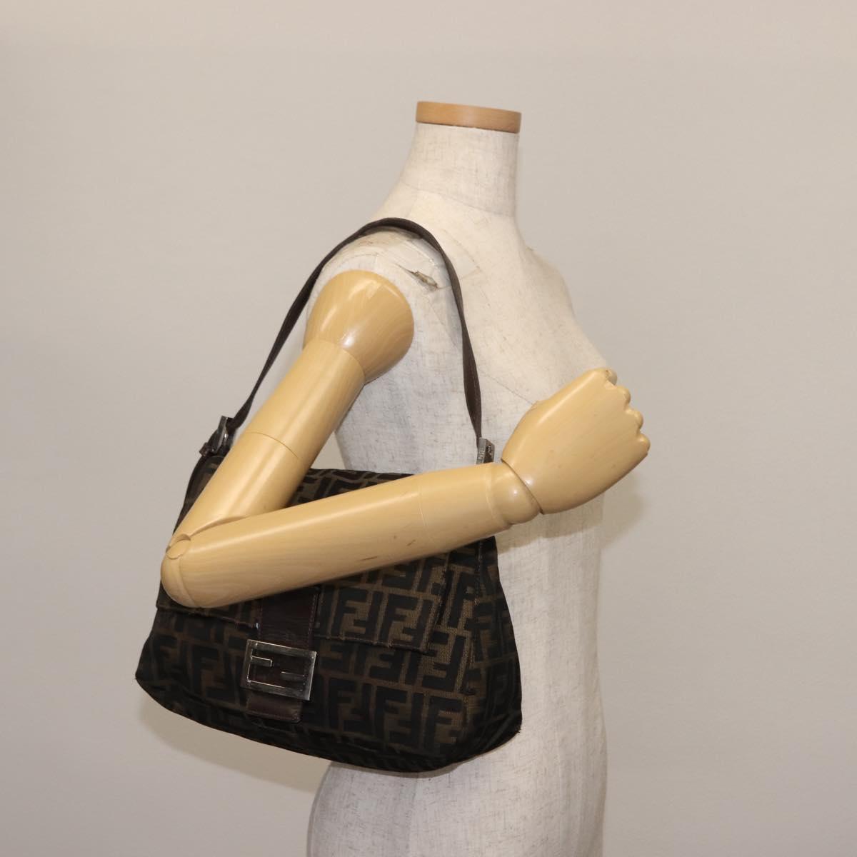 FENDI Mamma Baguette Shoulder Bag Zucca Canvas Black Brown Auth bs29947