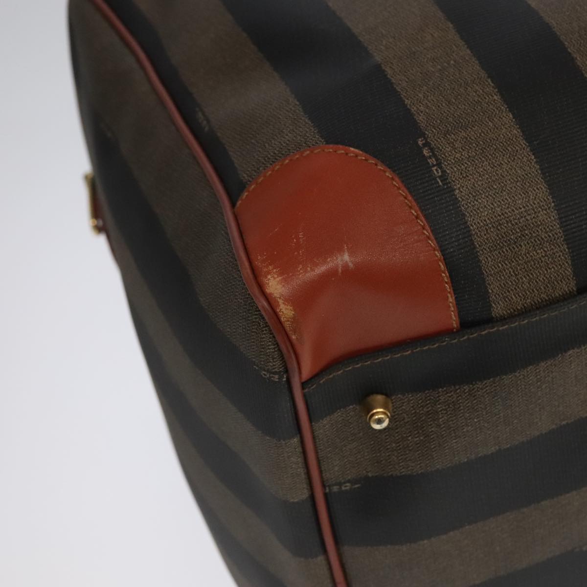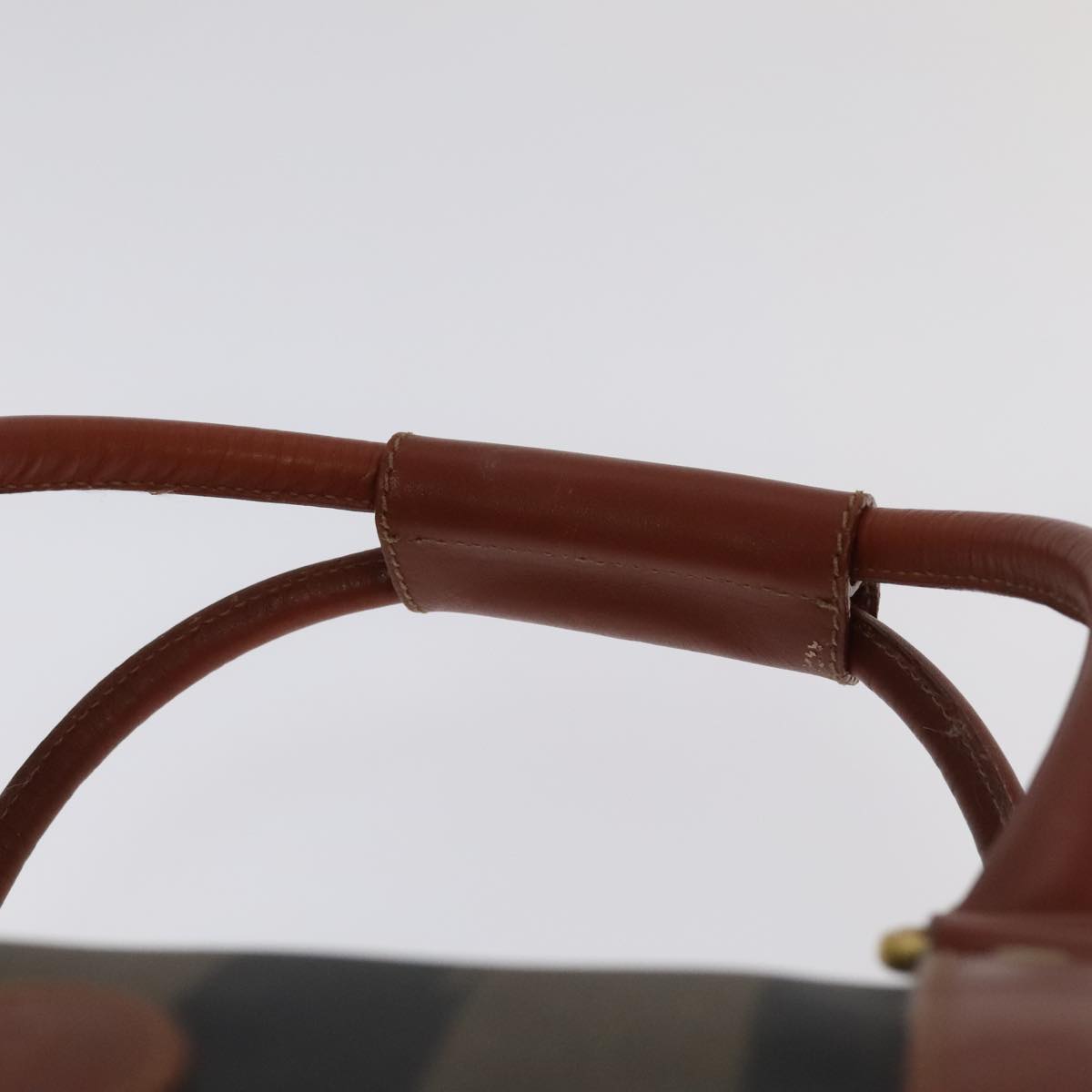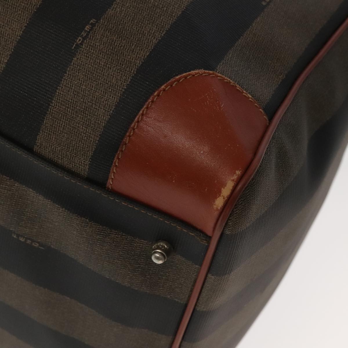 FENDI Pecan Canvas Boston Bag 2way Brown Black gold Auth ep6281