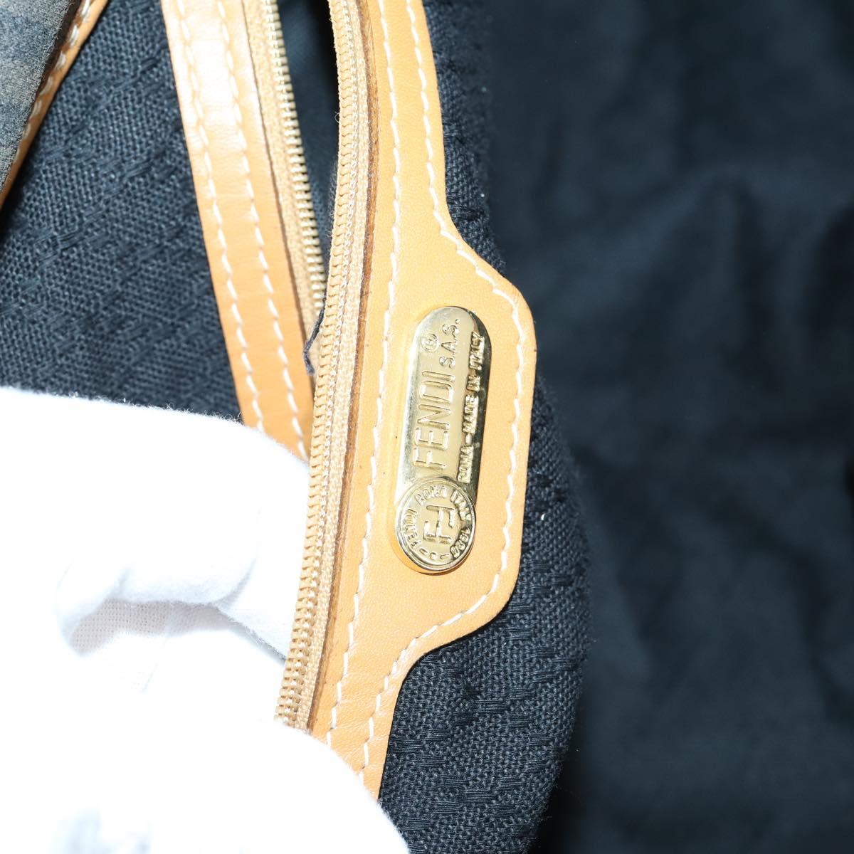 FENDI Pecan Canvas Boston Bag Coated Canvas 2way Black Brown Auth th6359
