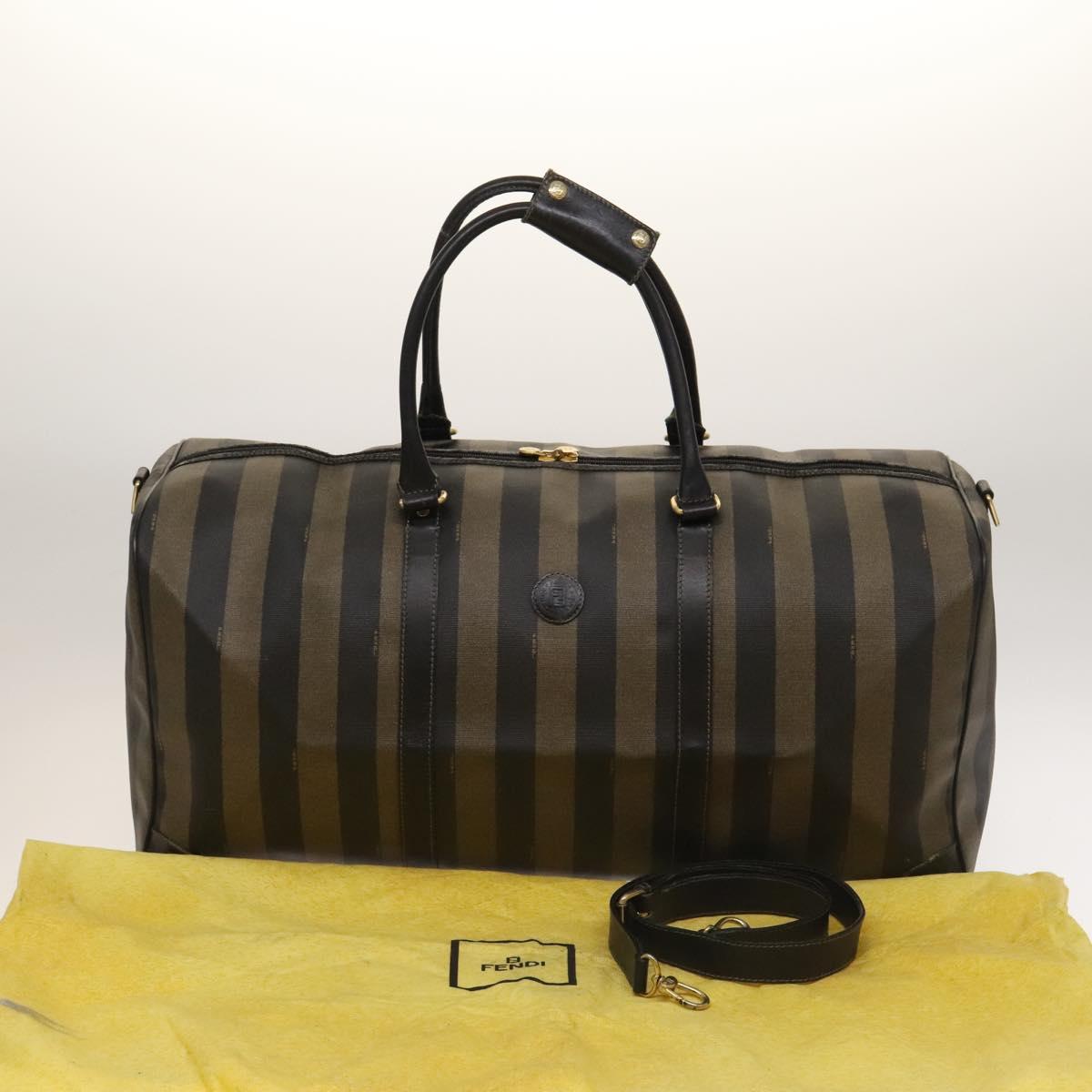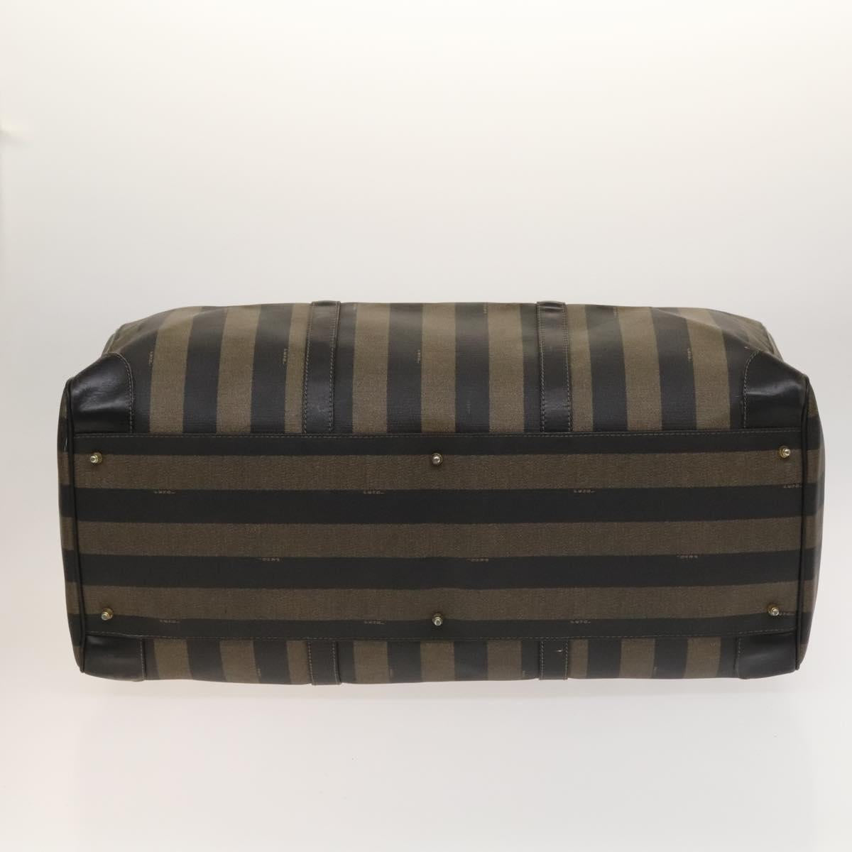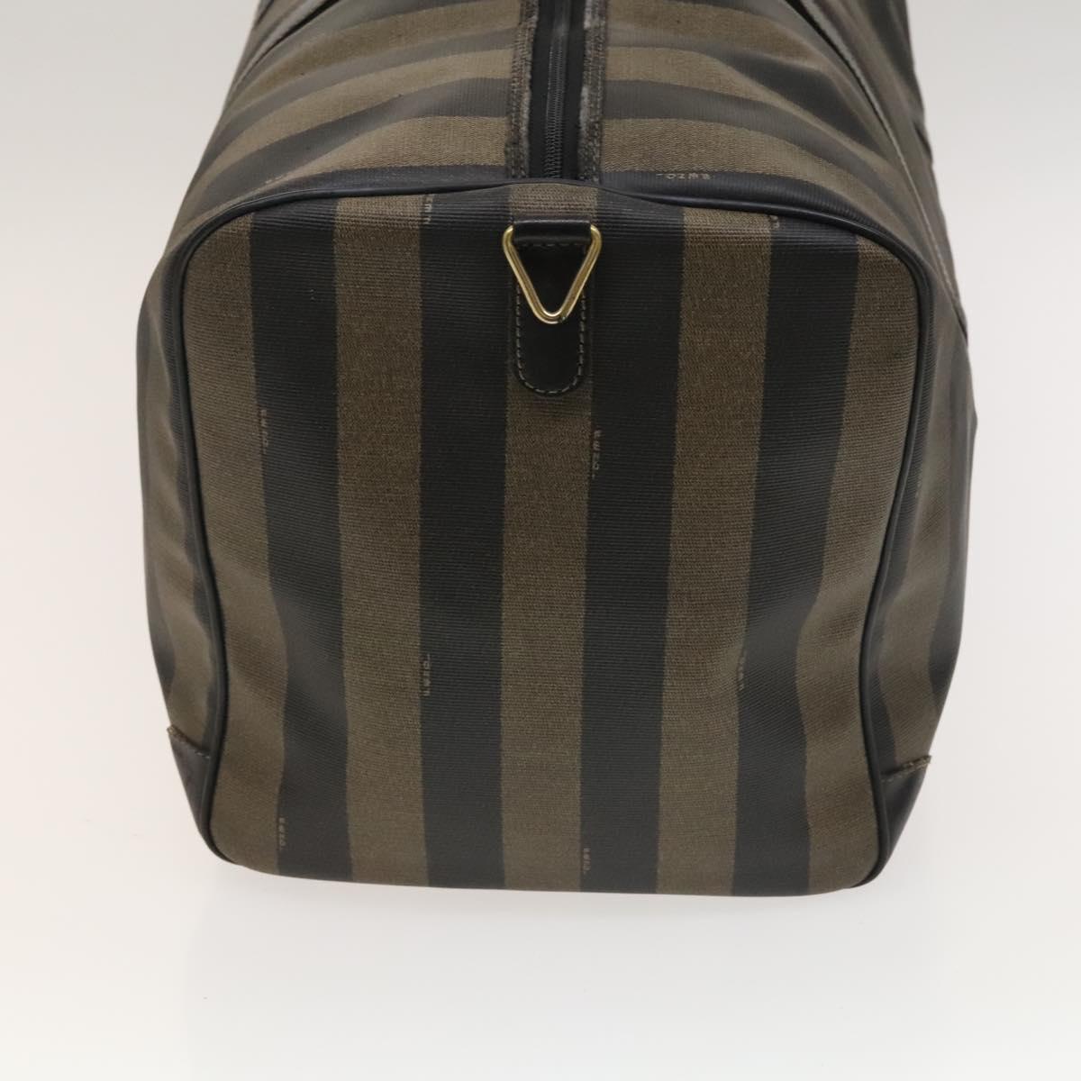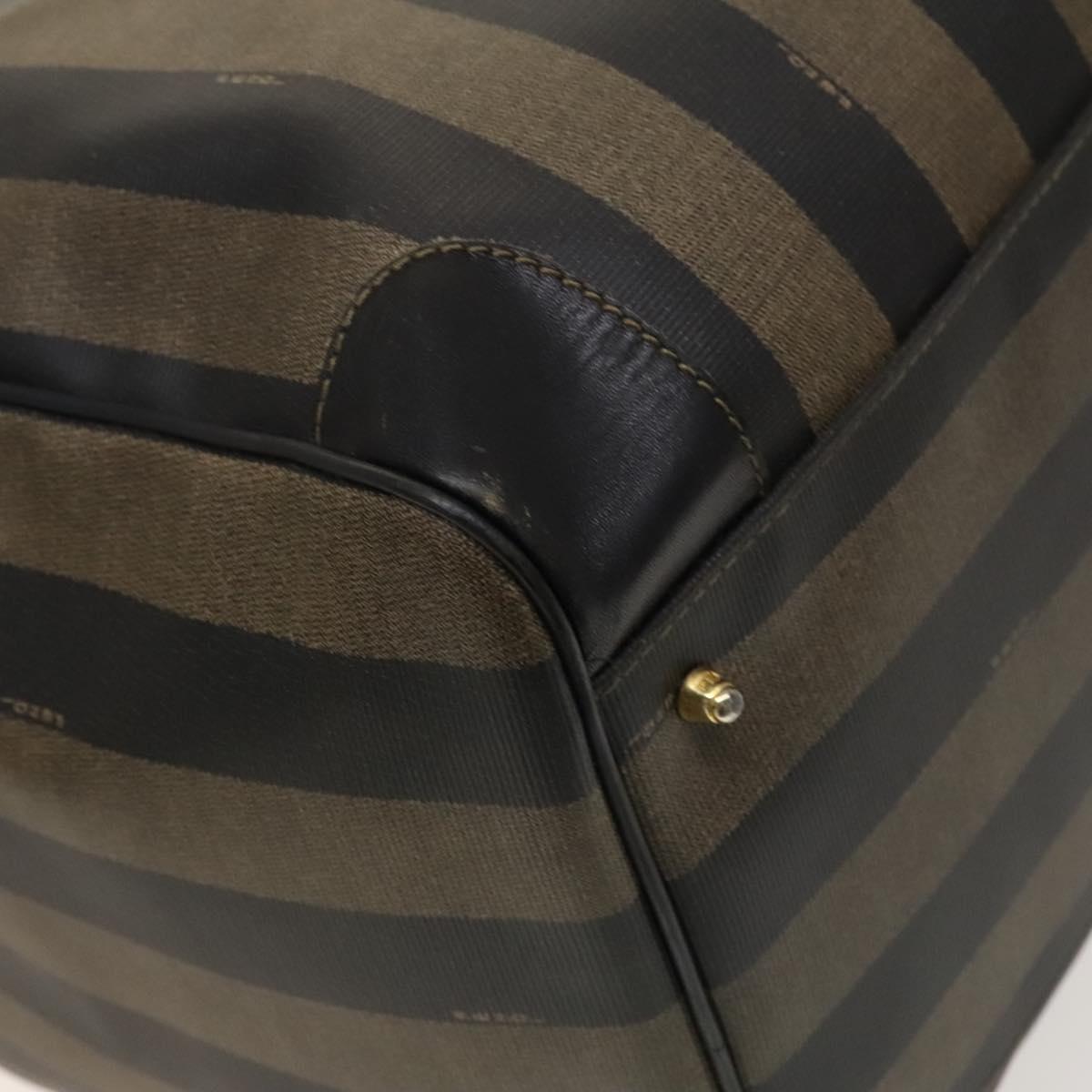 FENDI Pecan Canvas Boston Bag PVC 2way Black Brown Auth th6160