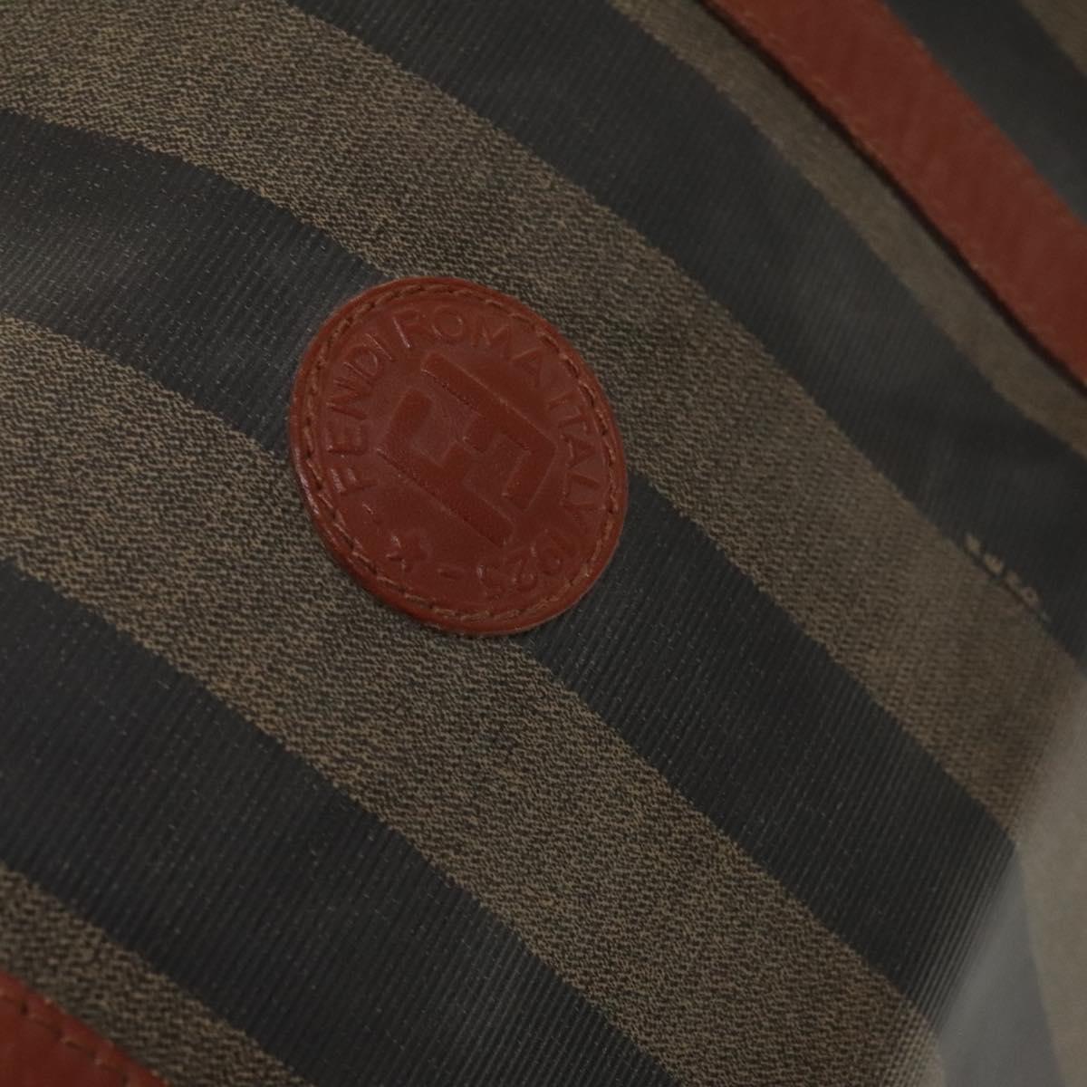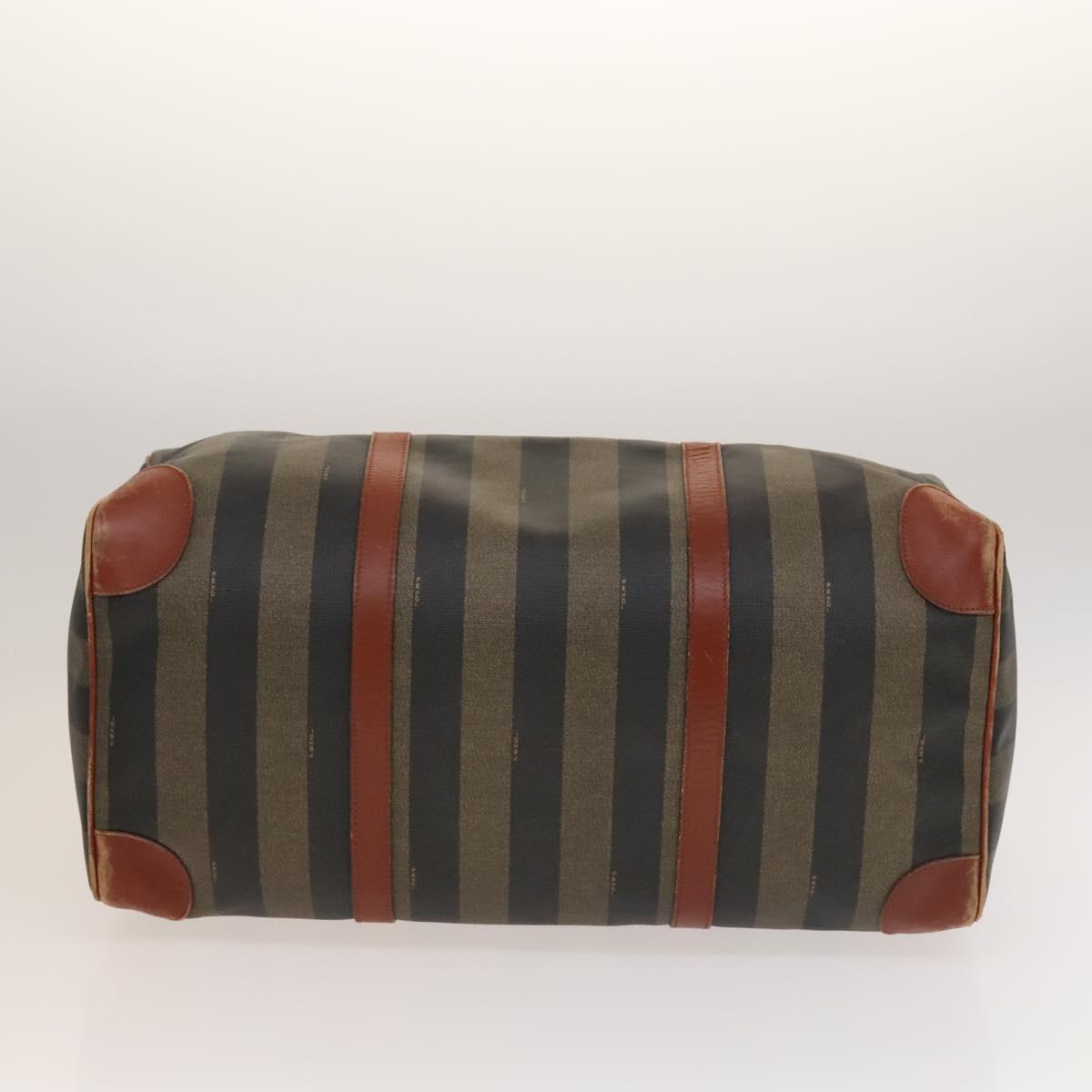 FENDI Pecan Canvas Boston Bag PVC Black Brown gold Auth yk18761