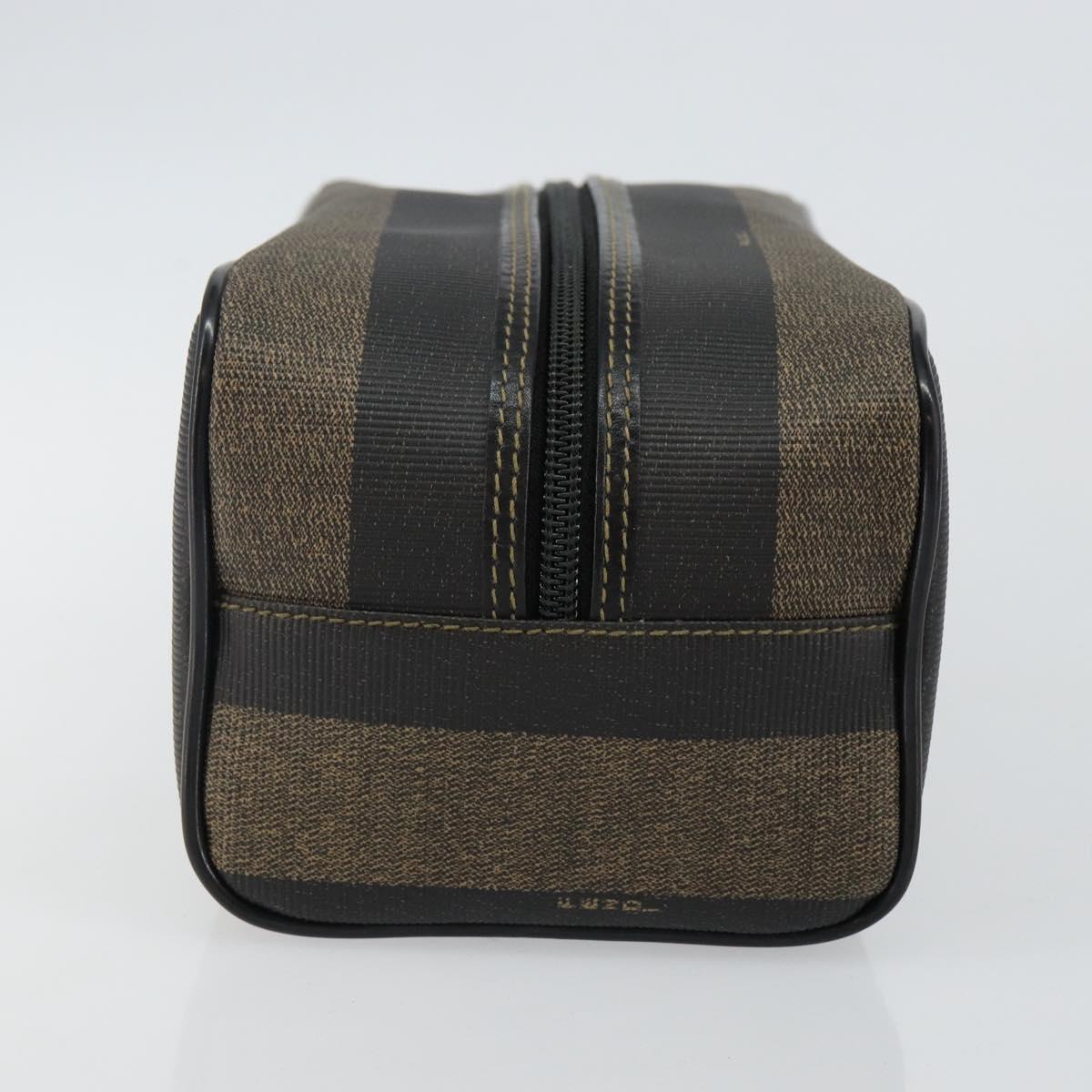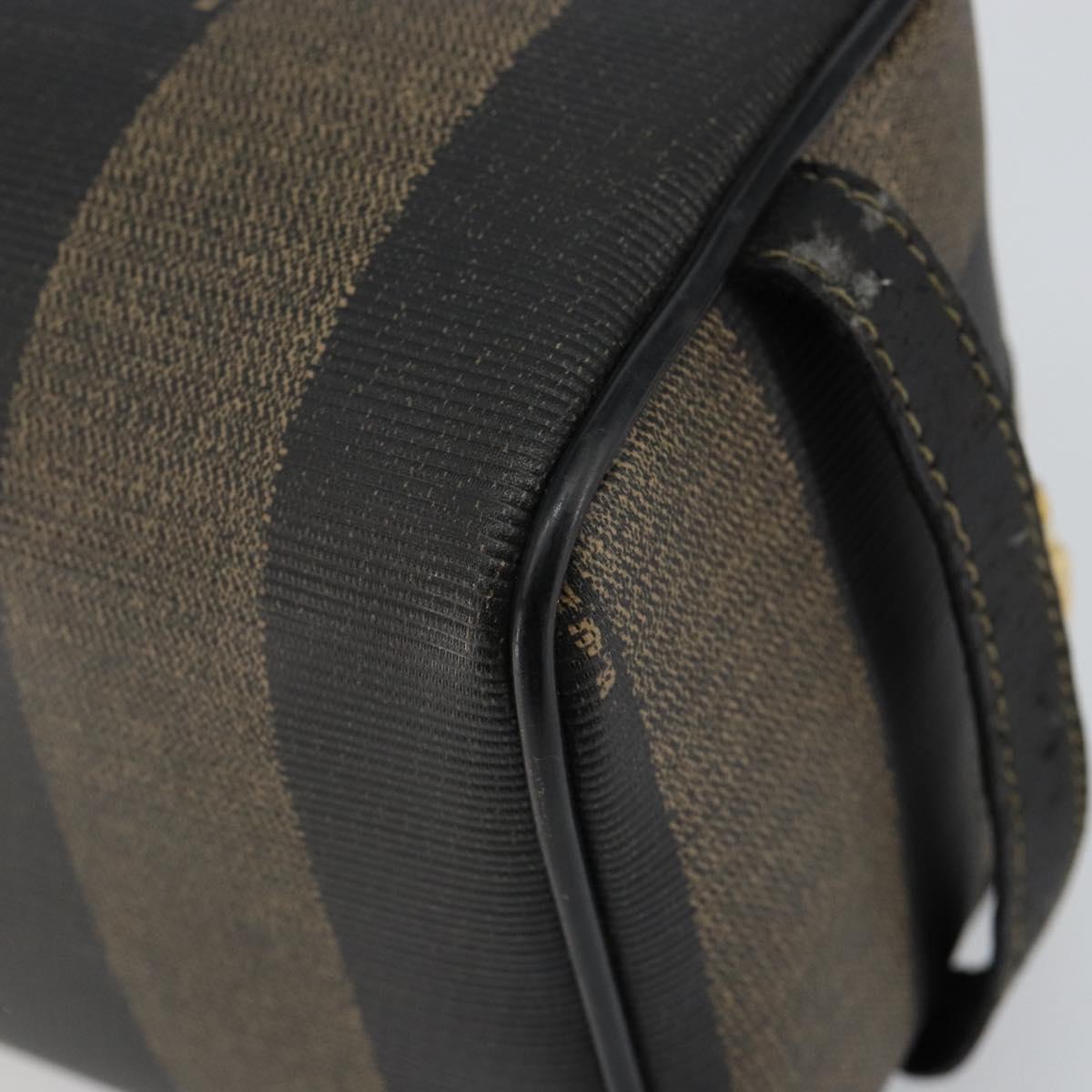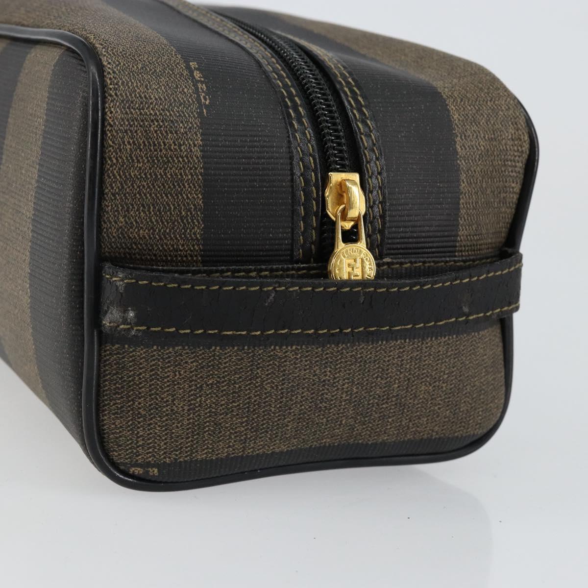FENDI Pecan Canvas Clutch Bag PVC Black Brown gold Auth 144211