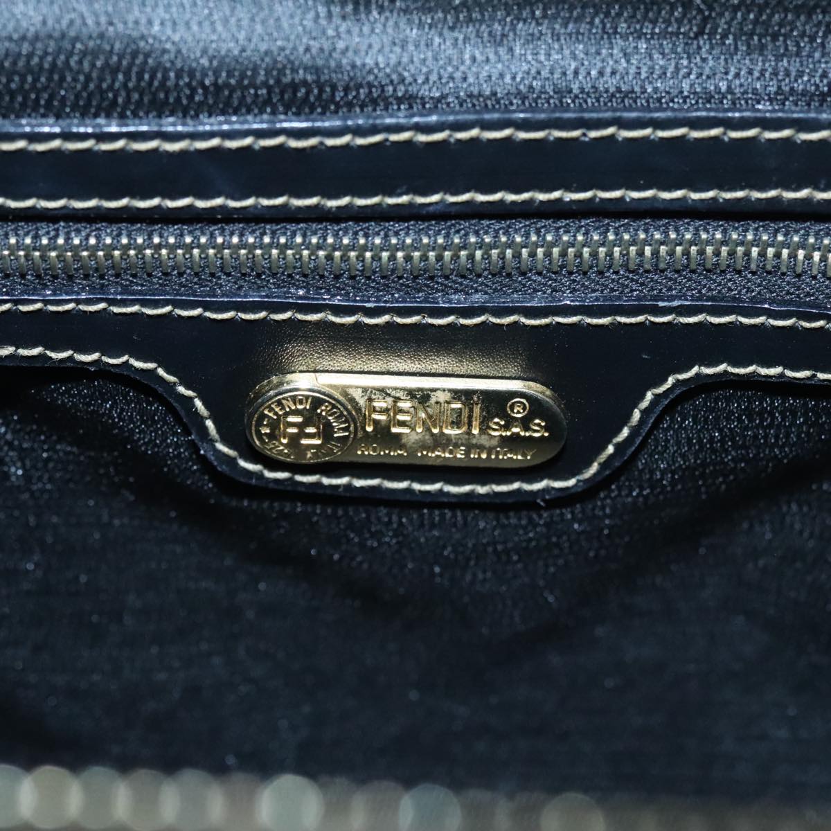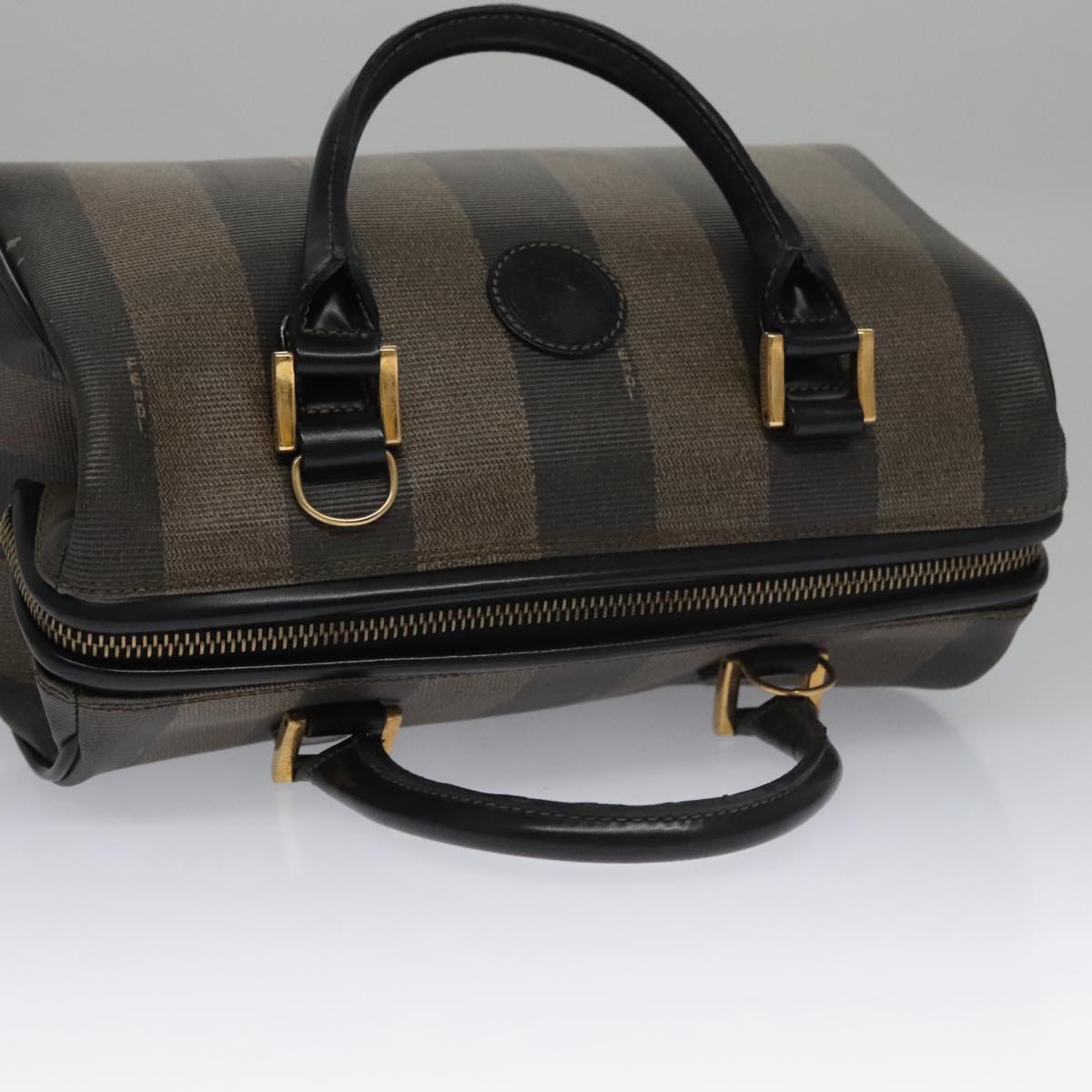FENDI Pecan Canvas Hand Bag Brown Black gold Auth 102870