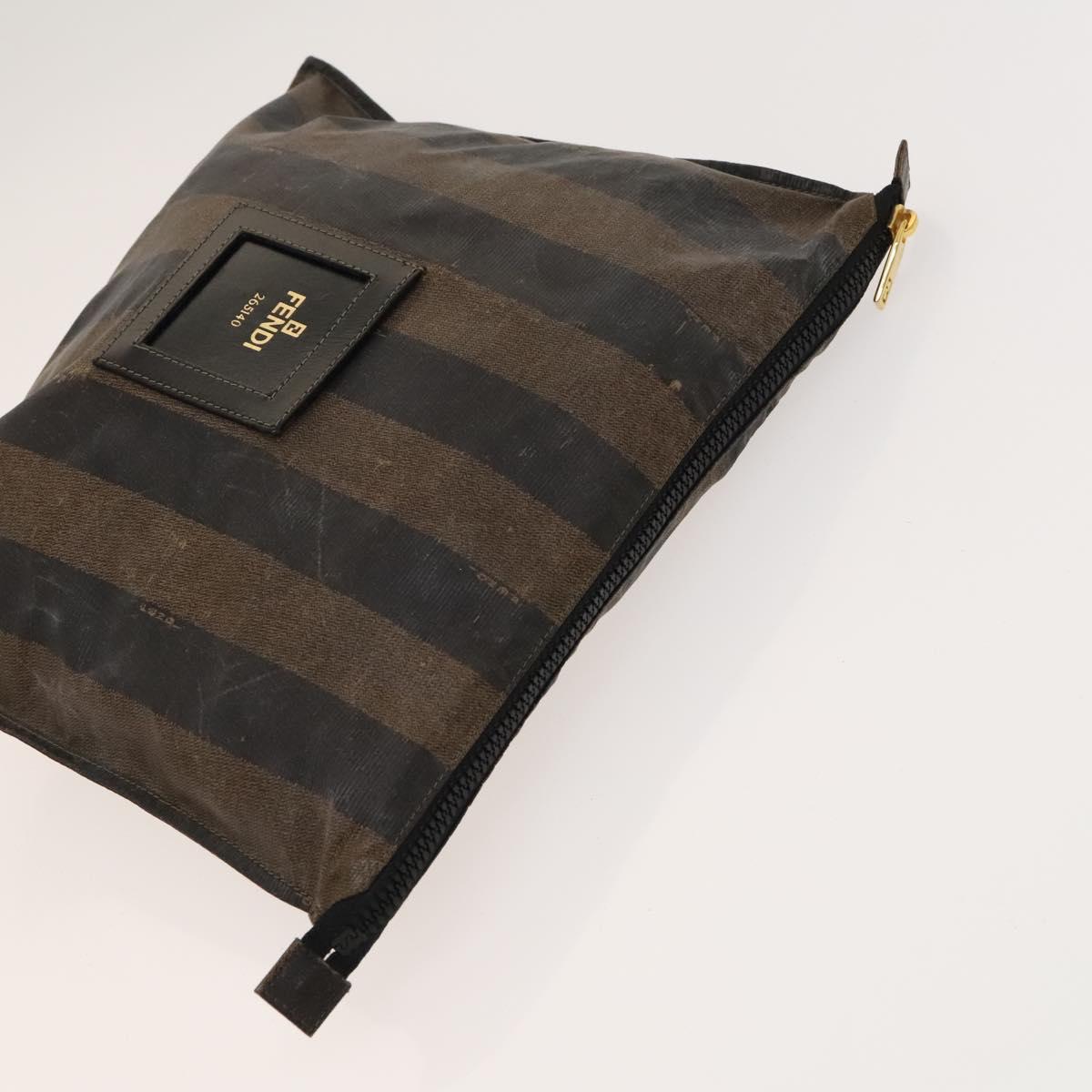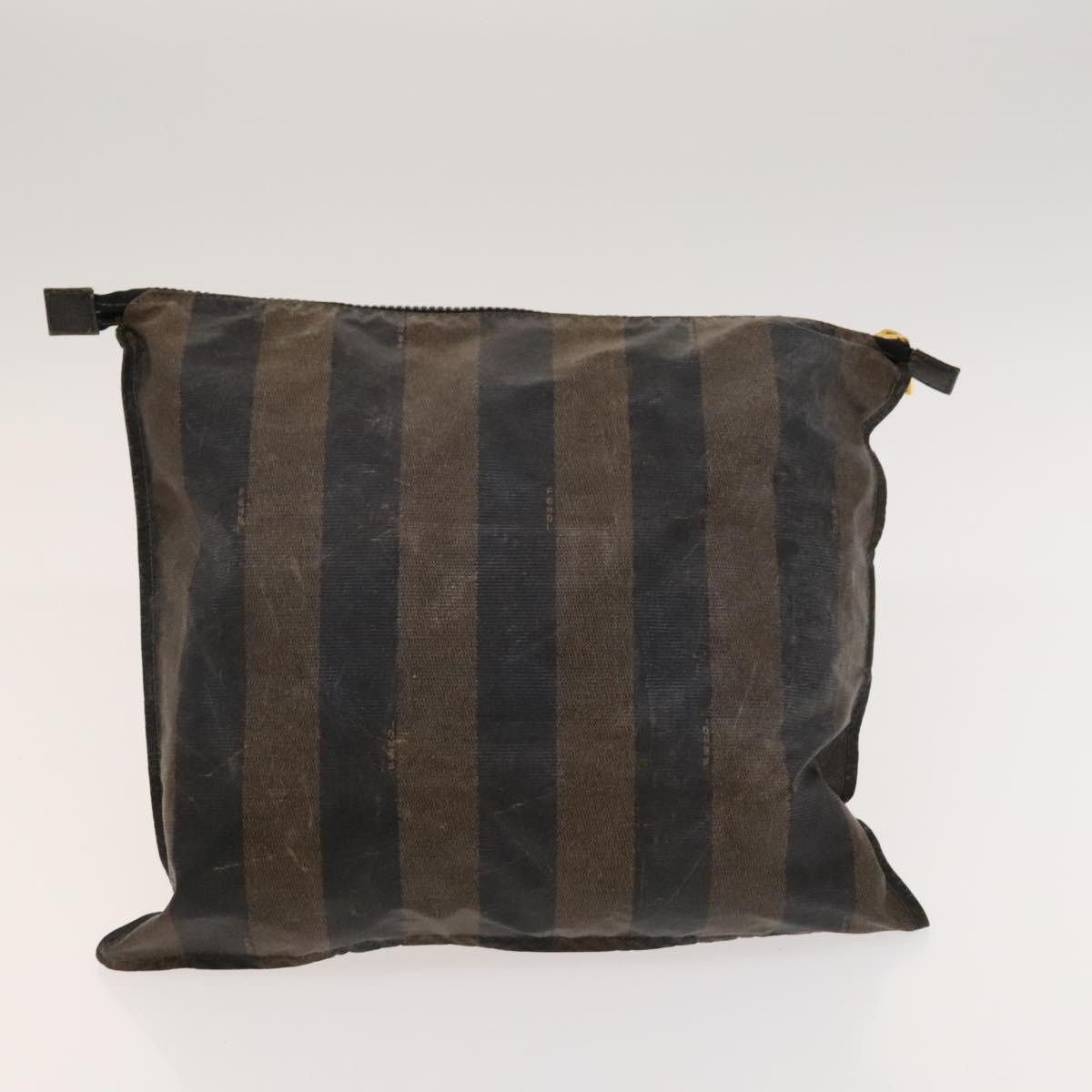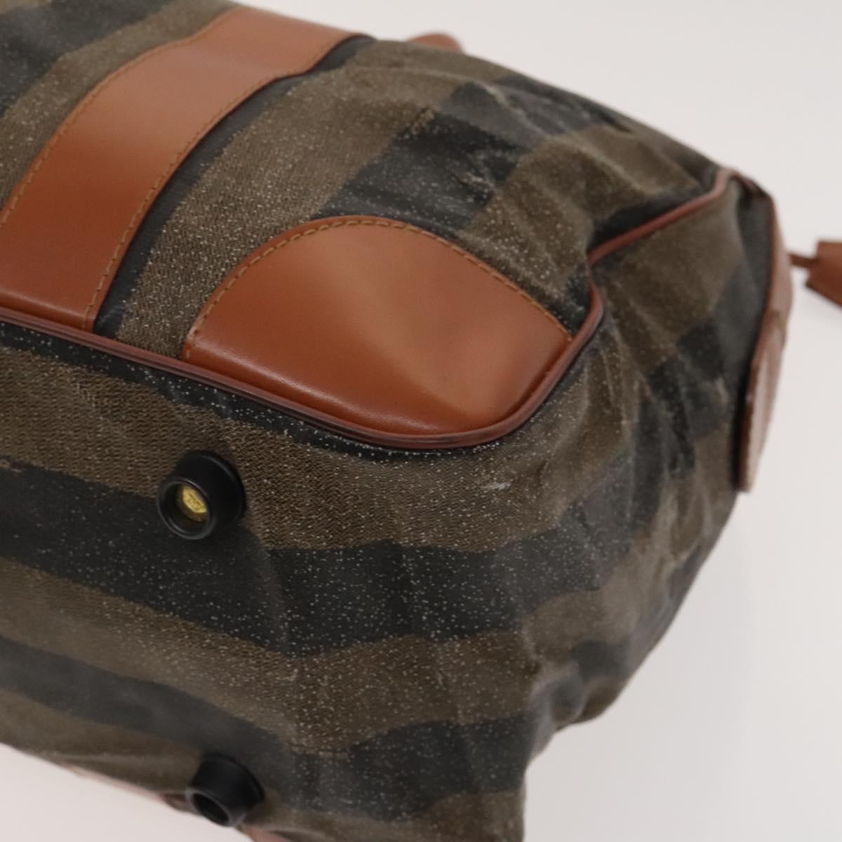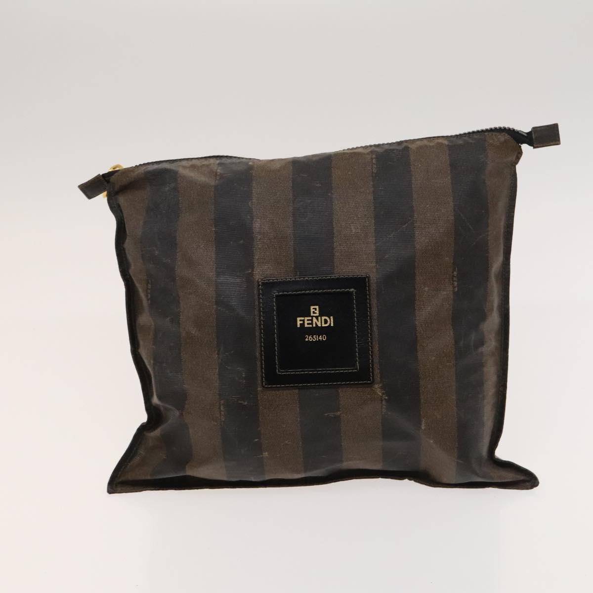 FENDI Pecan Canvas Hand Bag Leather 2Set Black Brown gold Auth bs26745