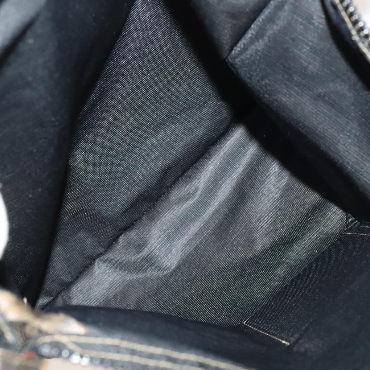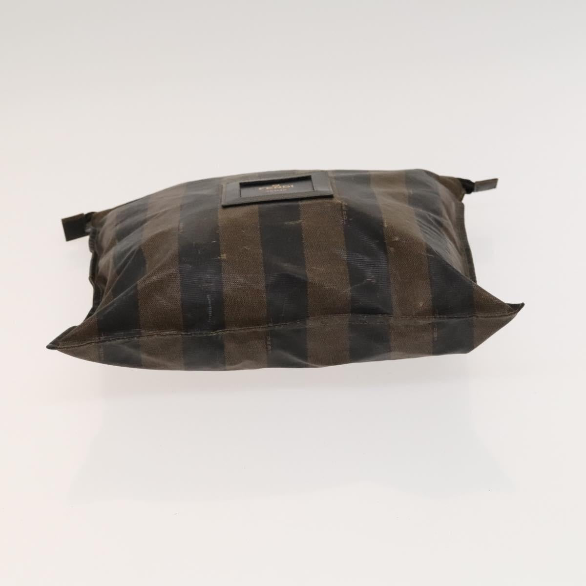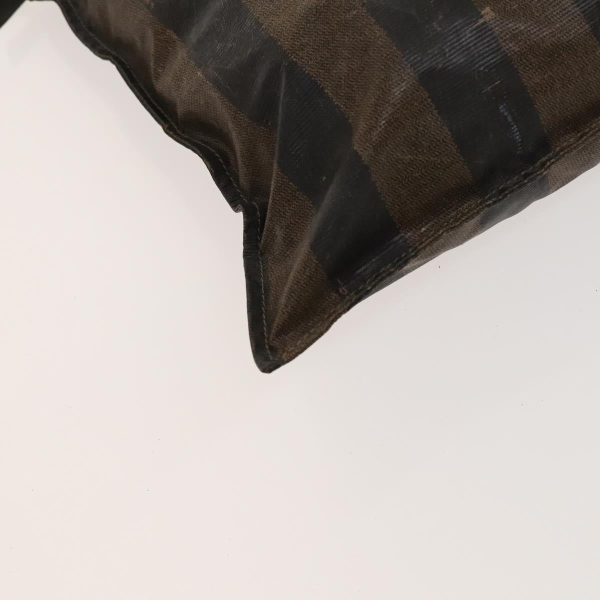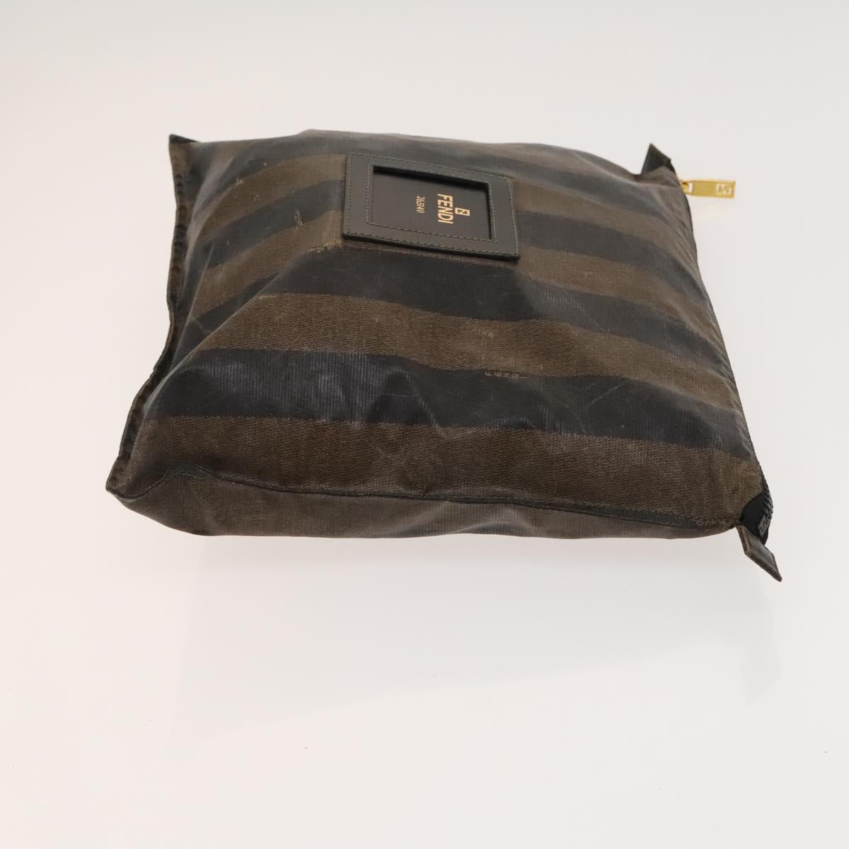 FENDI Pecan Canvas Hand Bag Leather 2Set Black Brown gold Auth bs26745