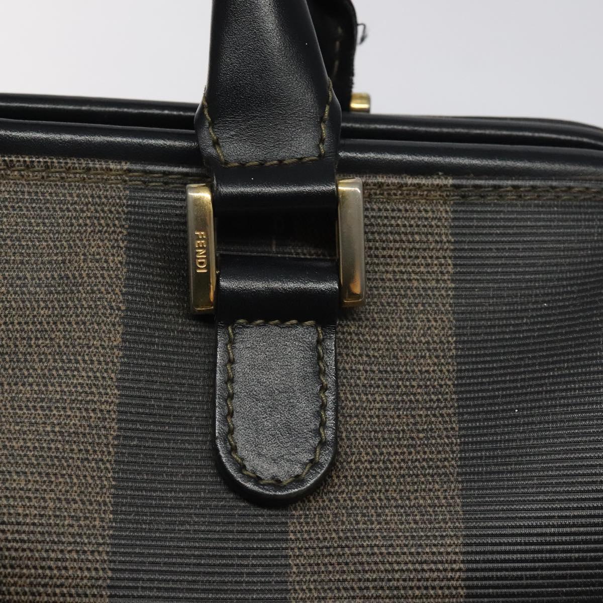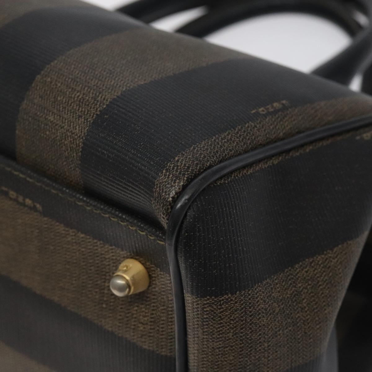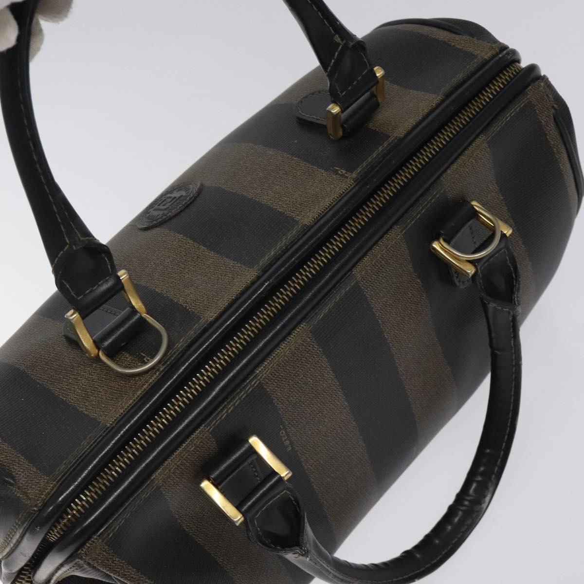 FENDI Pecan Canvas Hand Bag PVC Brown Gold Auth 119823