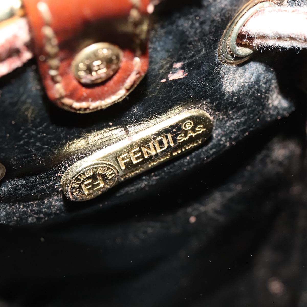 FENDI Pecan Canvas Shoulder Bag Brown Black Gold Auth 102701