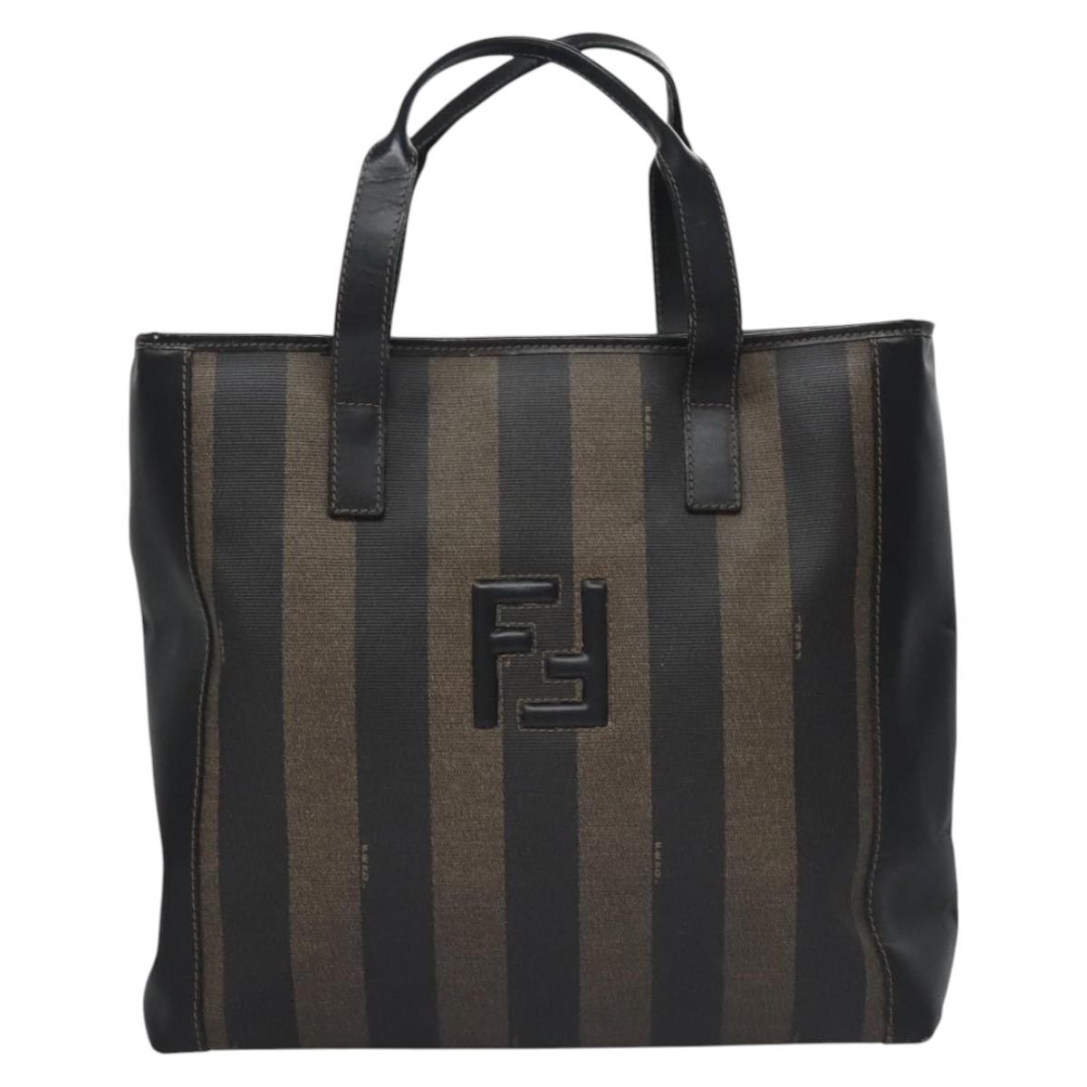 FENDI Pecan Canvas Tote Bag Brown Black Auth BD578