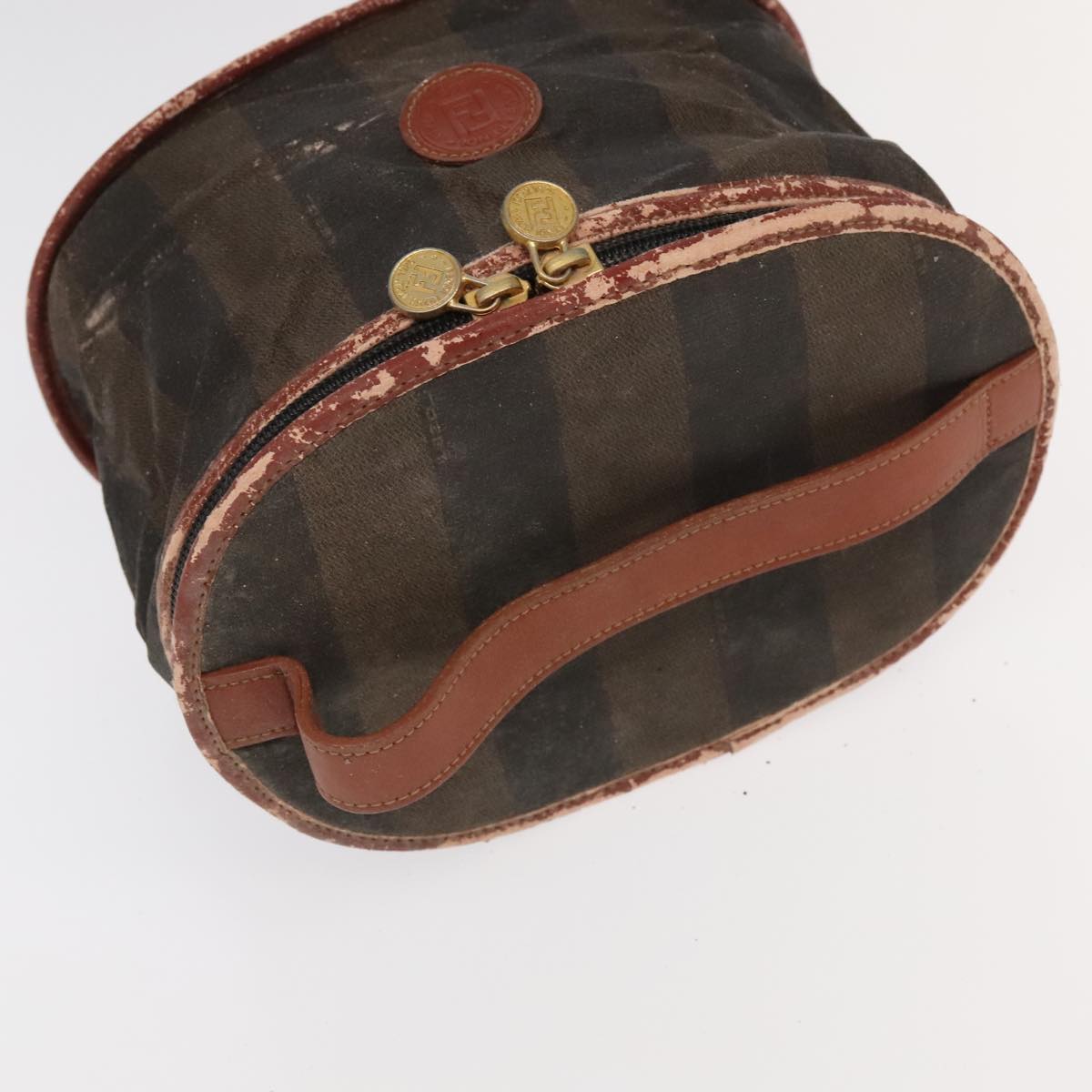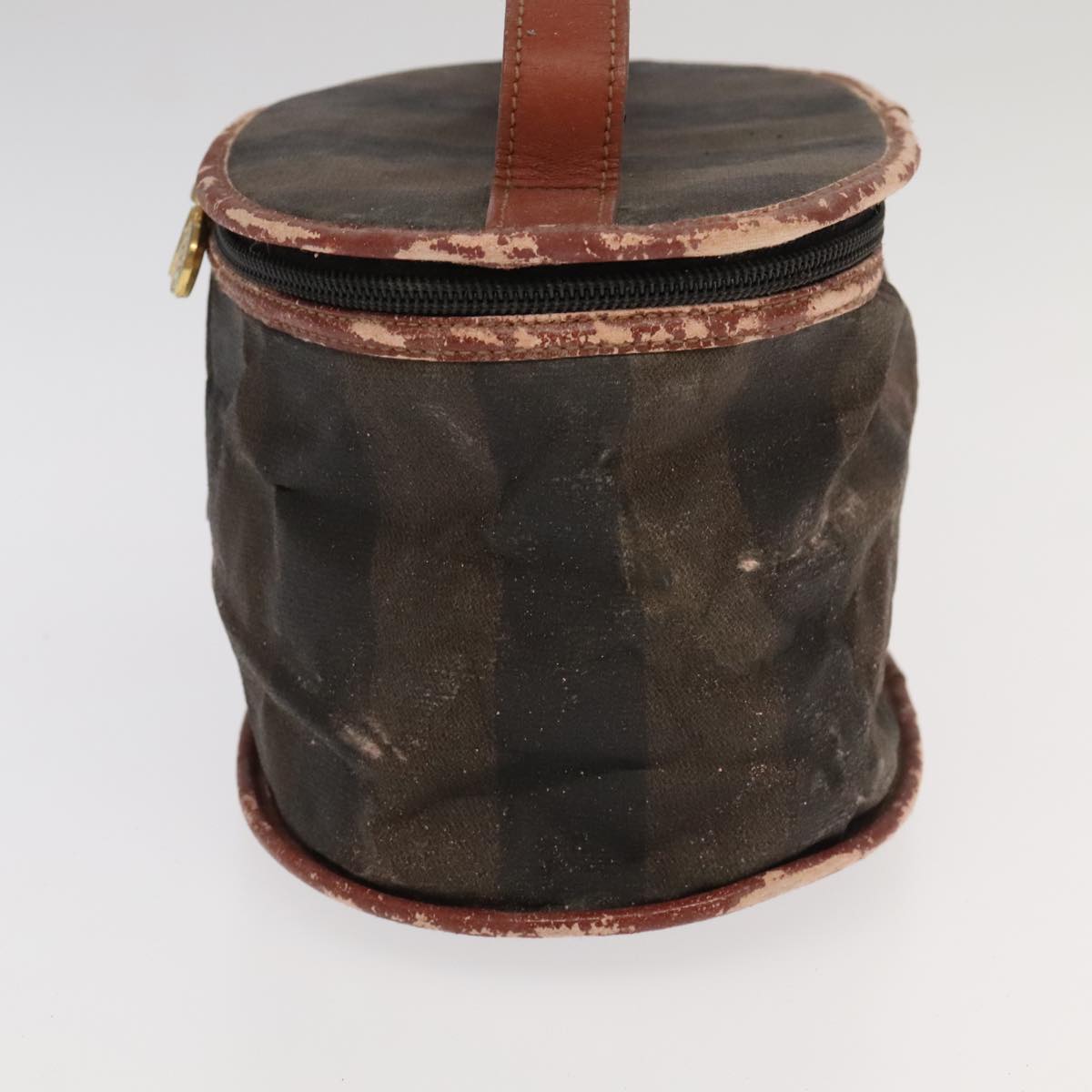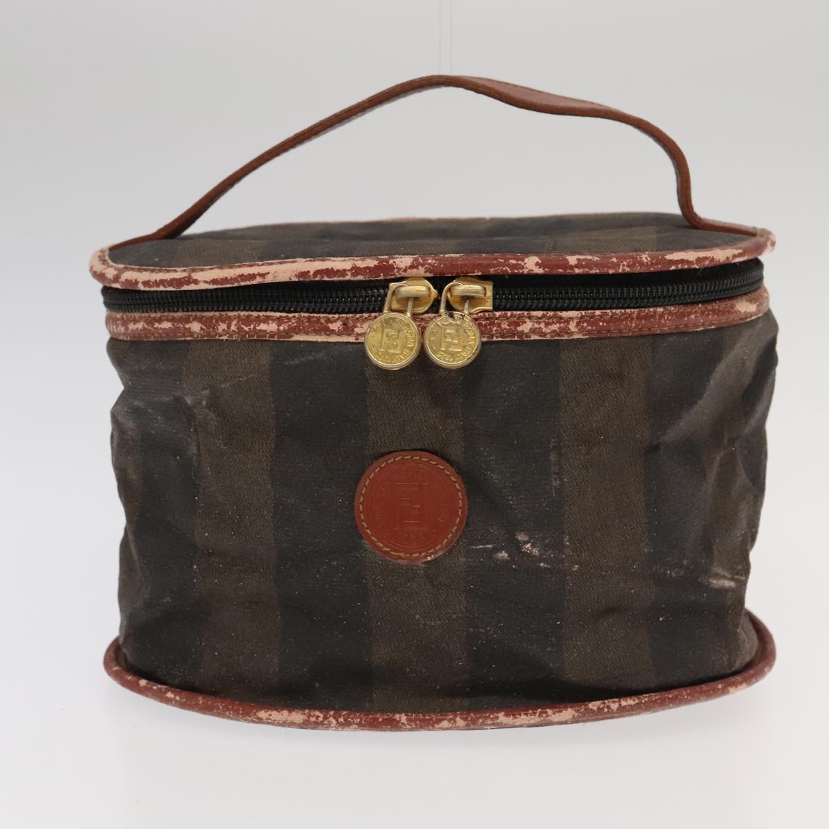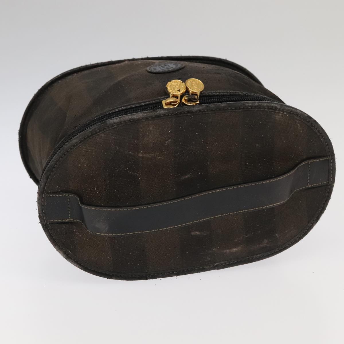 FENDI Pecan Canvas Vanity Pouch 2Set Black Brown Auth bs20764