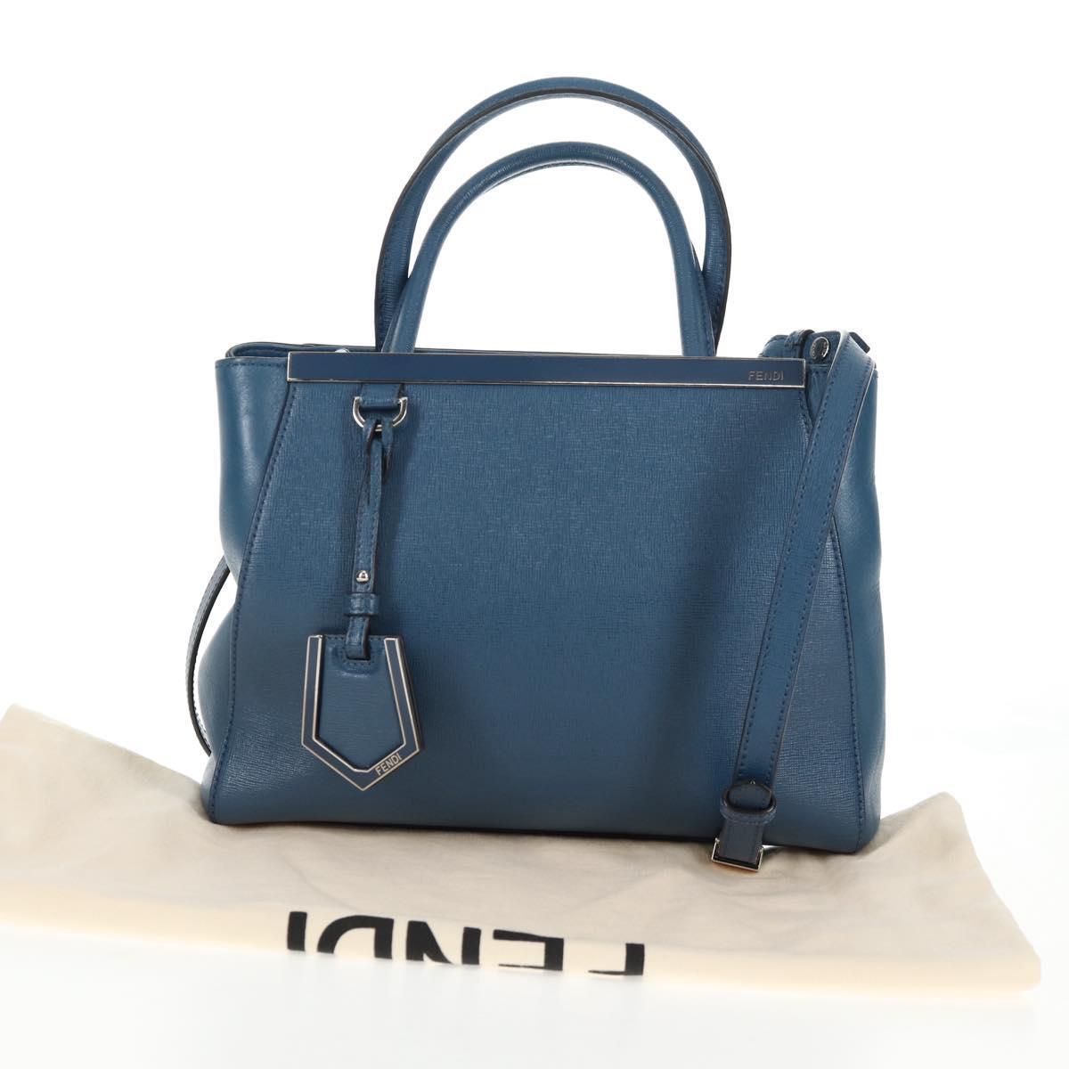 FENDI Petite To Jules Hand Bag Leather 2way Blue Silver Auth 141157