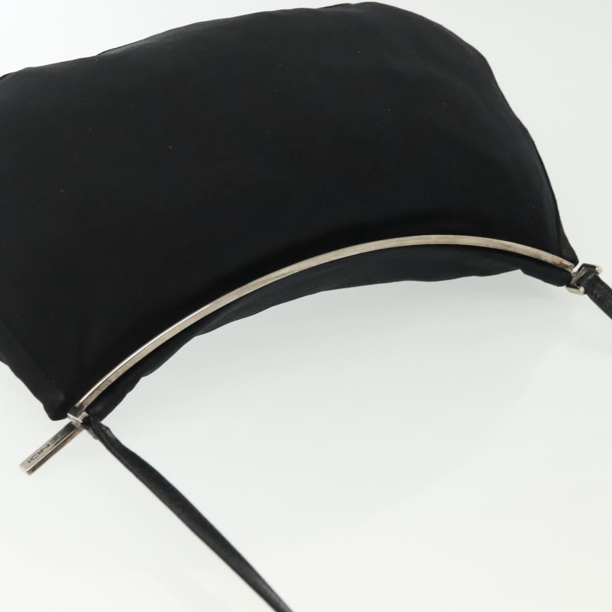 FENDI Shoulder Bag Canvas Black Silver Auth 141033