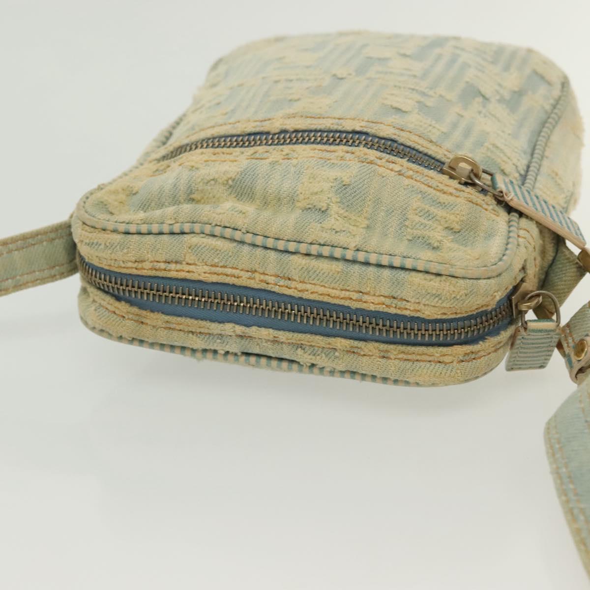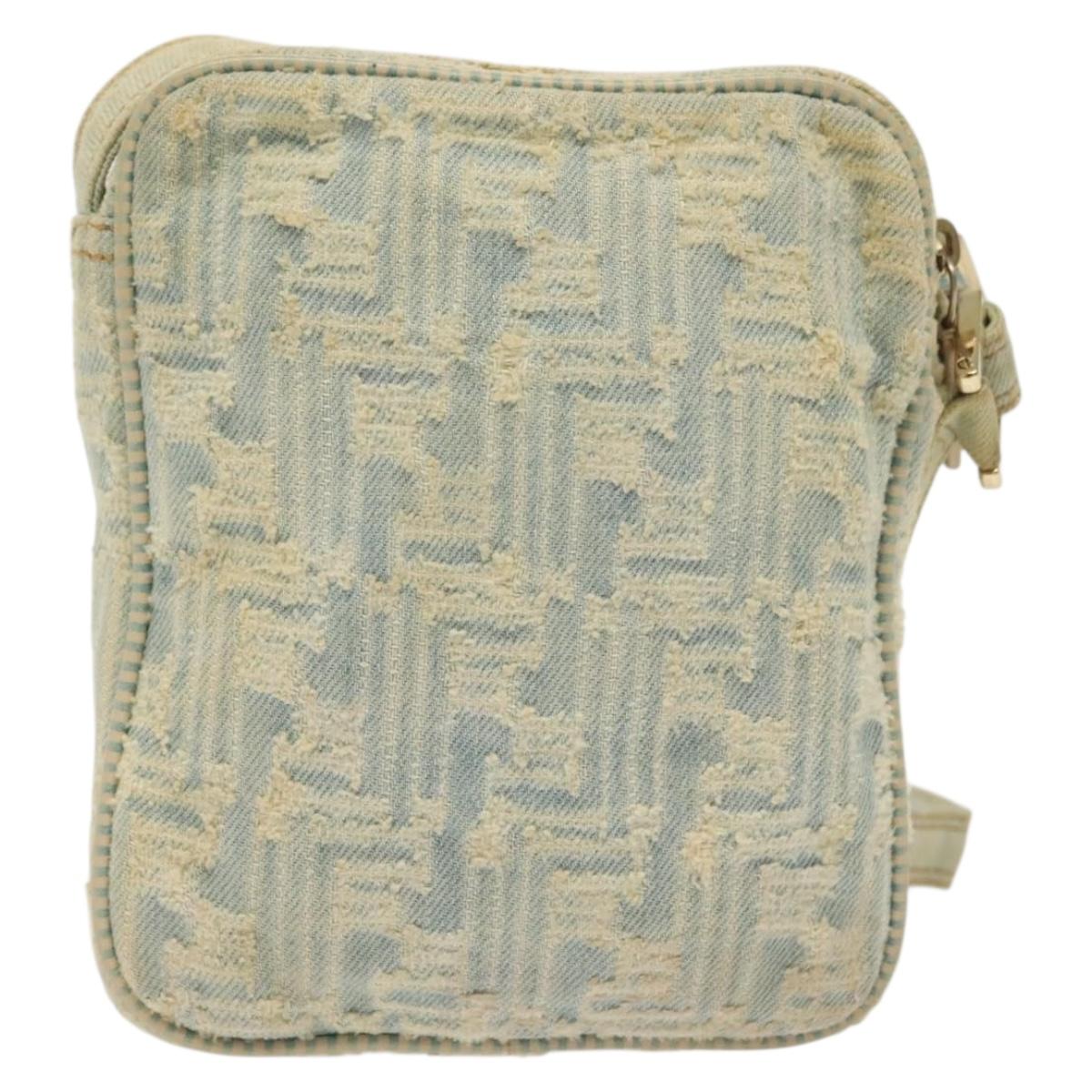 FENDI Shoulder Bag Denim Light Blue Gold Auth 142242