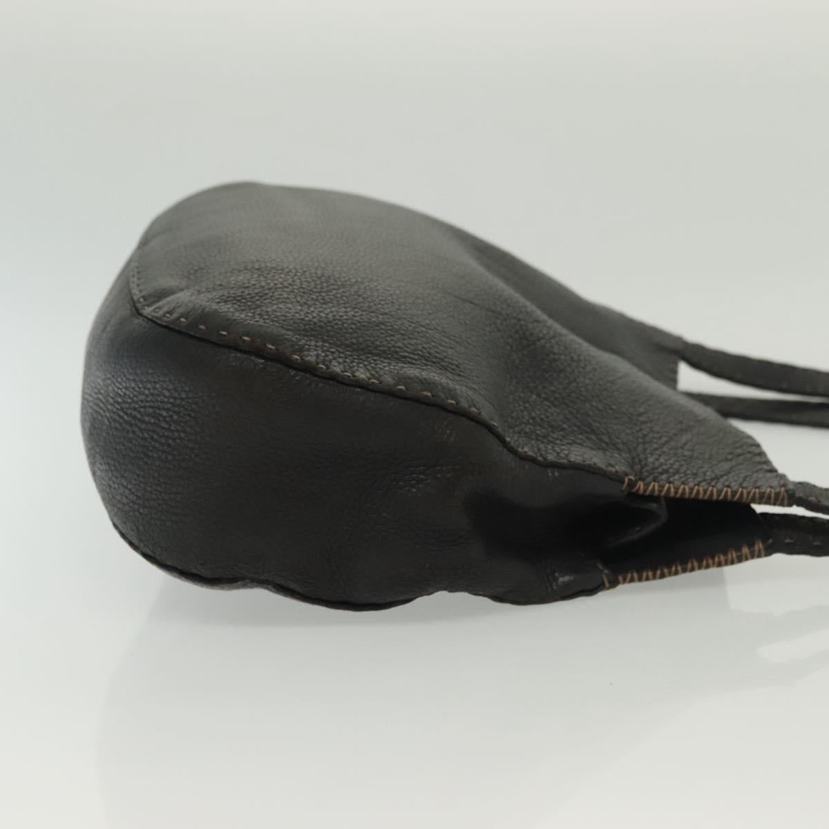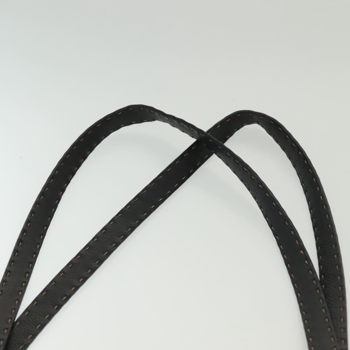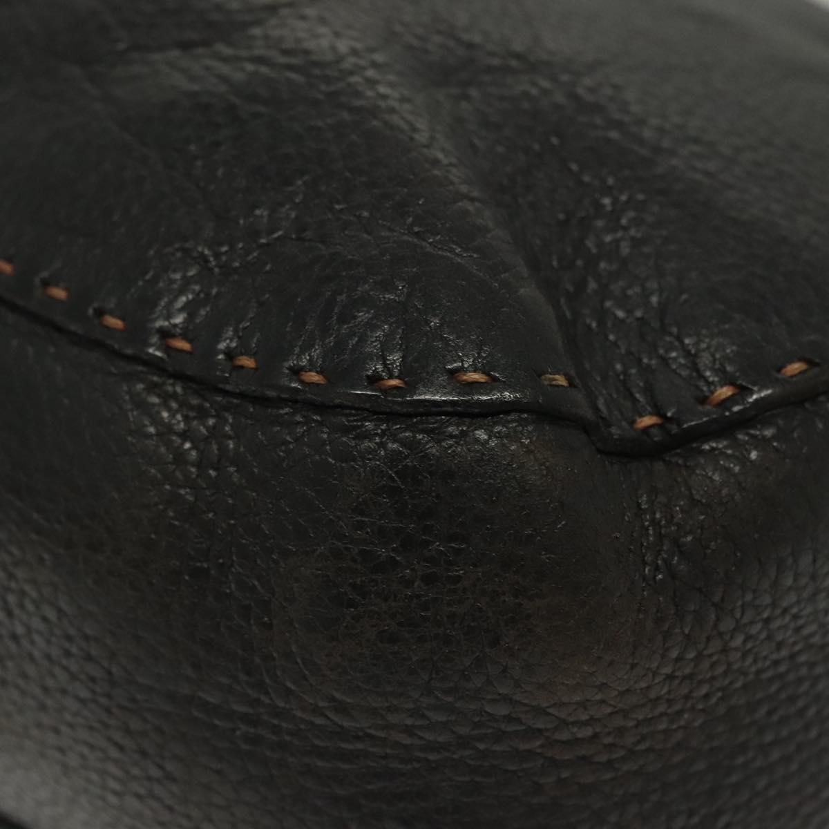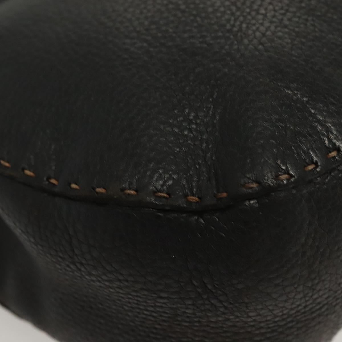 FENDI Shoulder Bag Leather Black Silver Auth bs28713