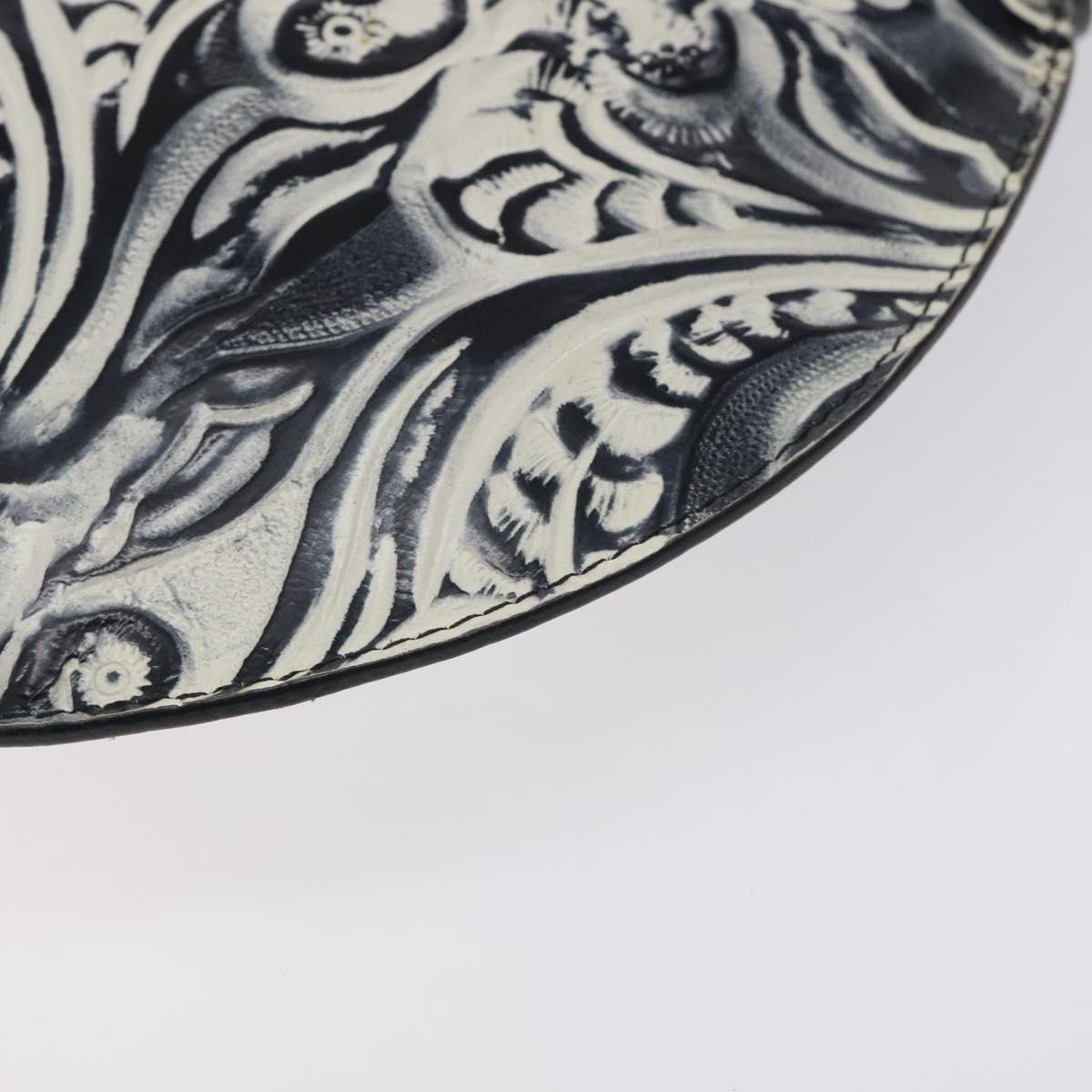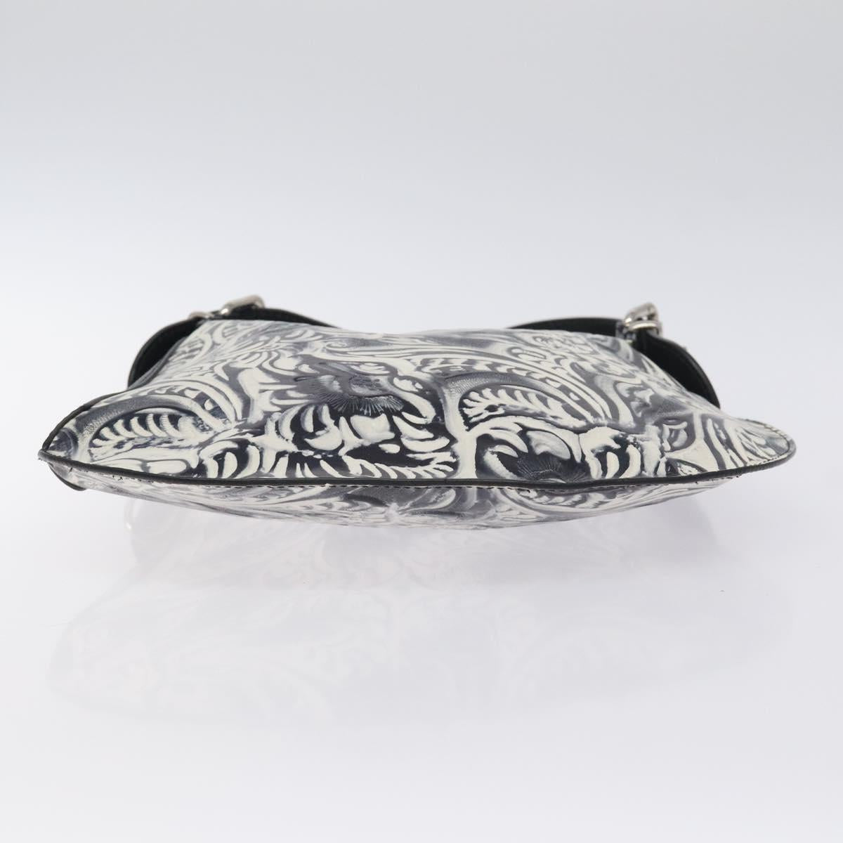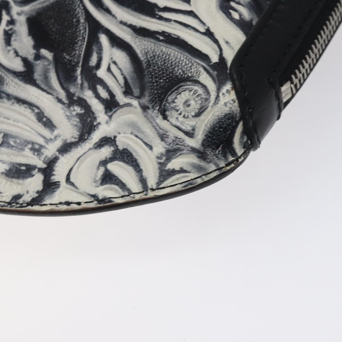 FENDI Shoulder Bag Leather Black White Silver Auth 130408V