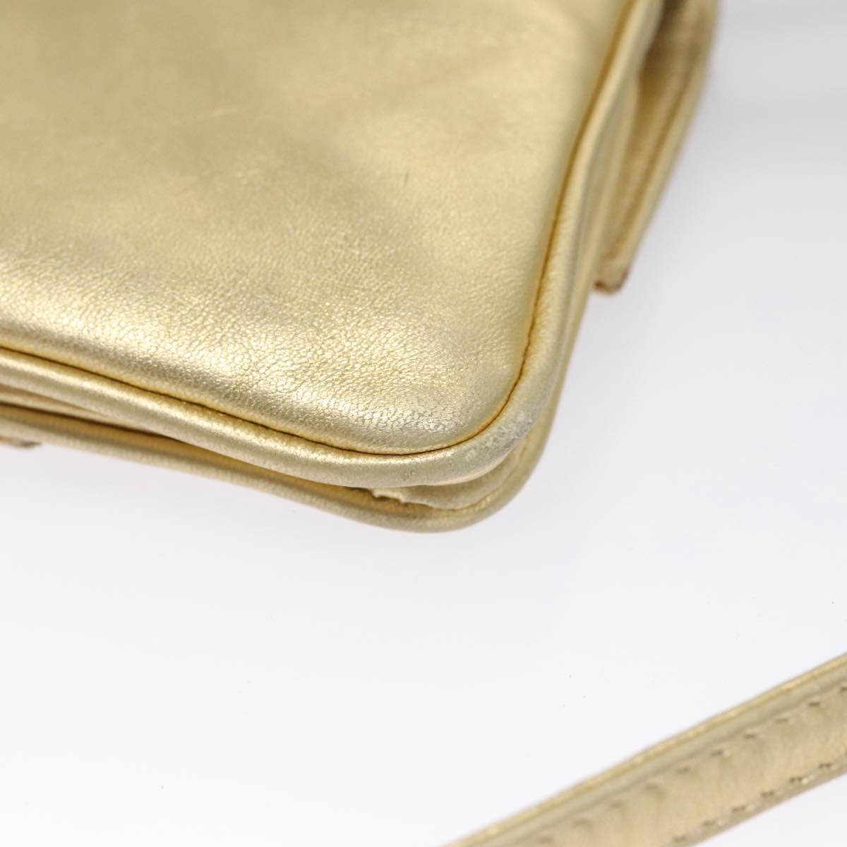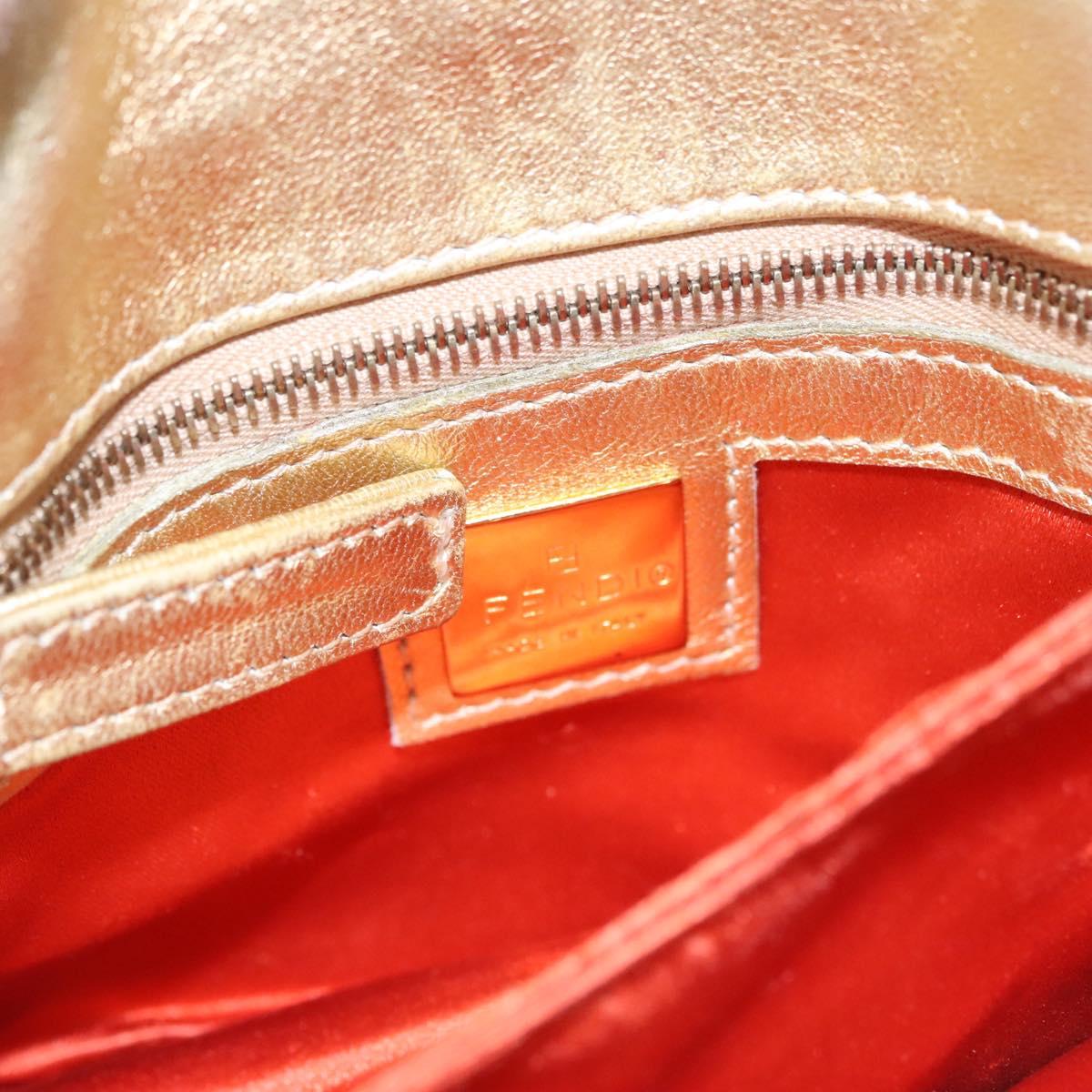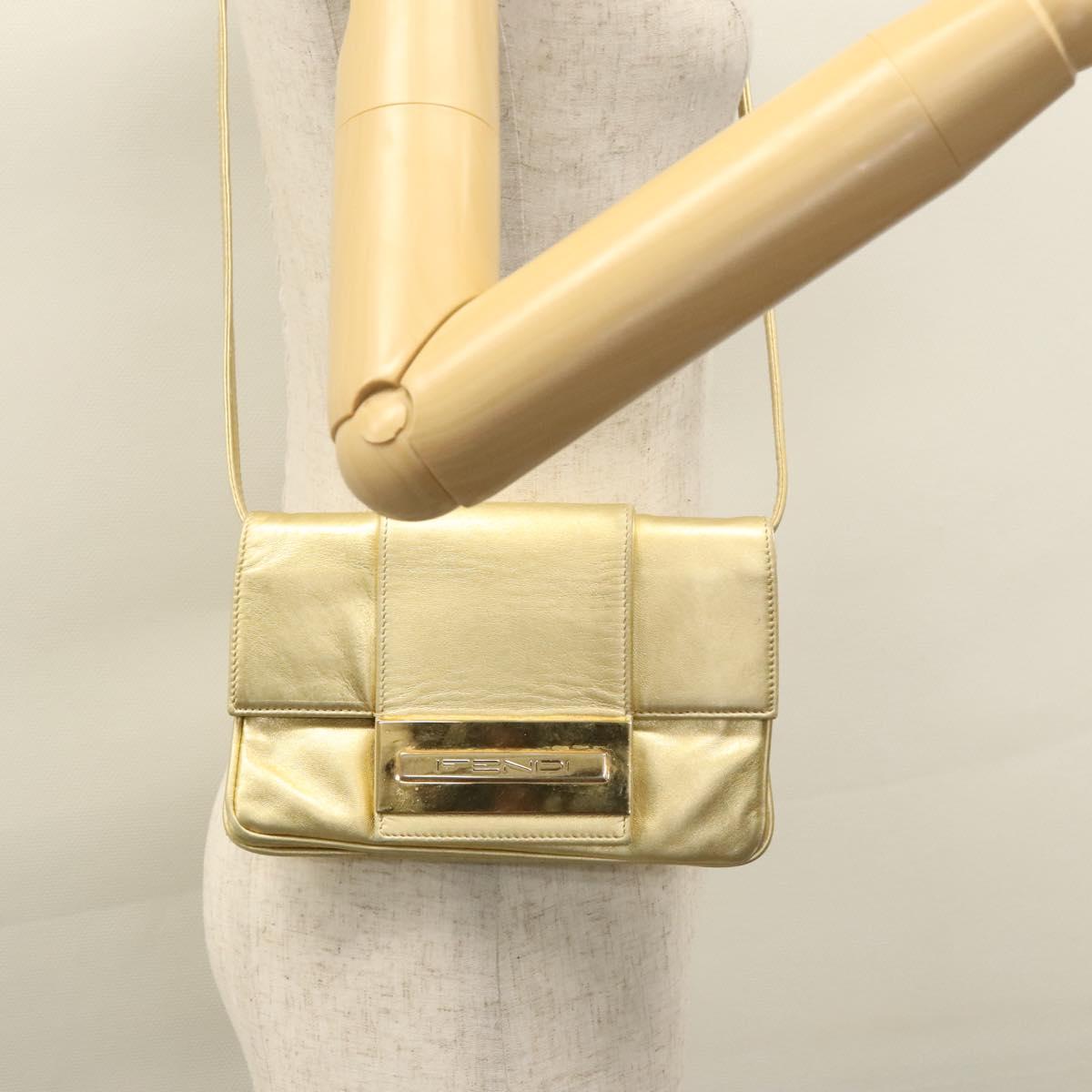 FENDI Shoulder Bag Leather Gold Auth 115157
