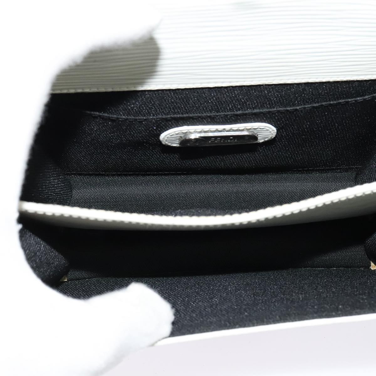FENDI Shoulder Bag Leather White Silver Auth BA5134