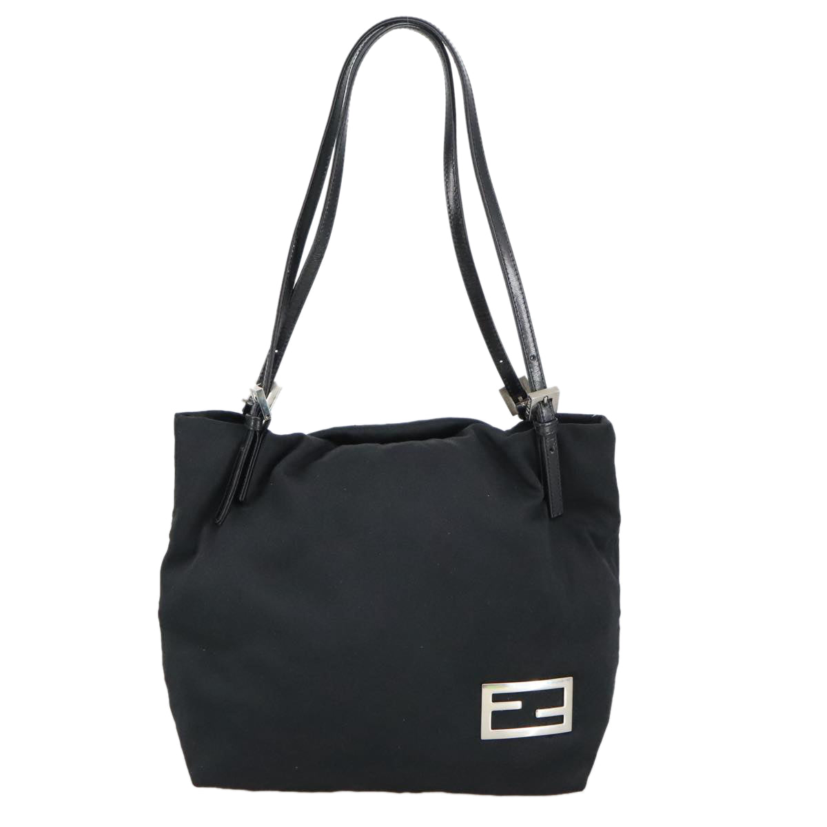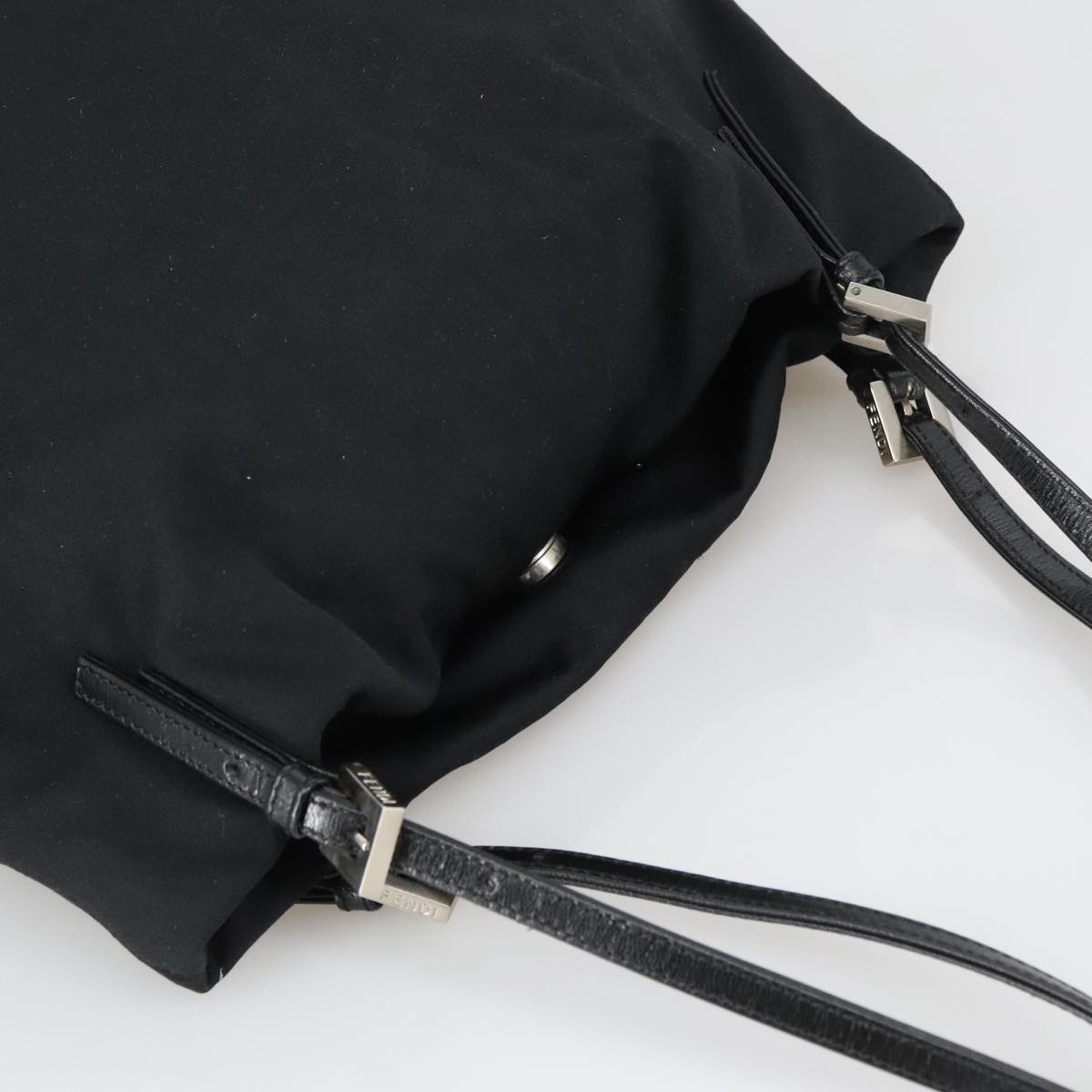 FENDI Shoulder Bag Nylon Black Silver Auth 103439