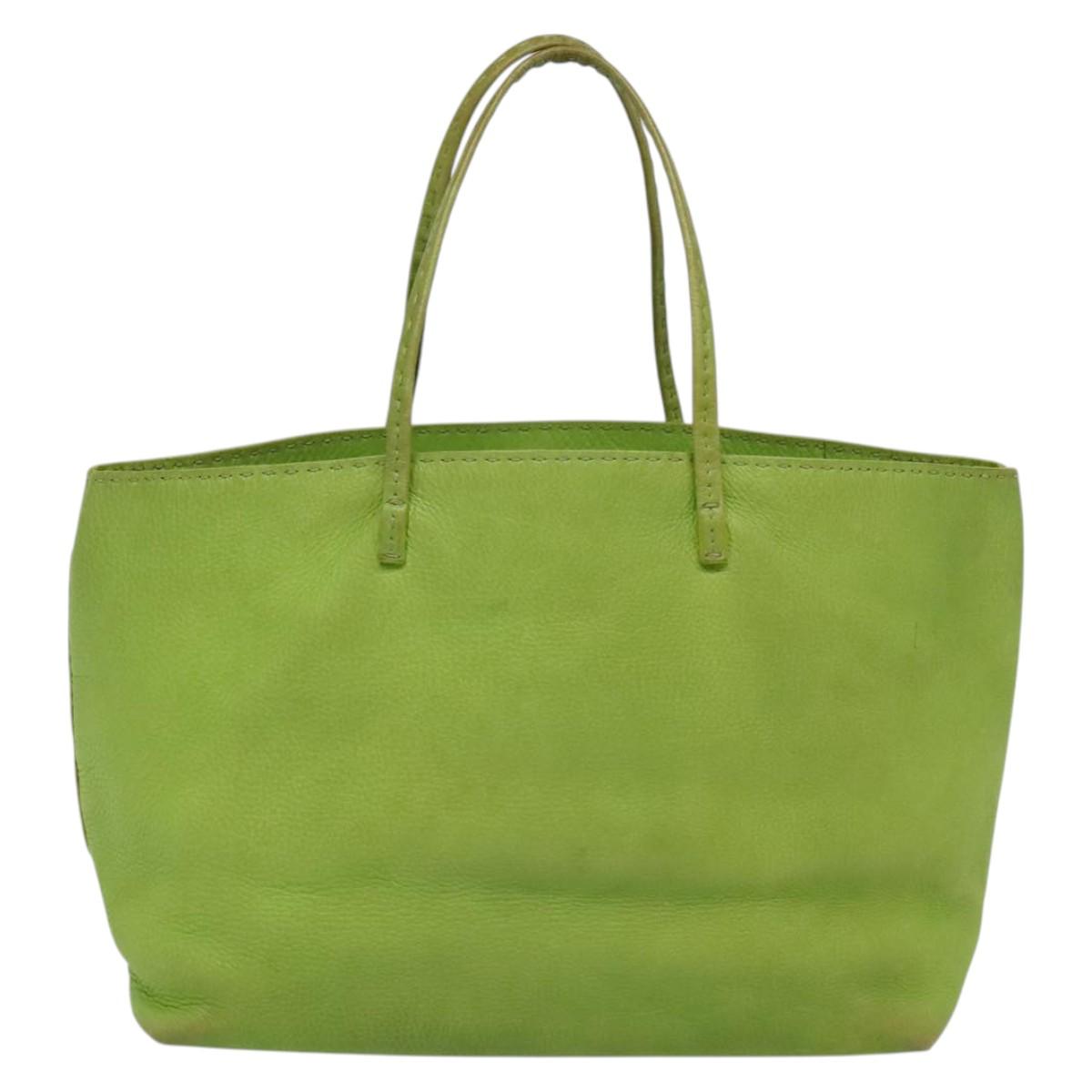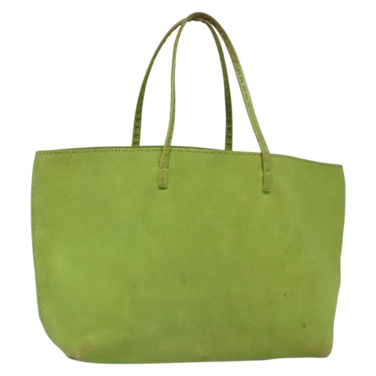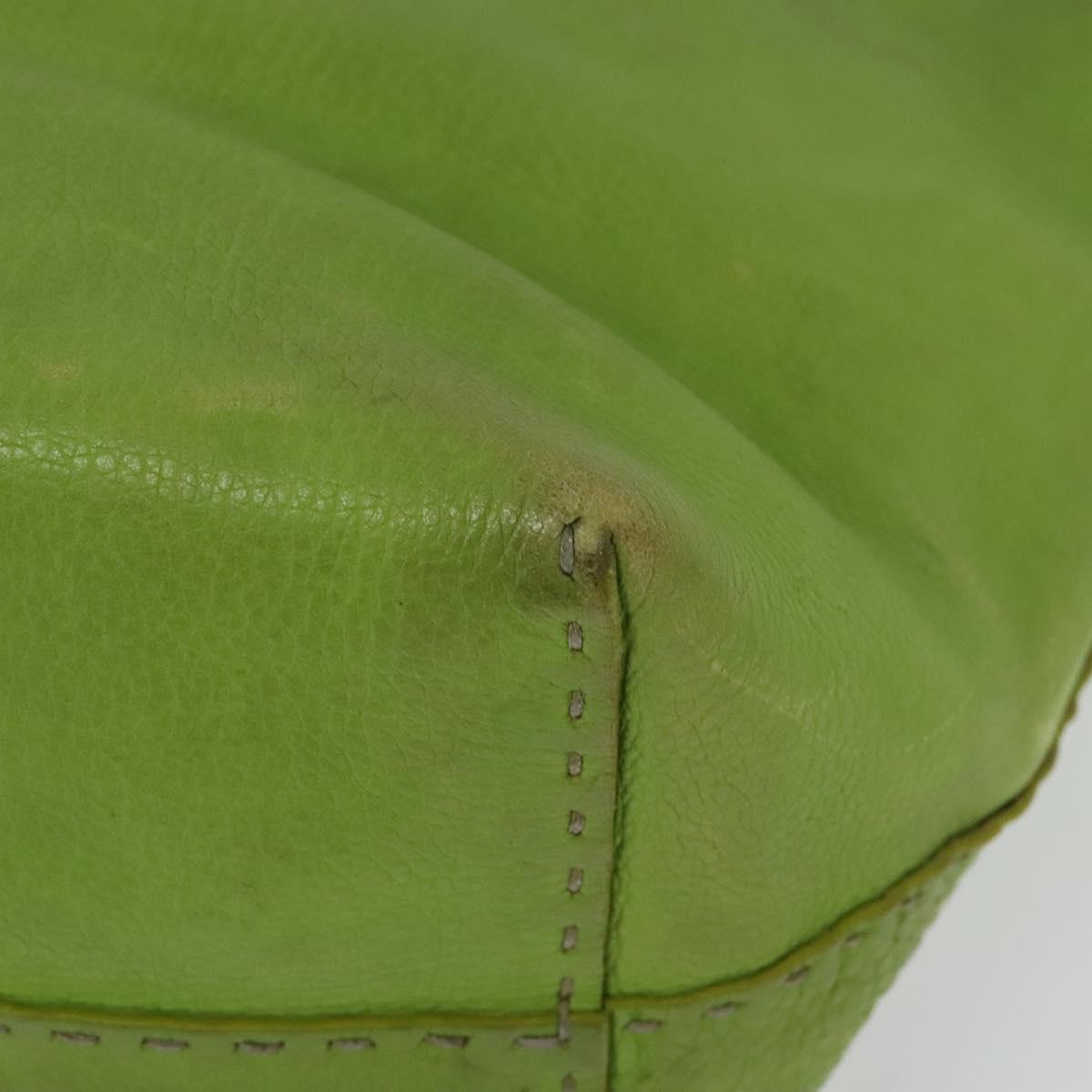 FENDI Tote Bag Leather Green Silver Auth 135199