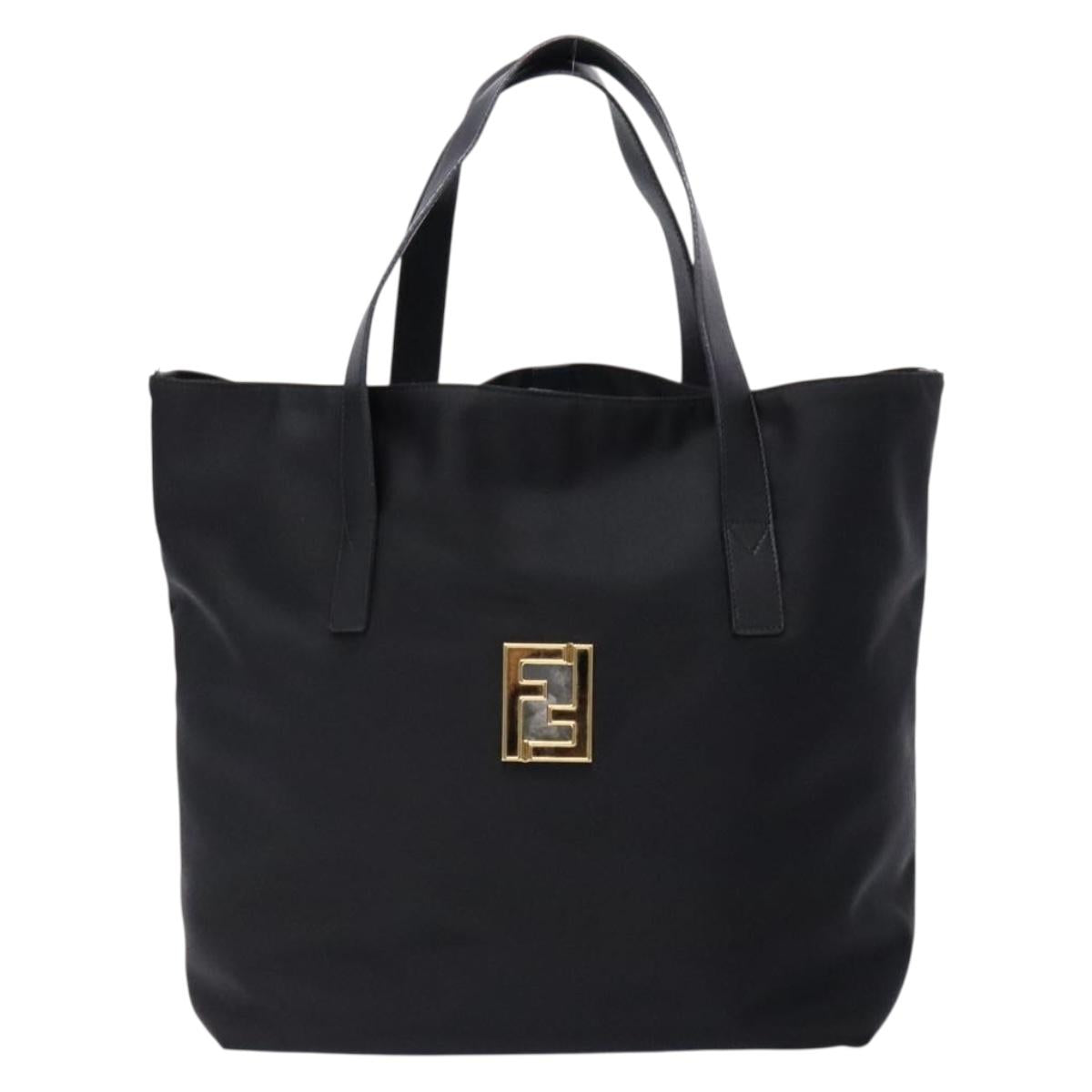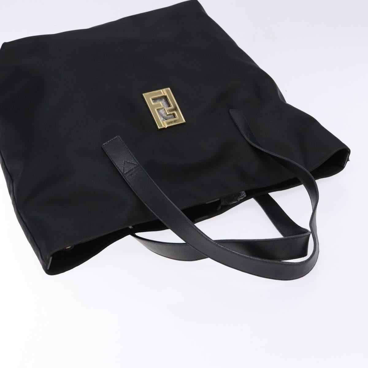 FENDI Tote Bag Nylon Black Gold Auth ep10599