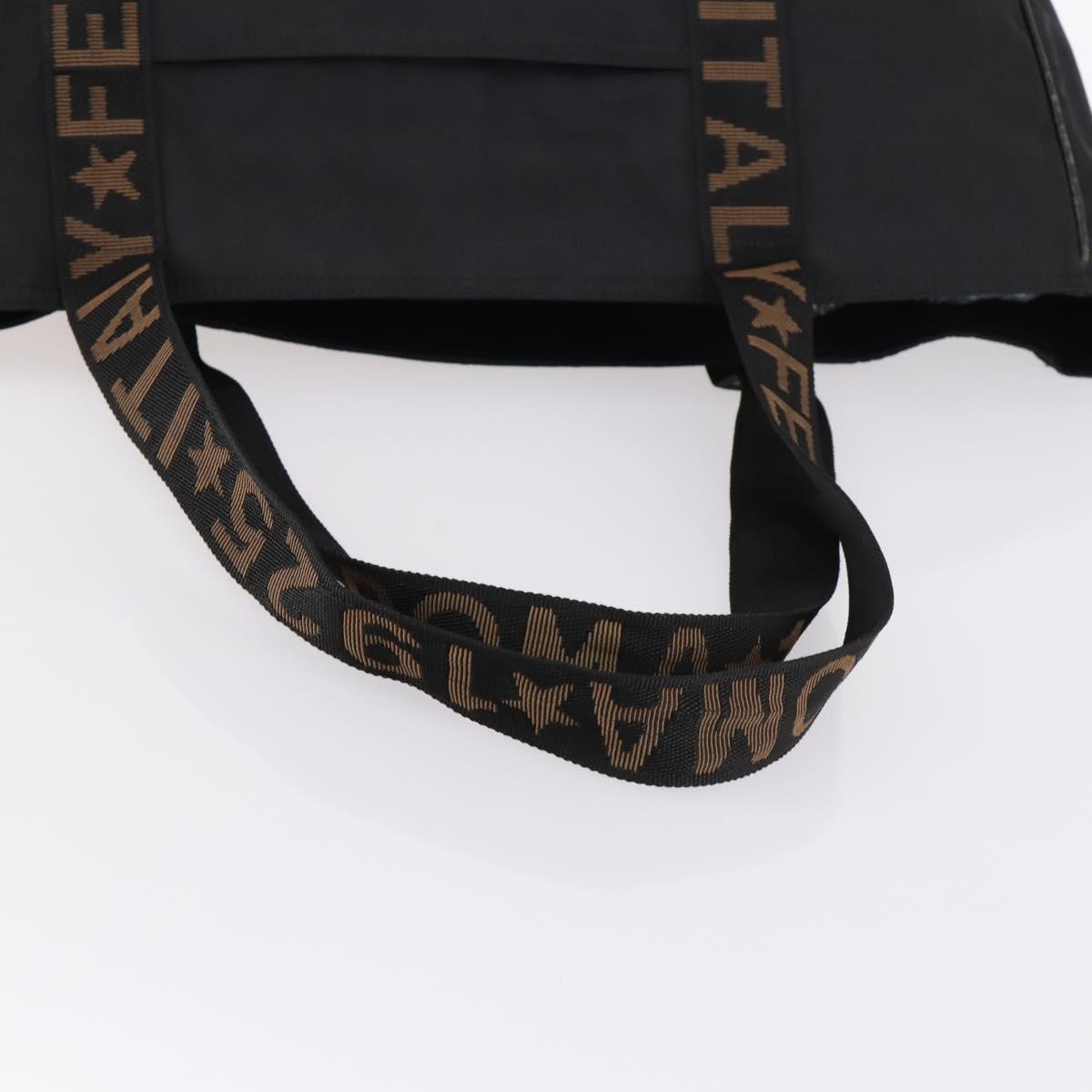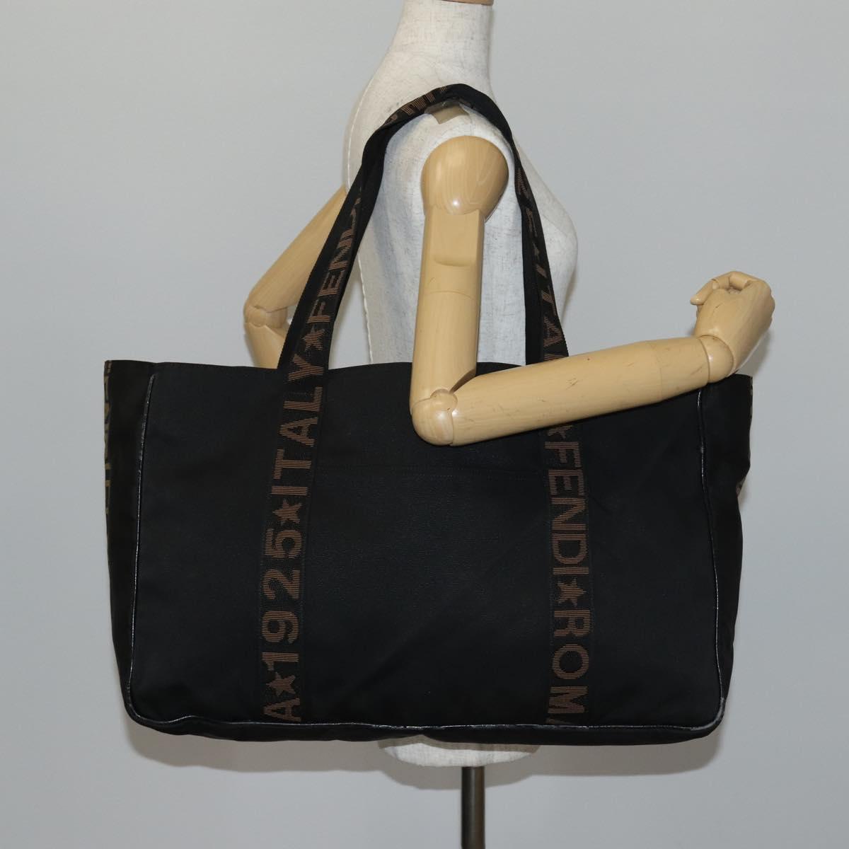 FENDI Tote Bag Nylon Black Silver Auth gh996