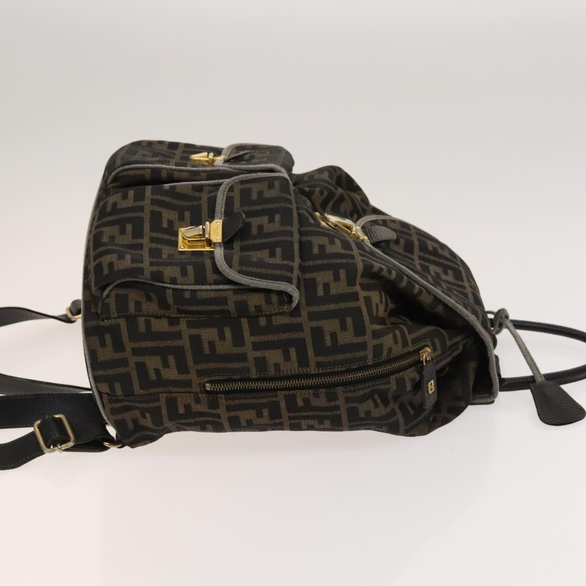 FENDI Zucca Canvas Backpack Black Brown gold Auth 123804