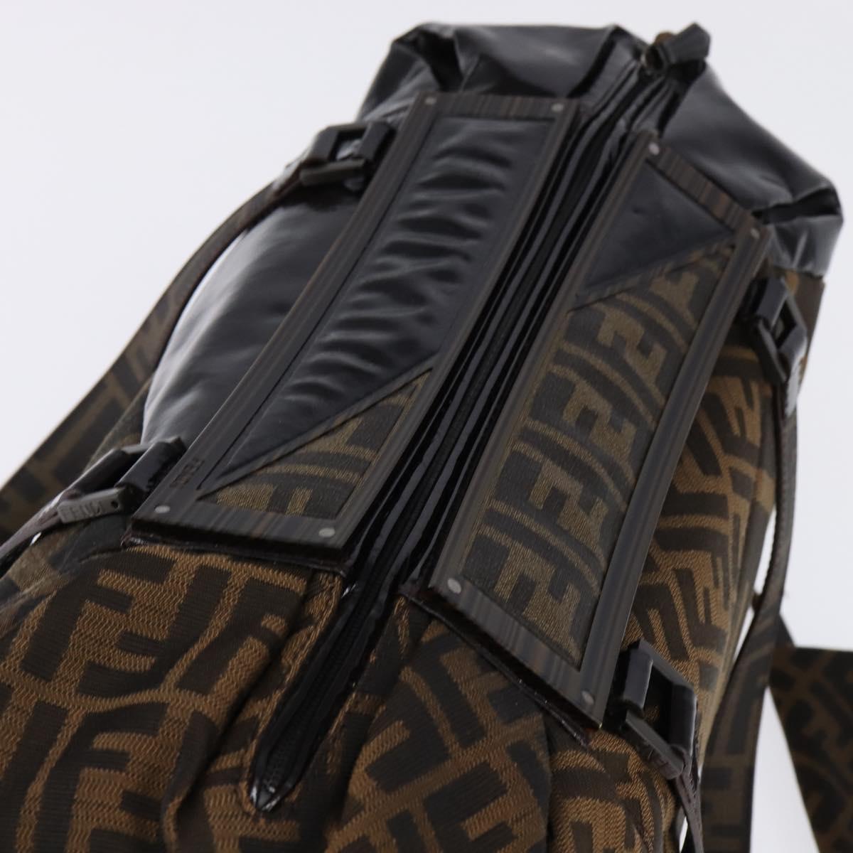 FENDI Zucca Canvas Boston Bag Black Brown Auth 142295