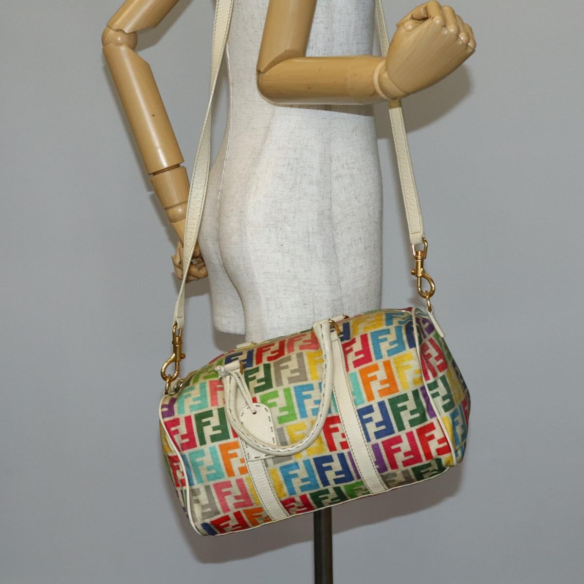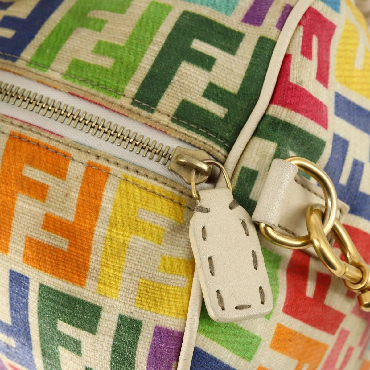 FENDI Zucca Canvas Boston Bag PVC 2way Multicolor Gold Auth 141028