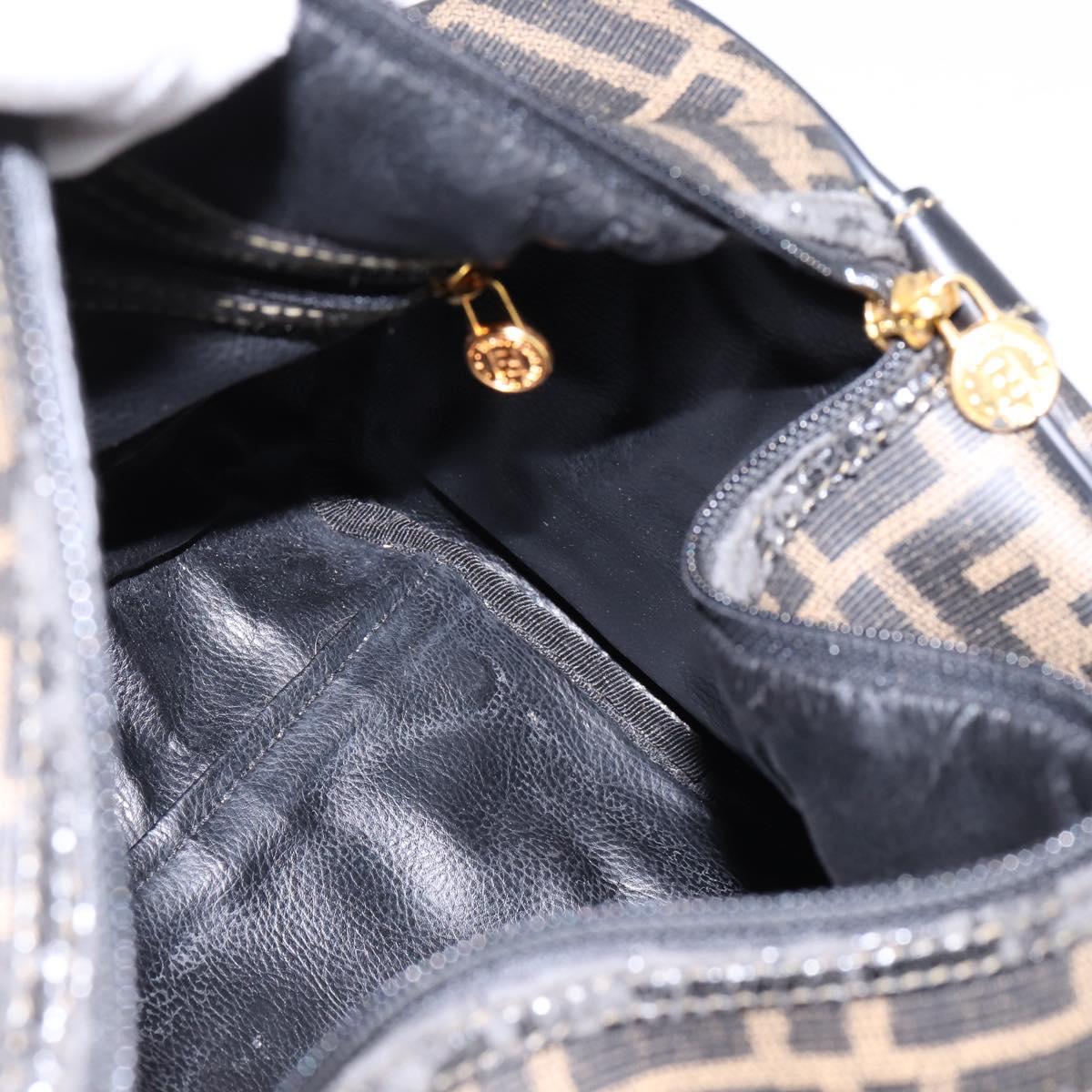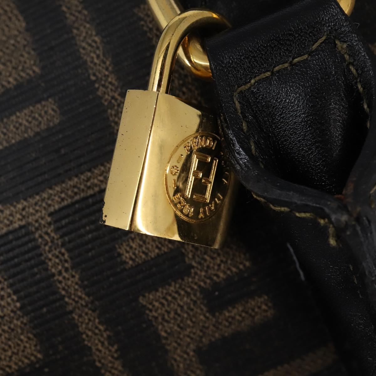 FENDI Zucca Canvas Boston Bag PVC Black Brown Auth 143499