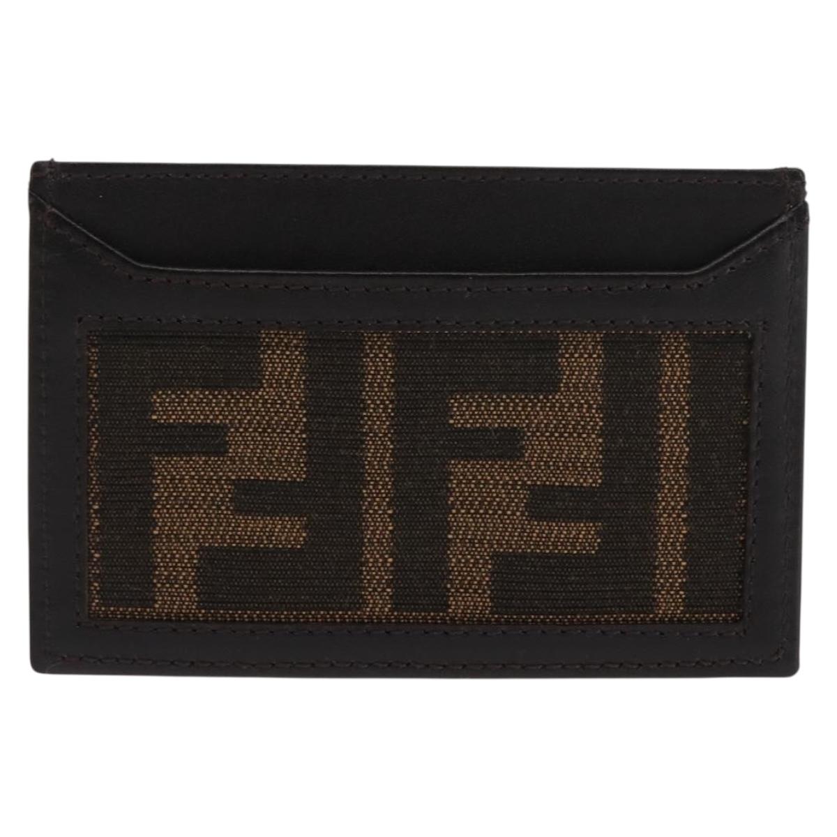 FENDI Zucca Canvas Card Case Black Brown Auth am9297