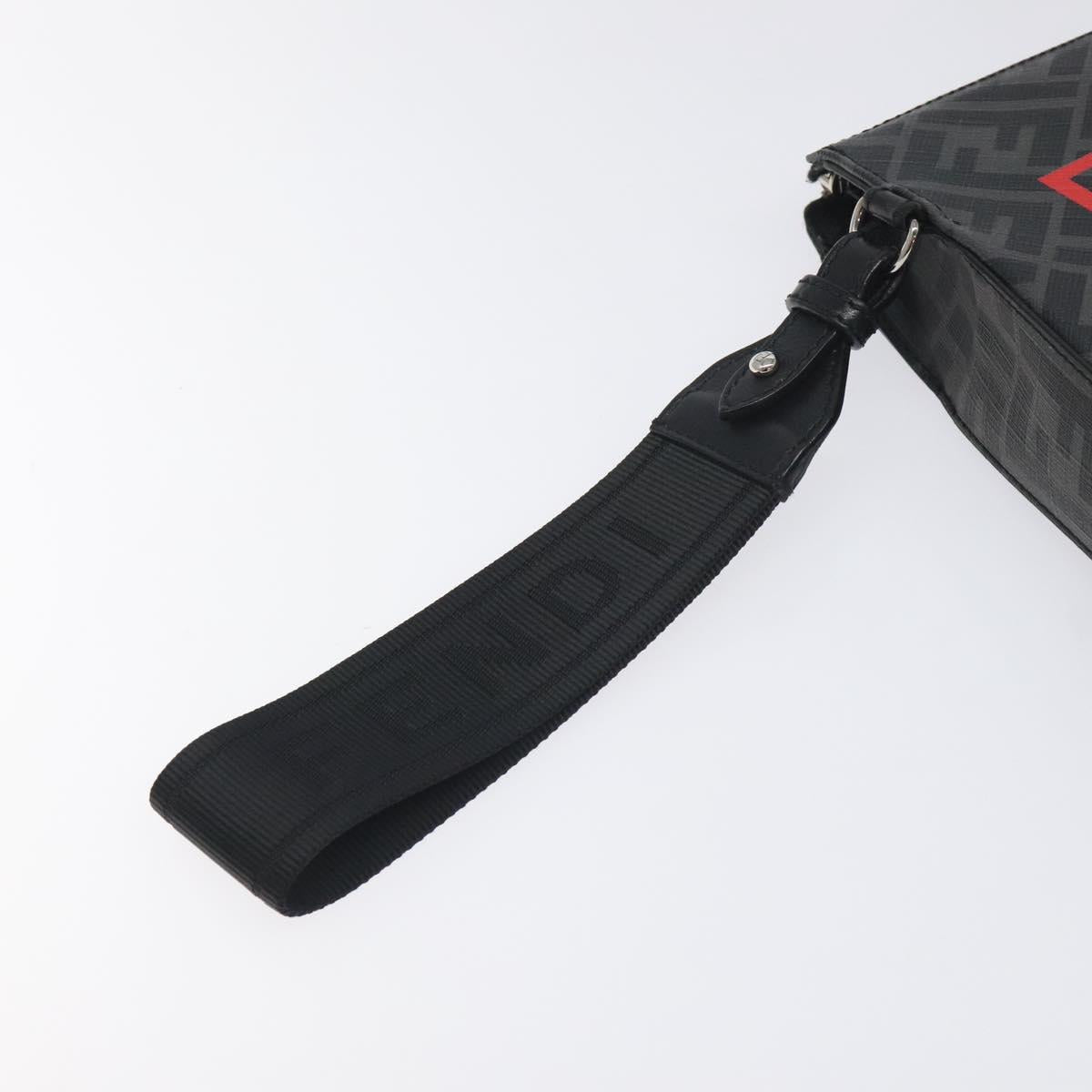 FENDI Zucca Canvas Clutch Bag PVC Black Silver Auth BA3687M