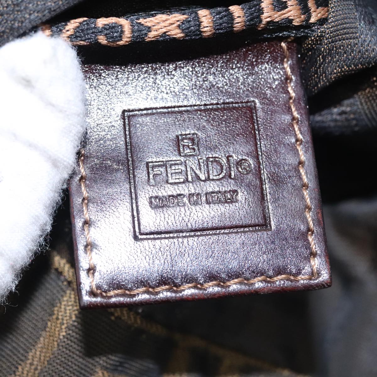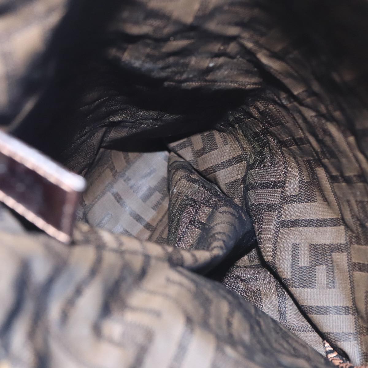 FENDI Zucca Canvas Drawstring Bag Brown Black Auth 101941