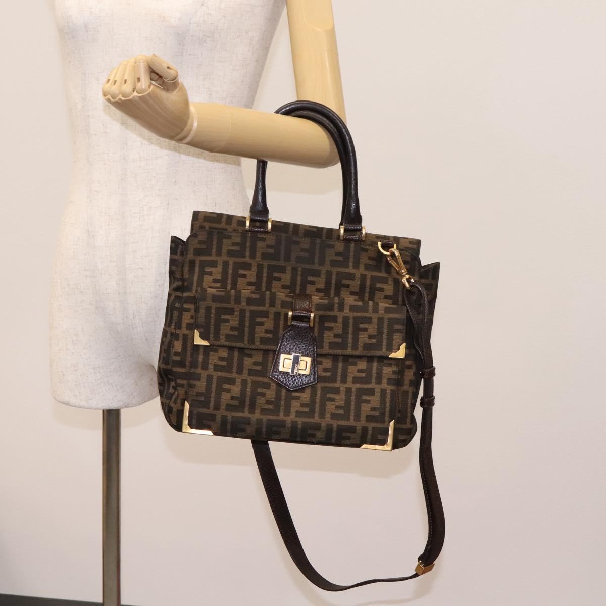 FENDI Zucca Canvas Hand Bag 2way Black Brown Auth 120380