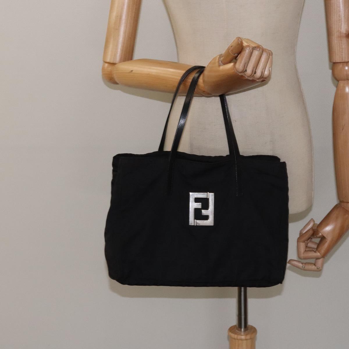 FENDI Zucca Canvas Hand Bag Black Auth bs26161
