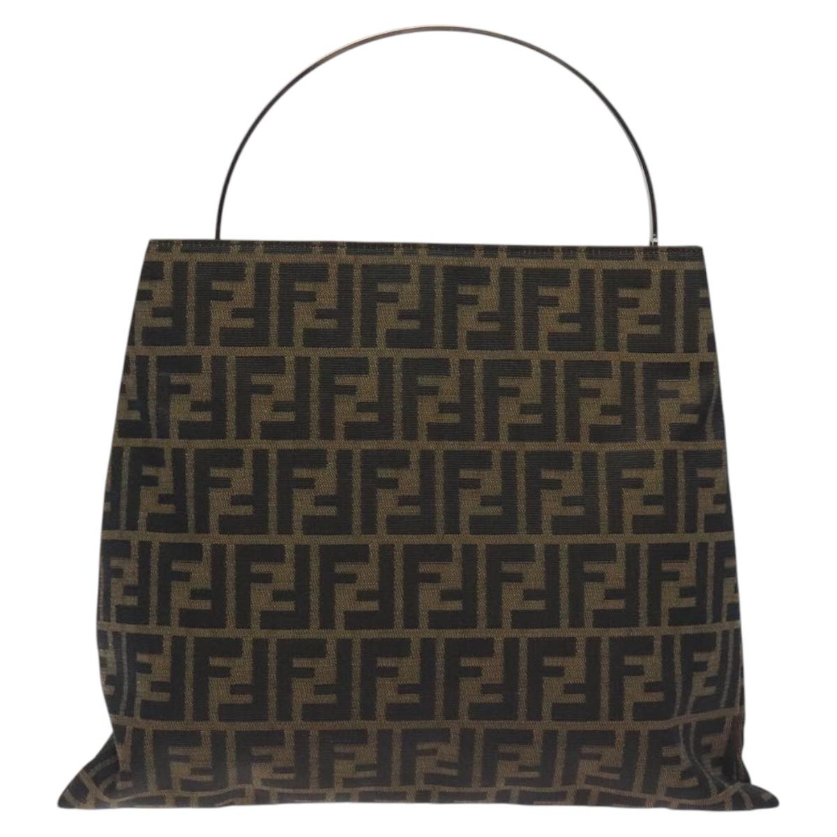 FENDI Zucca Canvas Hand Bag Black Brown Auth 129930