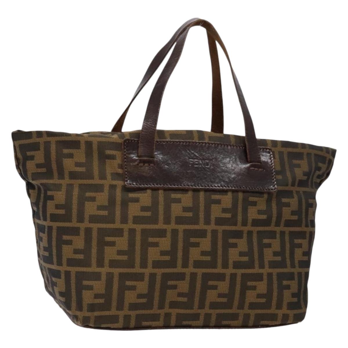 FENDI Zucca Canvas Hand Bag Black Brown Auth 137643